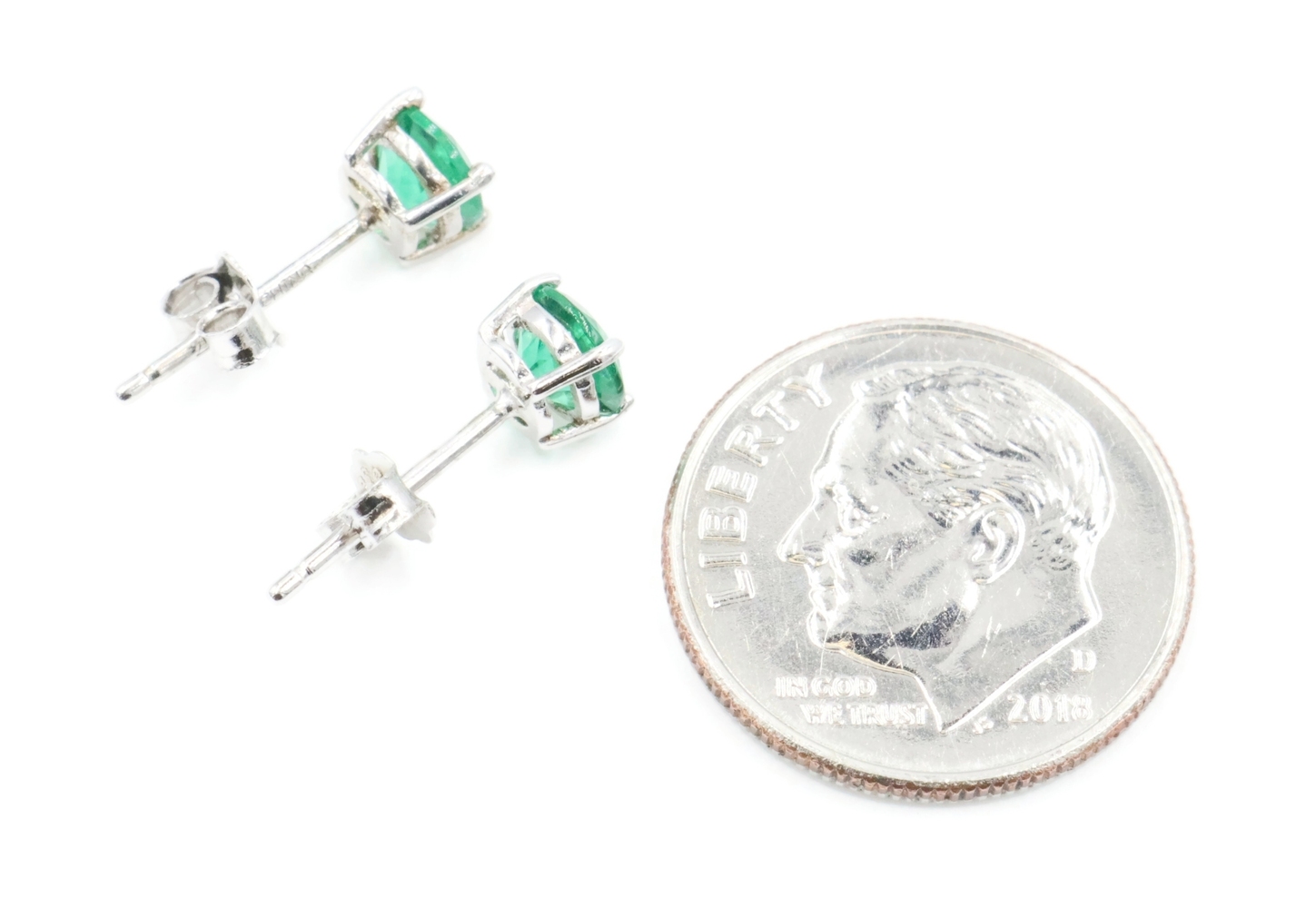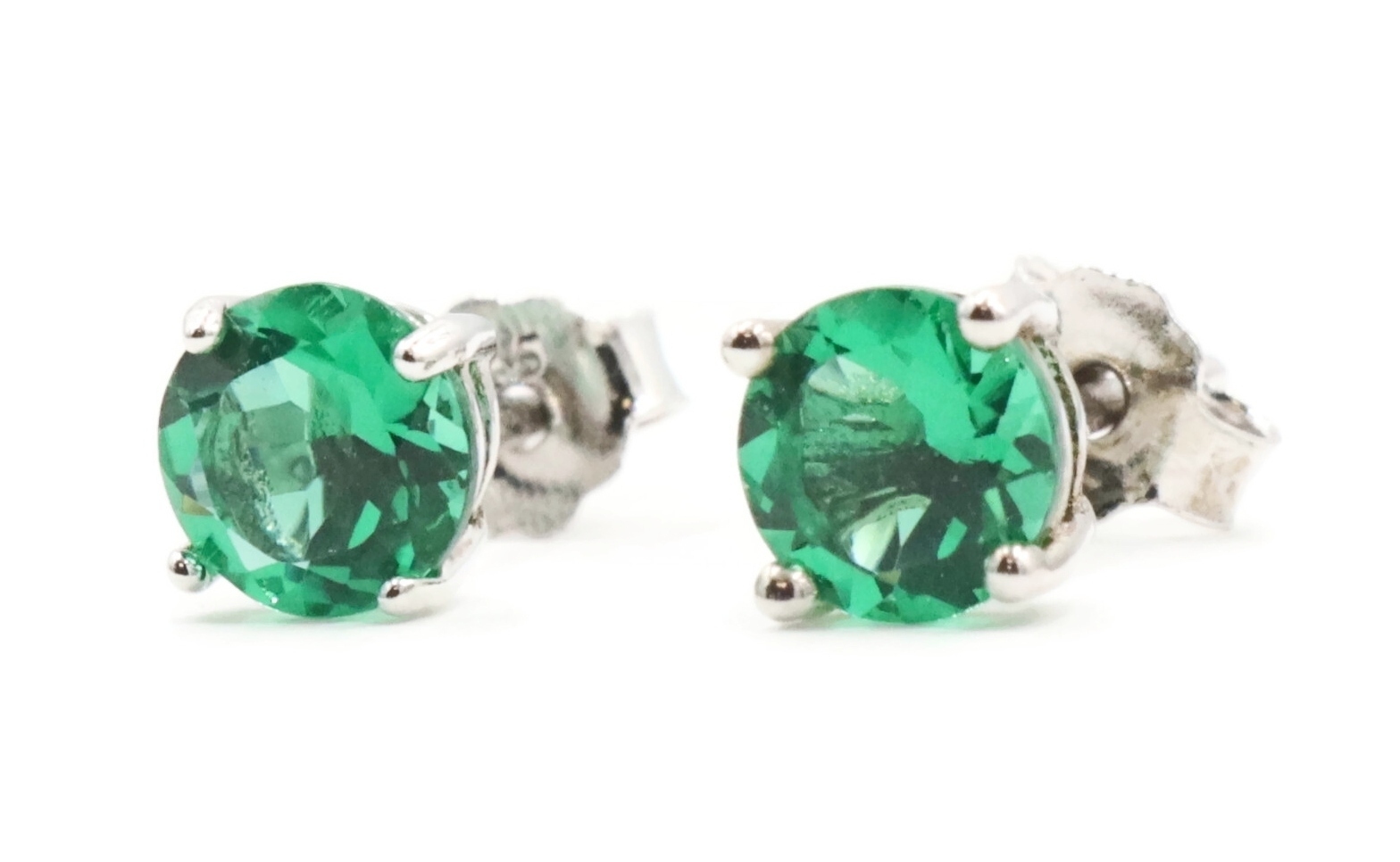 Sterling Silver (925) Round Cut Dark Green CZ 5mm Solitaire Stud Earrings | USA Pawn
