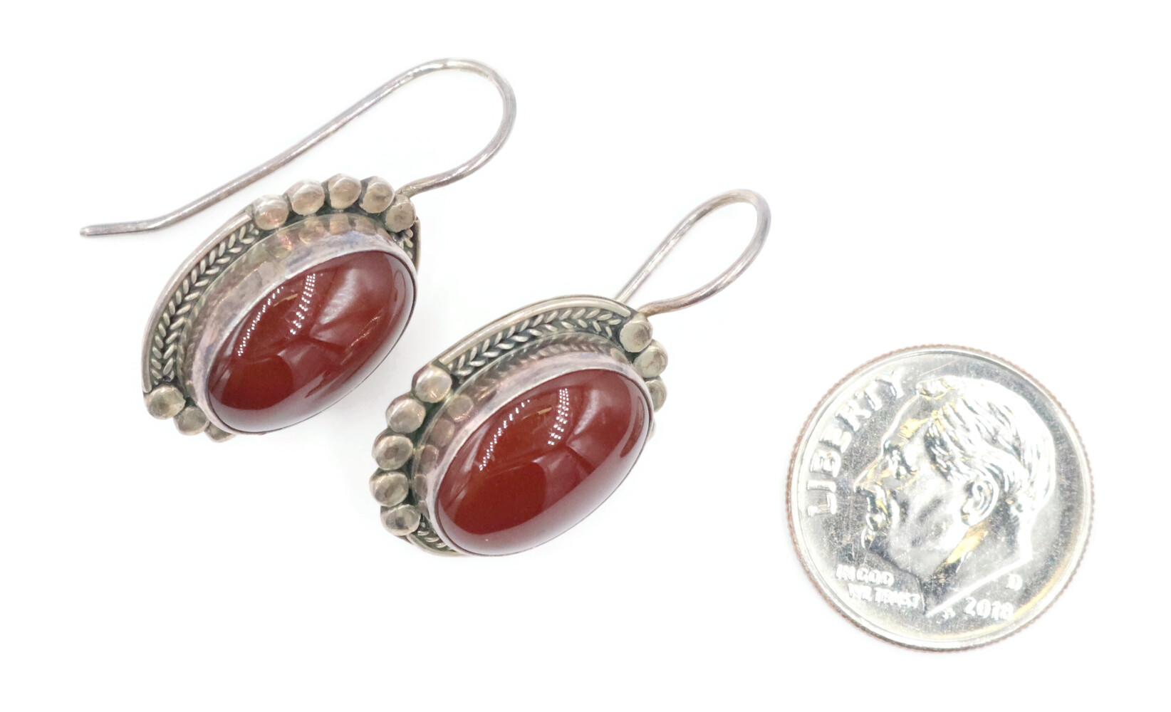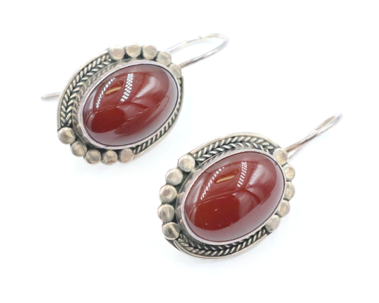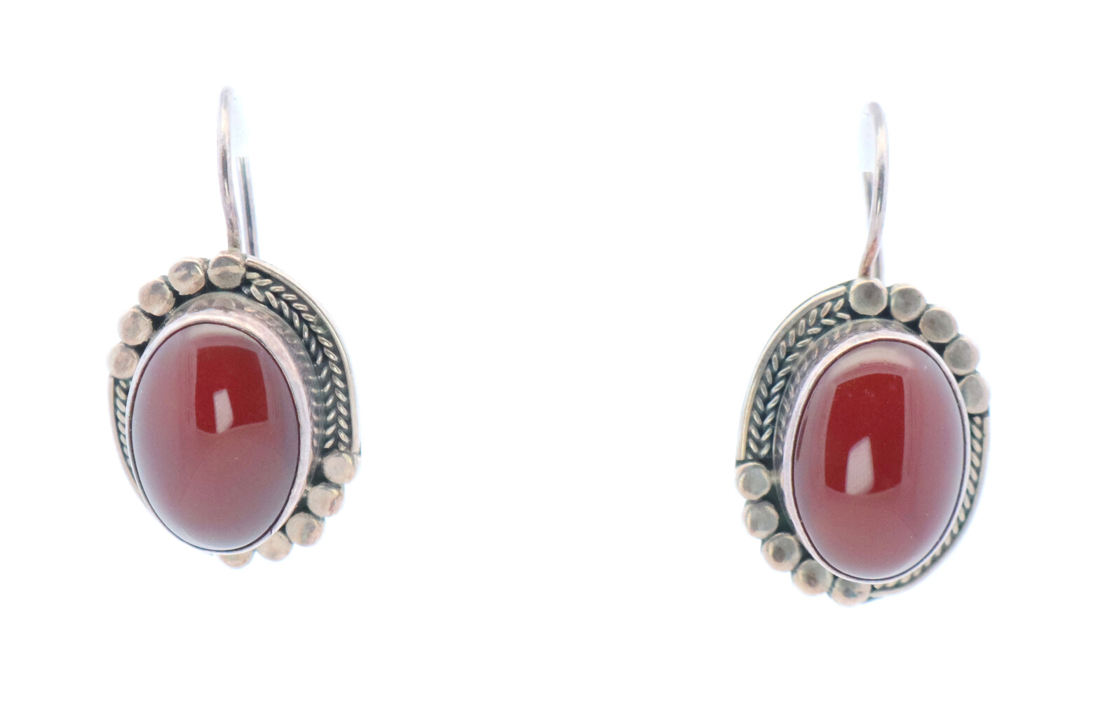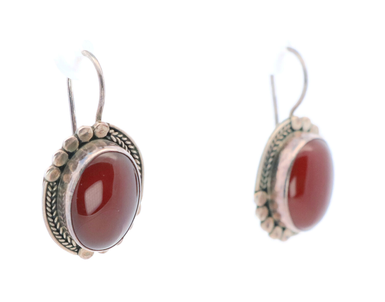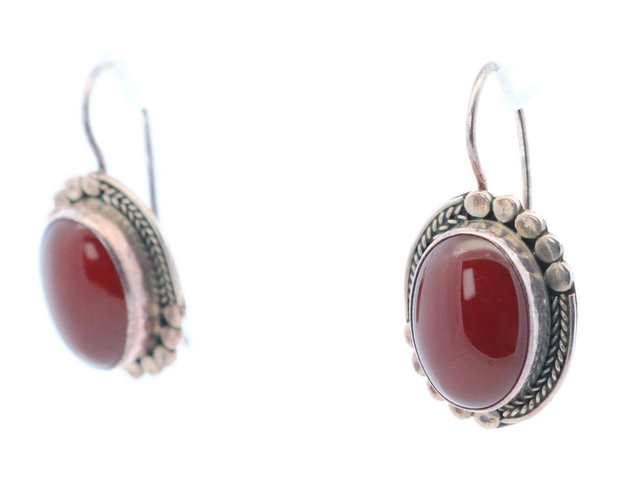 Sterling Silver Bali Style Oval Cabochon Red Carnelian Estate Dangle Earrings | USA Pawn