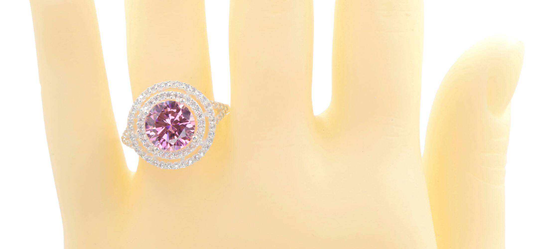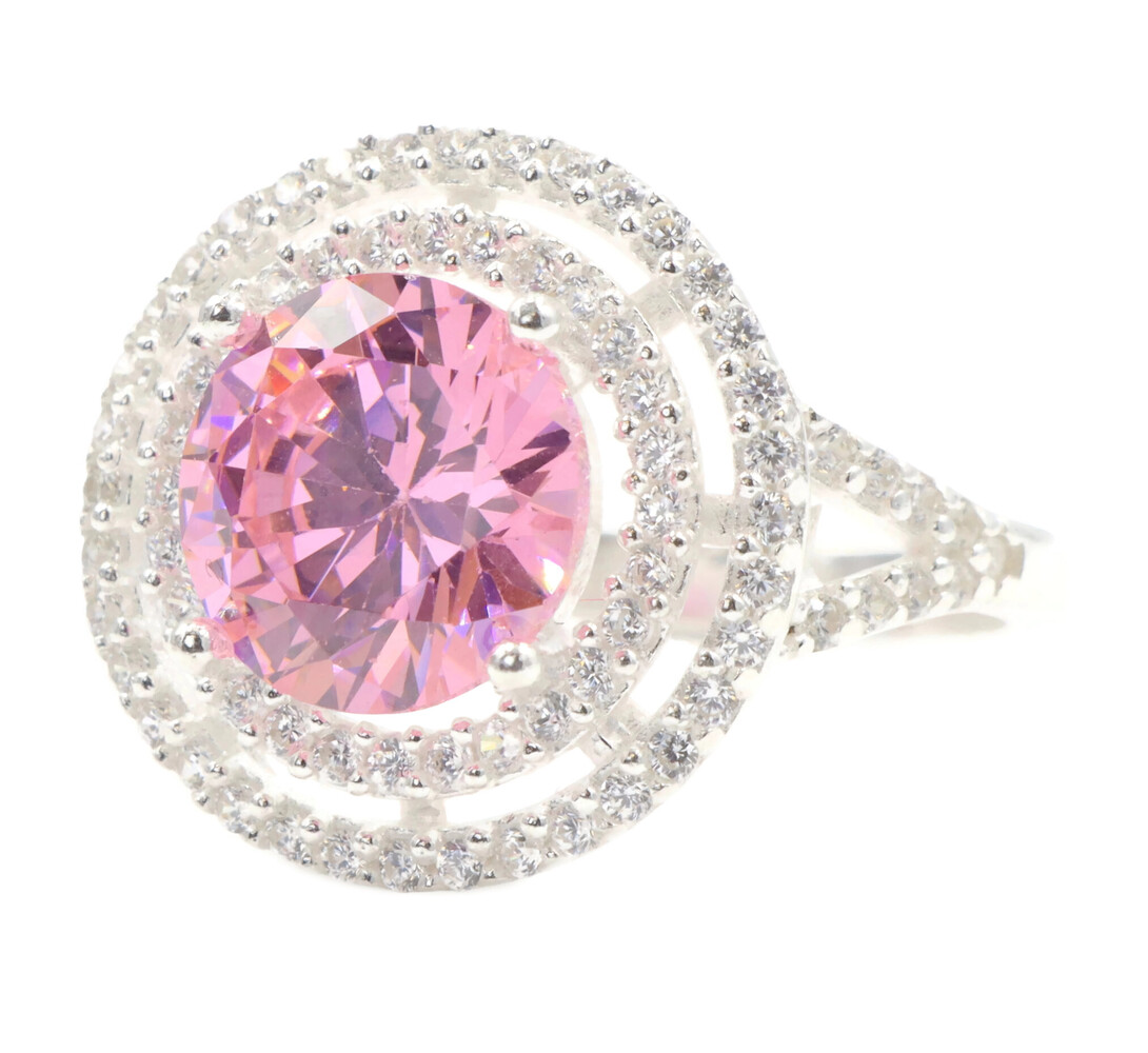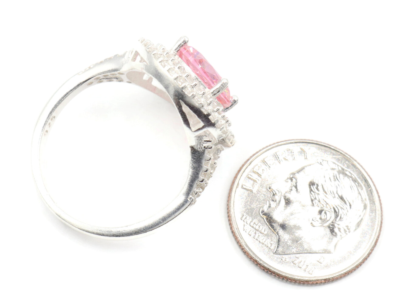 Sterling Silver Double Halo Iced Pink and White Cubic Zirconia Statement Ring | USA Pawn