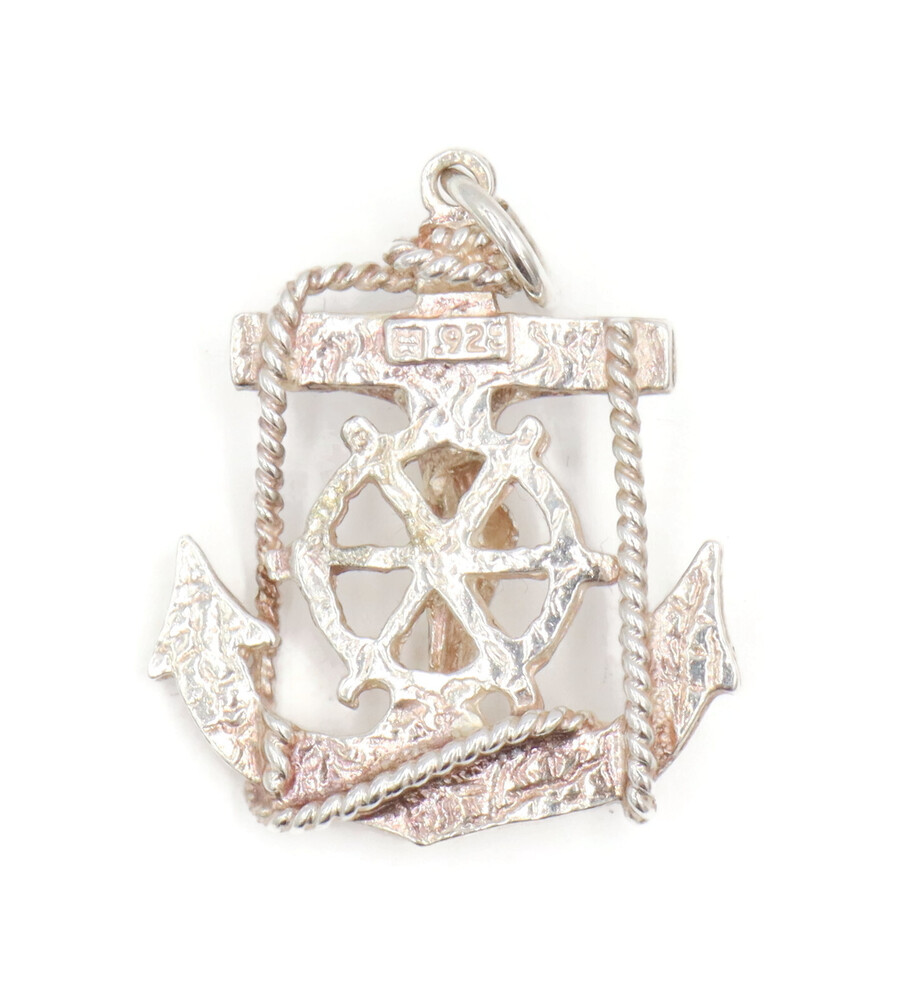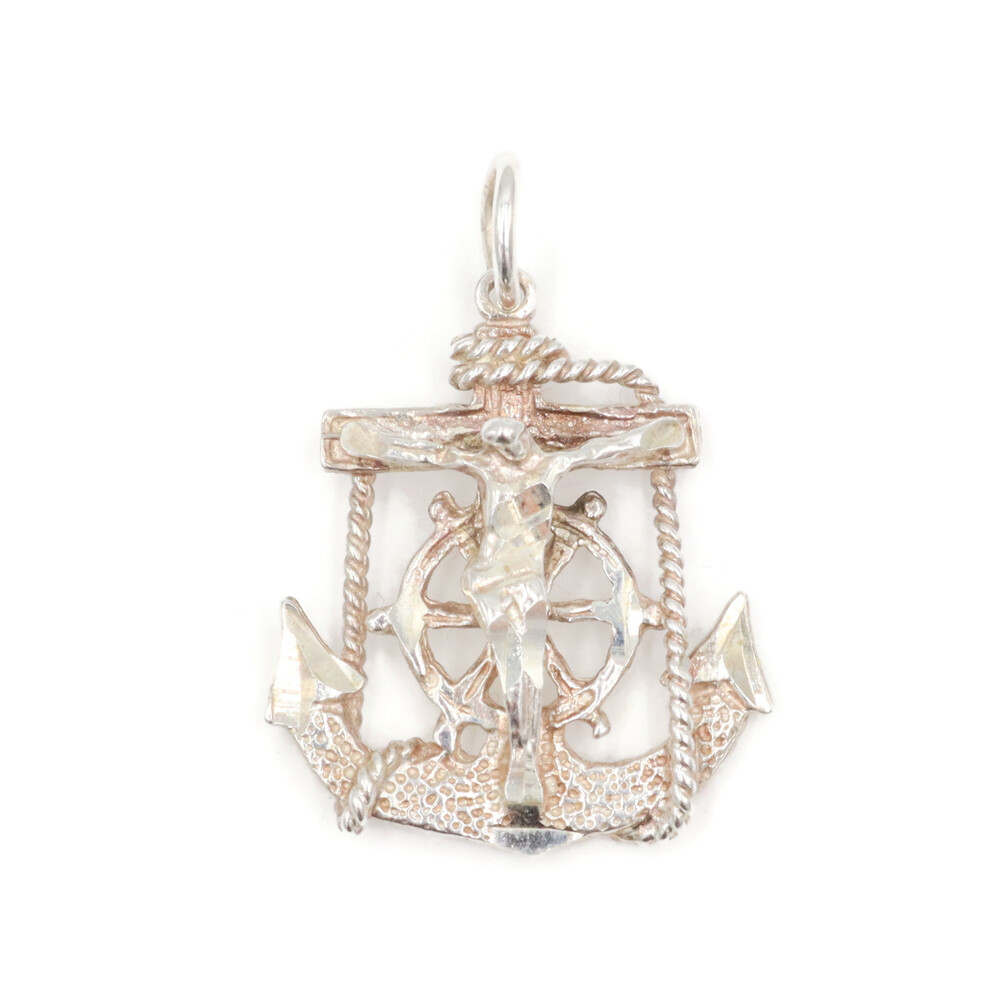 Sterling Silver Estate 925 1.1" Detailed Diamond Cut Anchor and Crucifix Pendant | USA Pawn