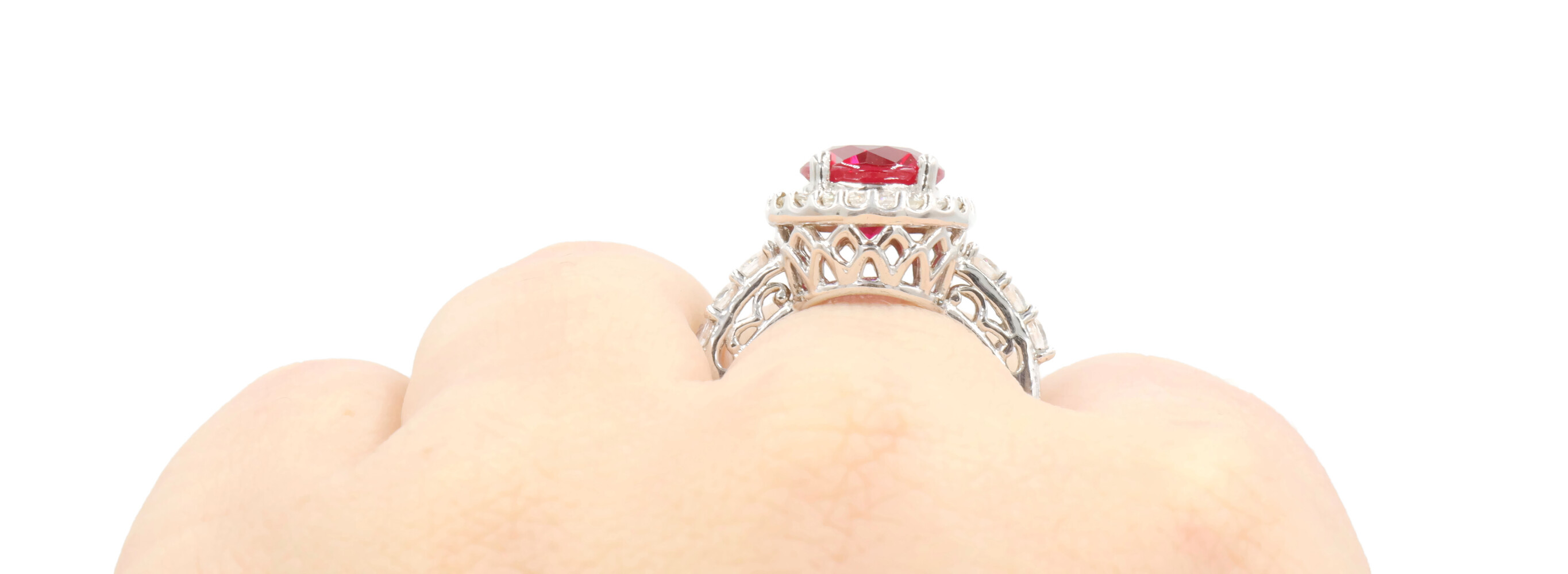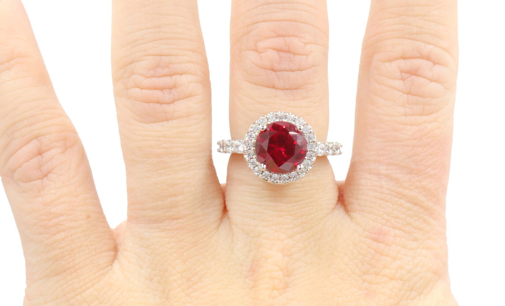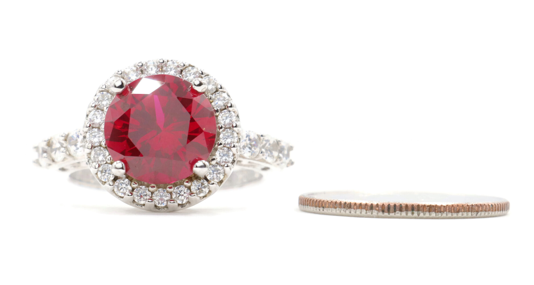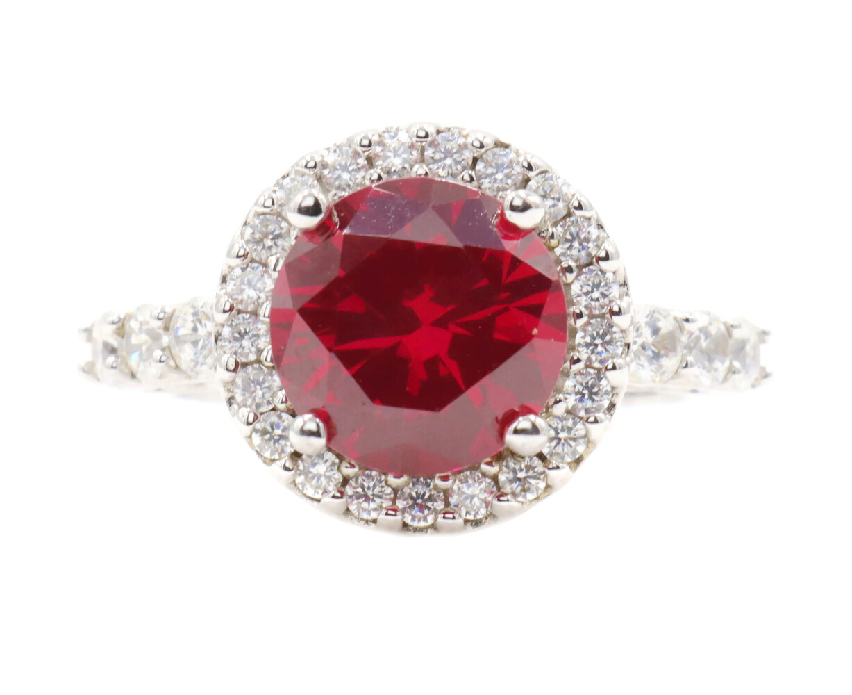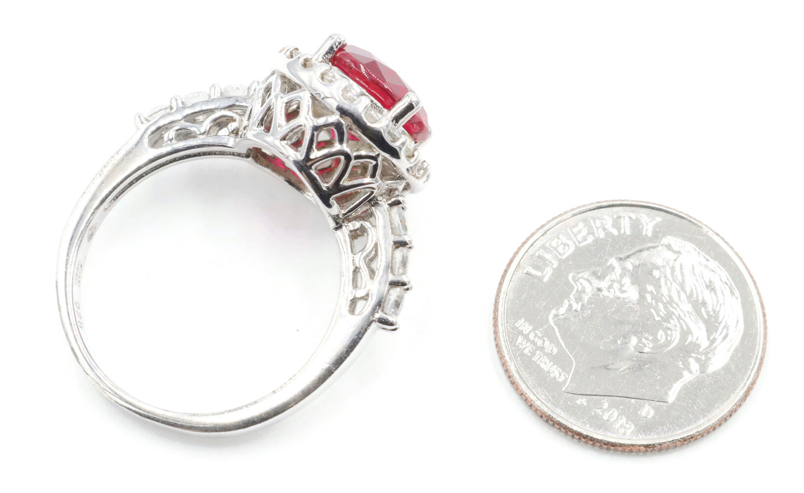 Sterling Silver Halo Iced Large Red and White Cubic Zirconia 925 Statement Ring | USA Pawn