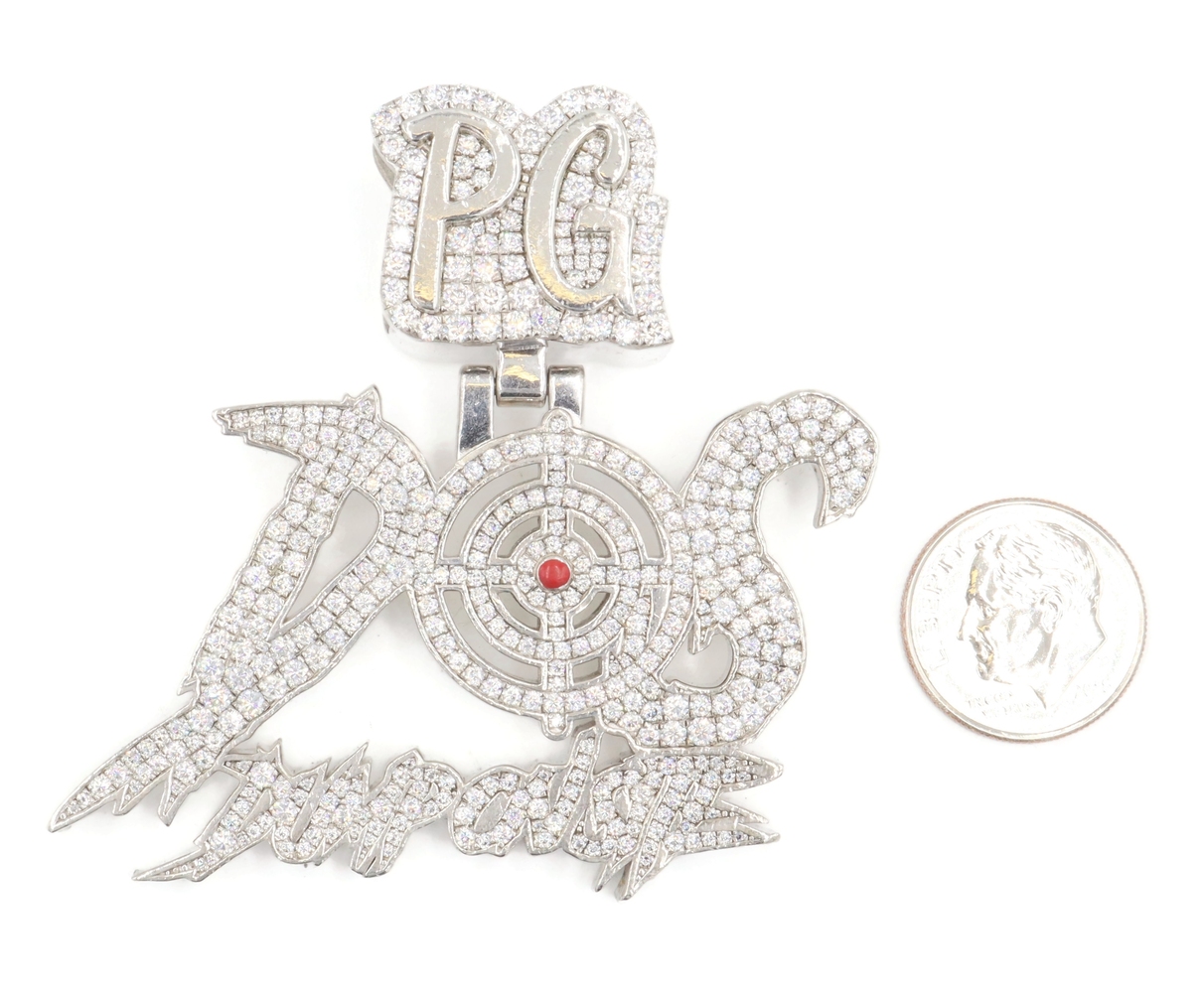 Sterling Silver Large Iced Cubic Zirconia CZ Dos Targe Graphic Pendant by Aporro | USA Pawn