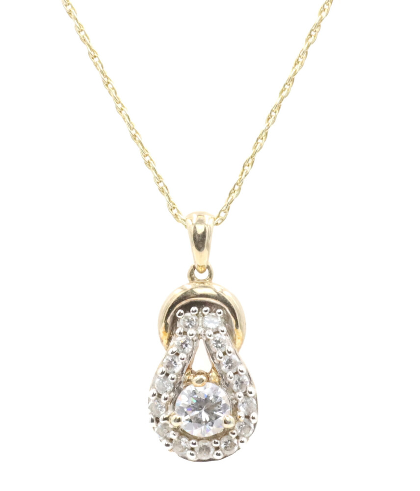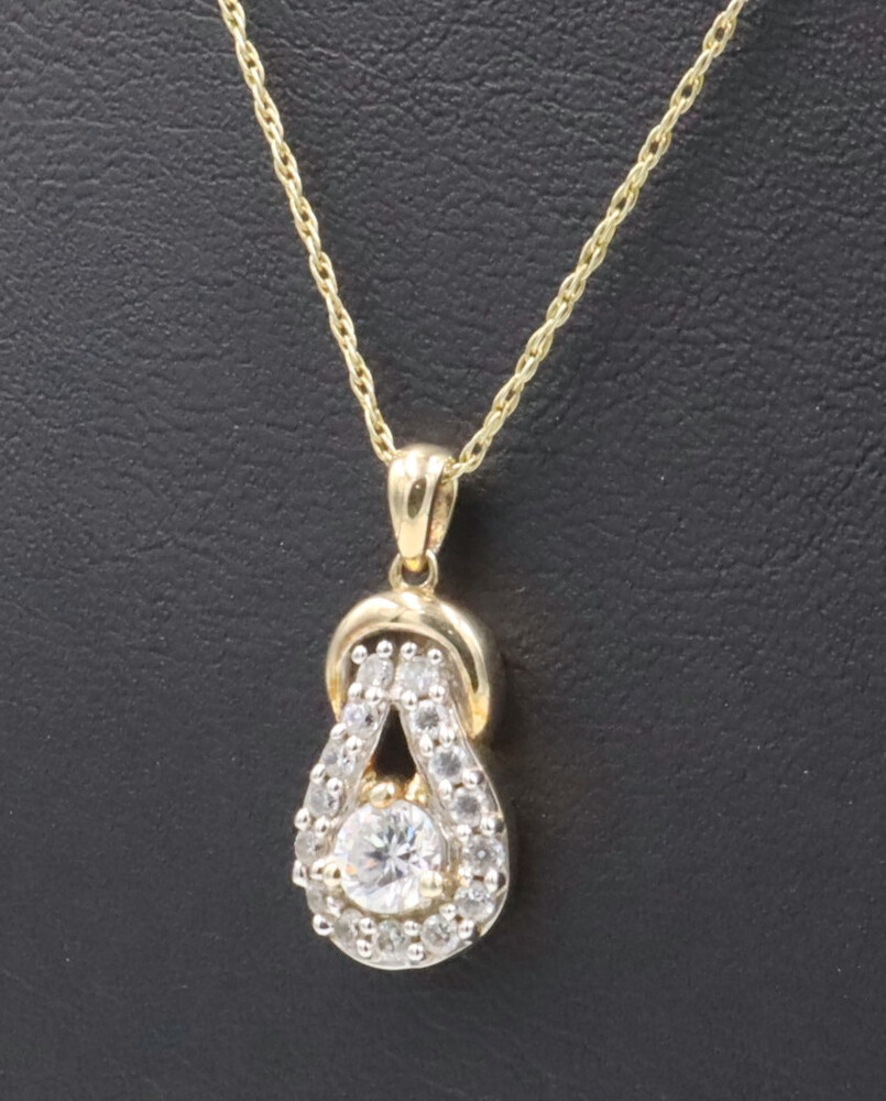 Sterling Silver Round CZ Buckle Style Pendant 925 Yellow Gold Tone 20" Necklace | USA Pawn