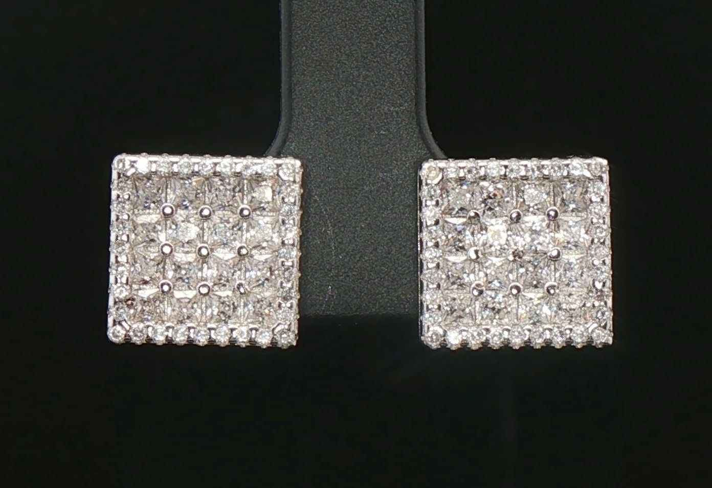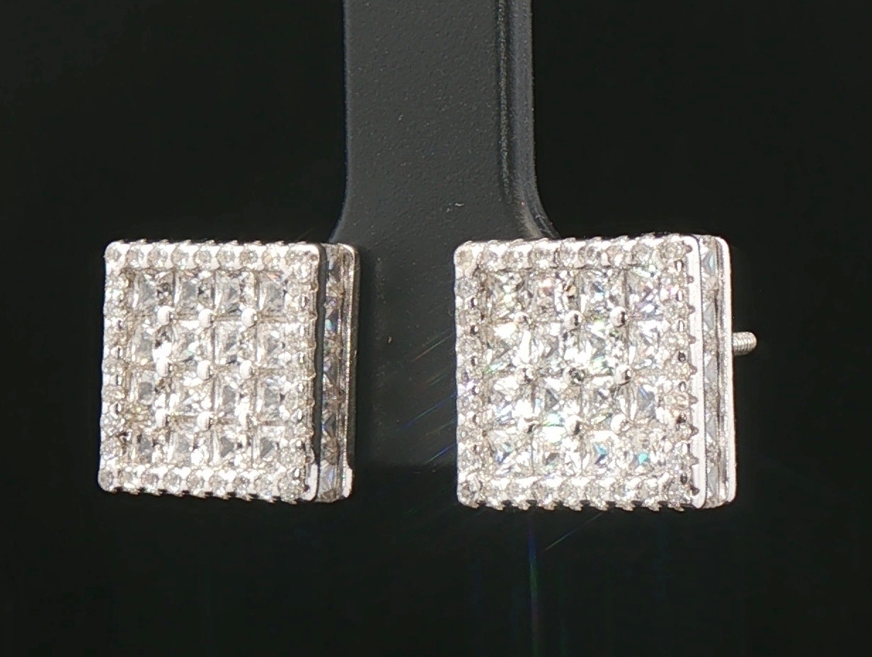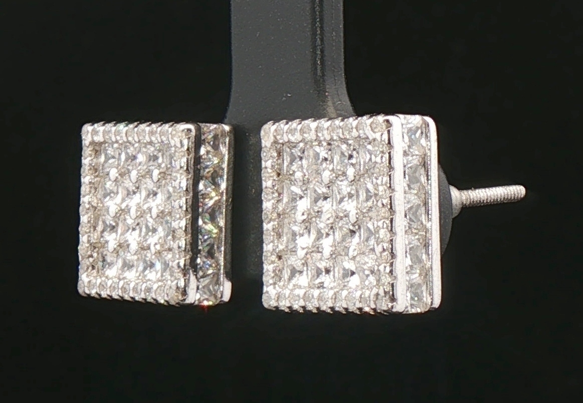 Sterling Silver Round & Princess Cut Cubic Zirconia 10.4mm Square Stud Earrings | USA Pawn