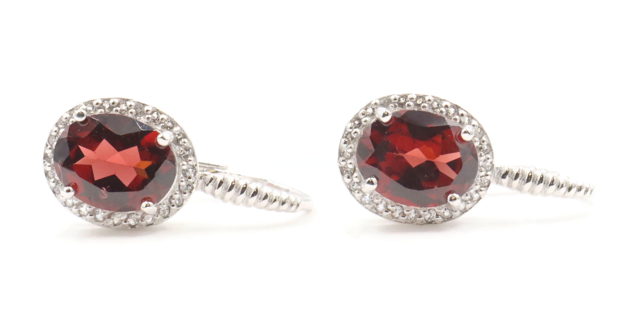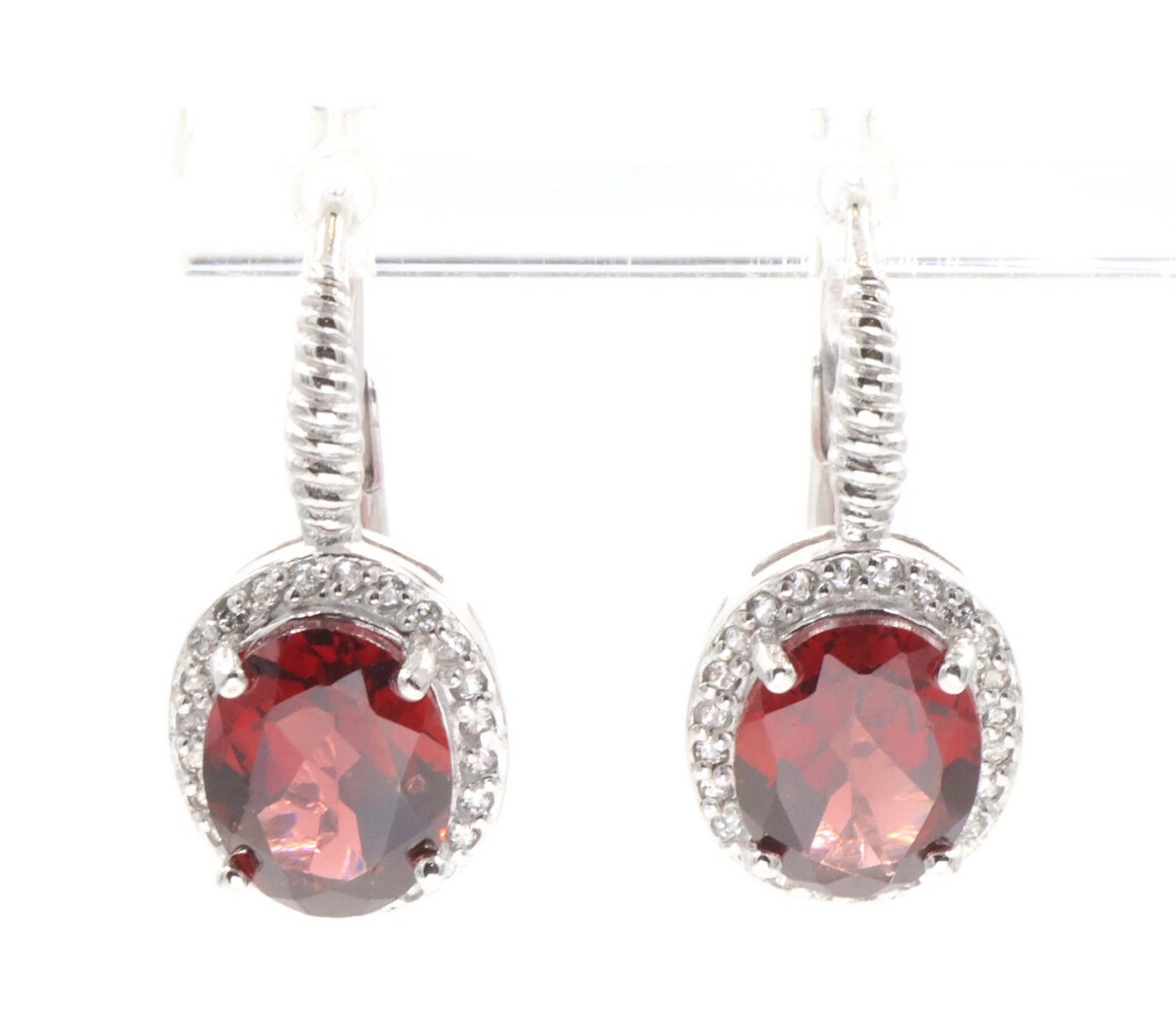 Sterling Silver Simulated Oval Cut Garnet and Round CZ Women's Dangle Earrings | USA Pawn