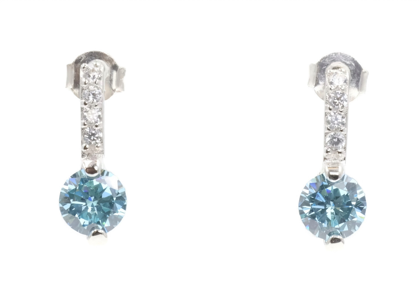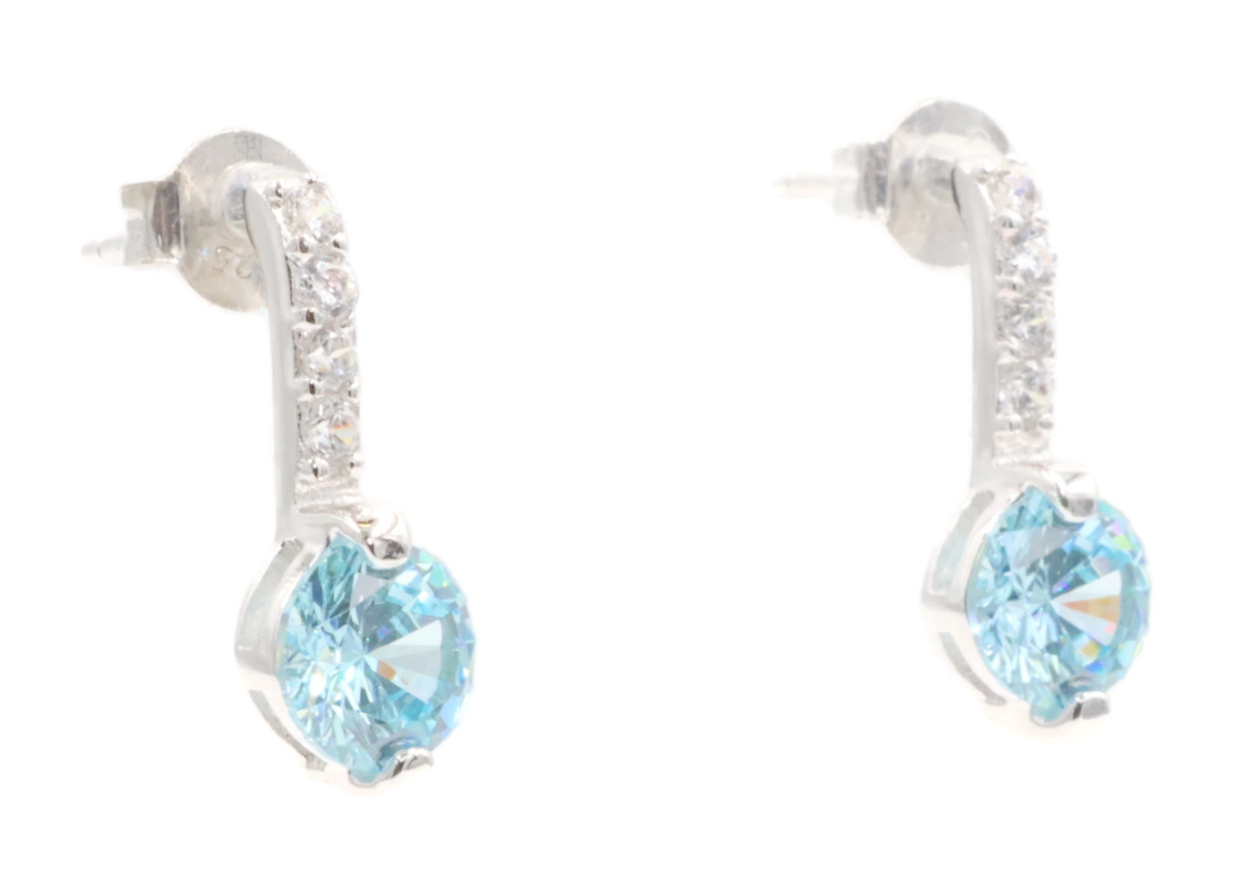 Sterling Silver Thin Bar with Round Cut Light Blue CZ 16.4mm Stud Earrings | USA Pawn