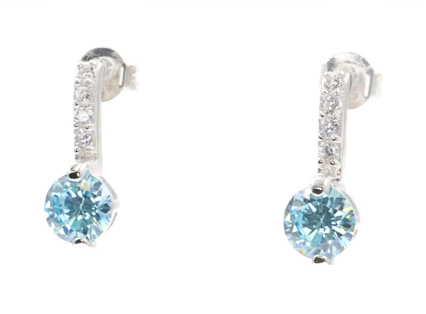 Sterling Silver Thin Bar with Round Cut Light Blue CZ 16.4mm Stud Earrings