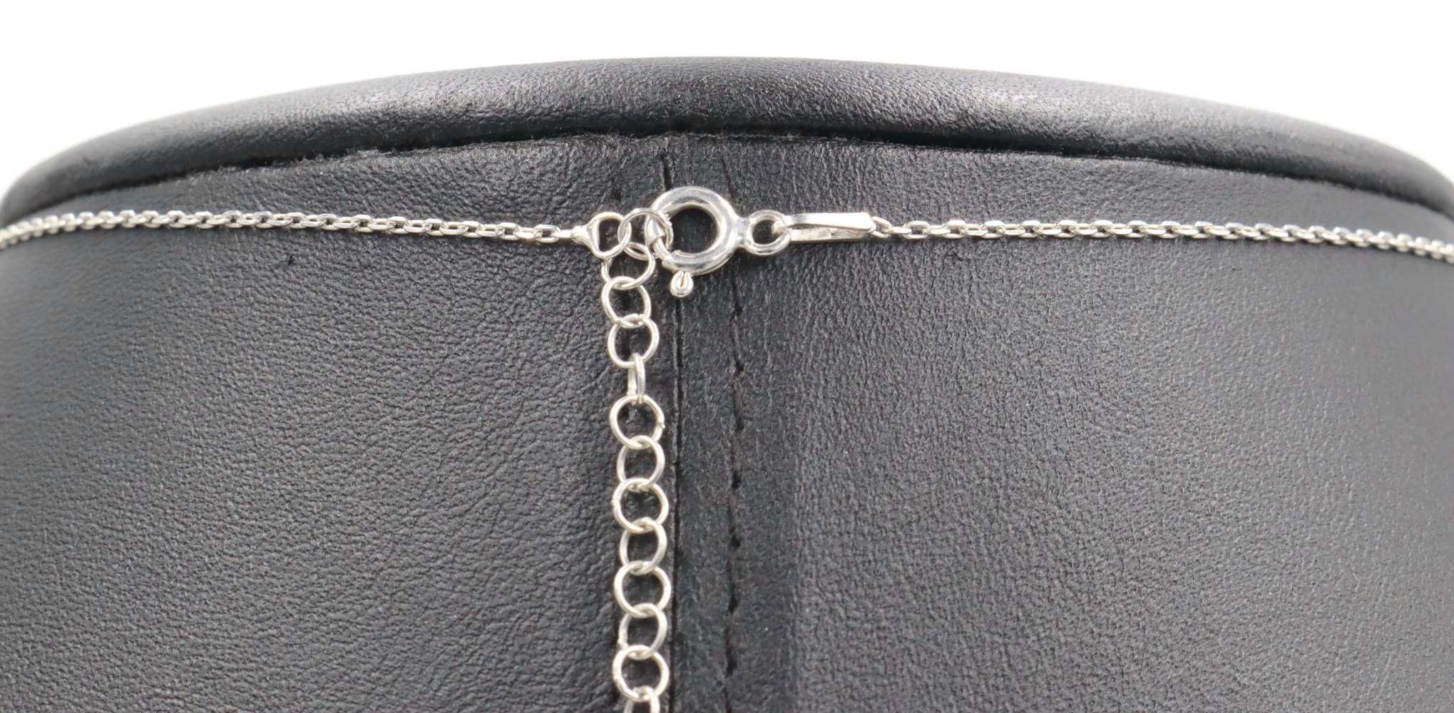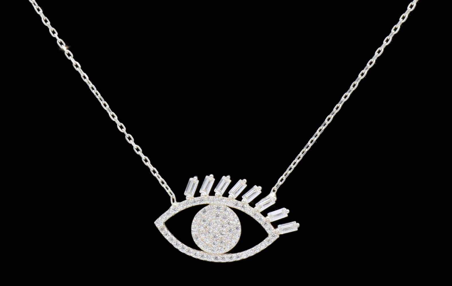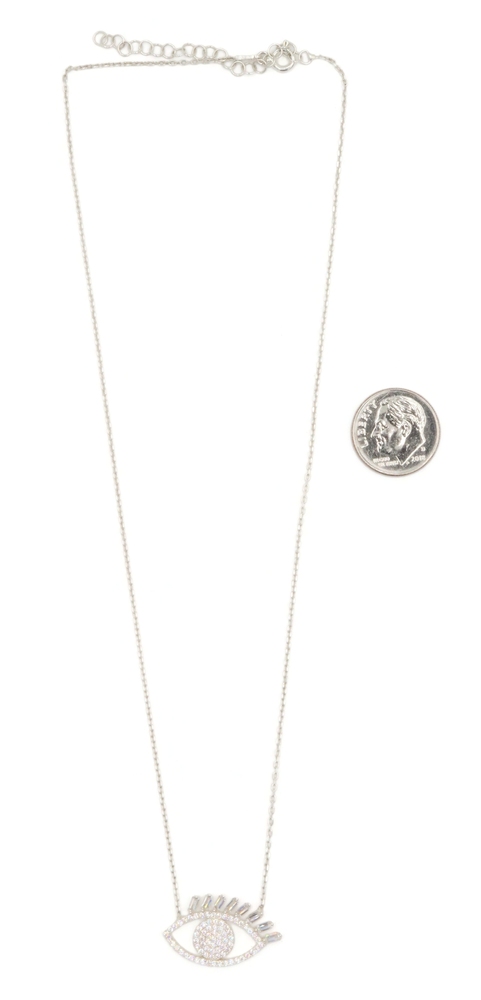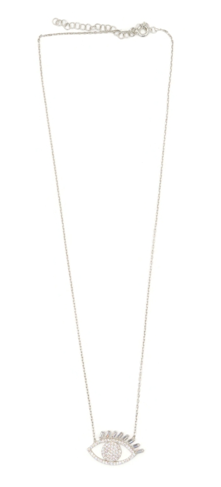 Sterling Silver Women's Eye Pendant Round and Baguette Cut CZ 16" Necklace 2.9g. This pendant features round and baguette cut cubic zirconia (CZ) stones. This necklace has an adjustable wearable length of 16" to 18".