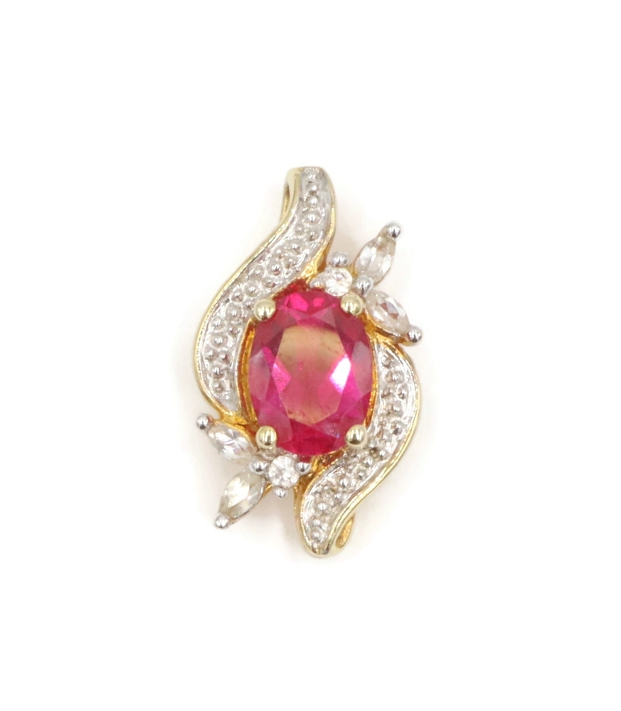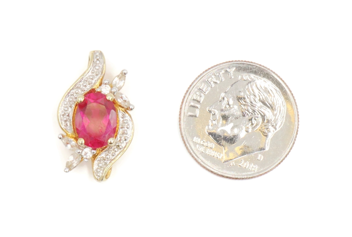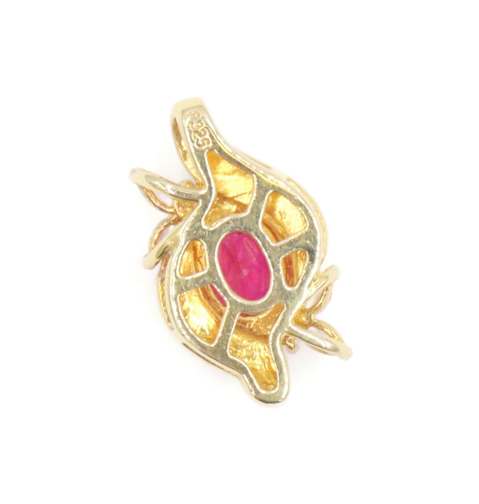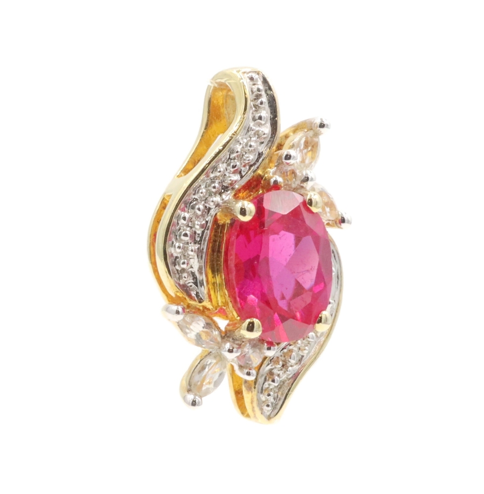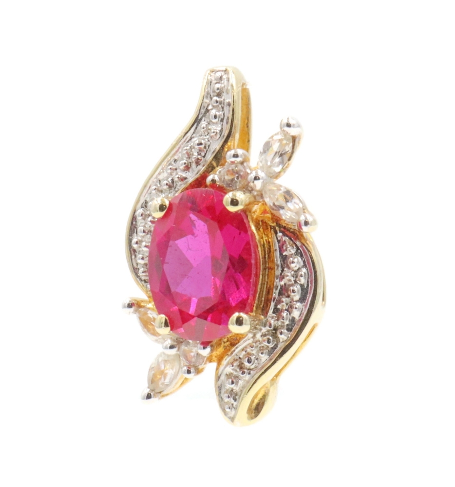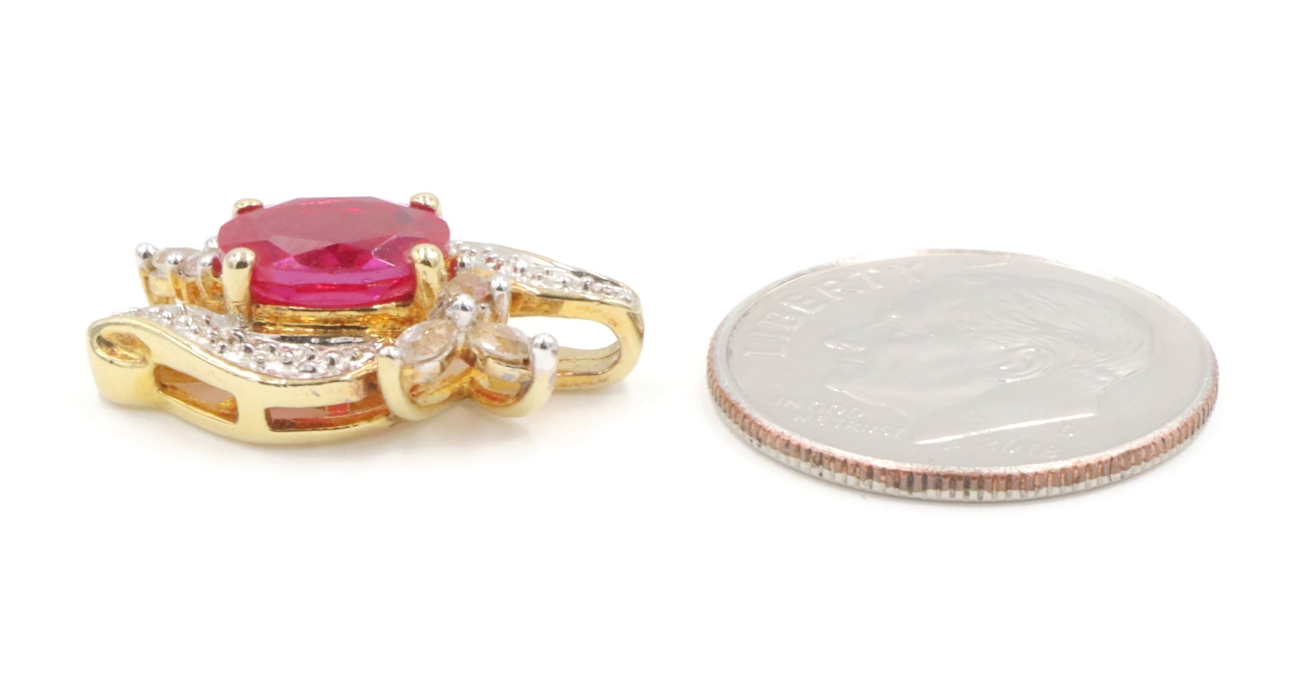 Sterling Silver Yellow Gold Tone Oval Cut Lab Created Ruby 19.4mm Pendant | USA Pawn