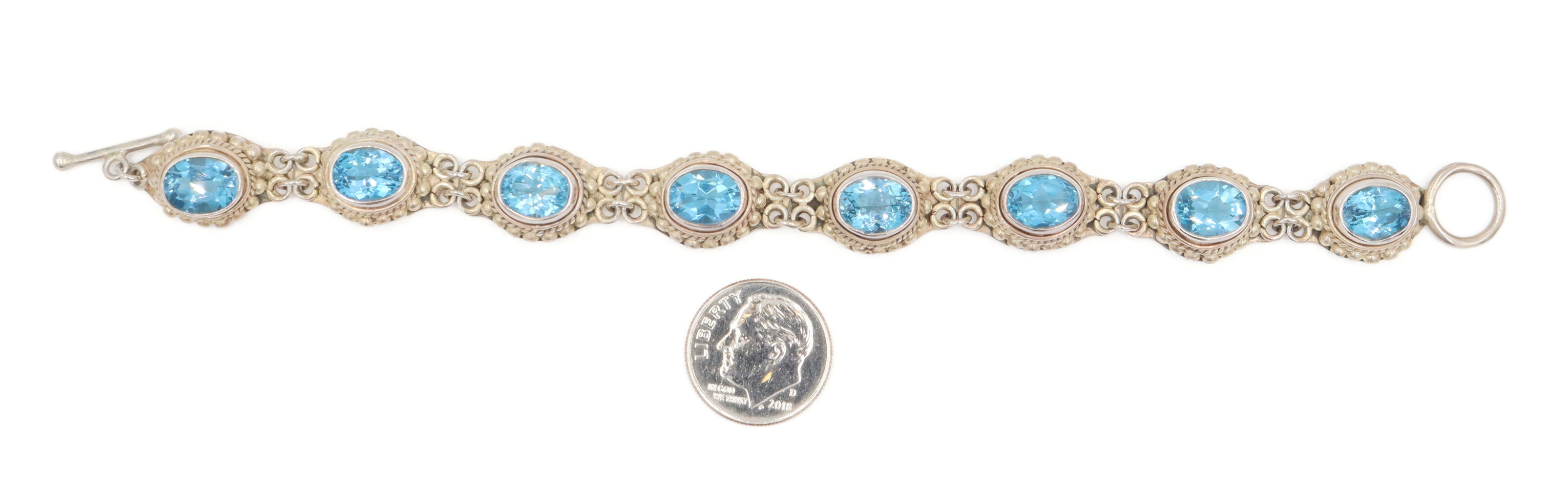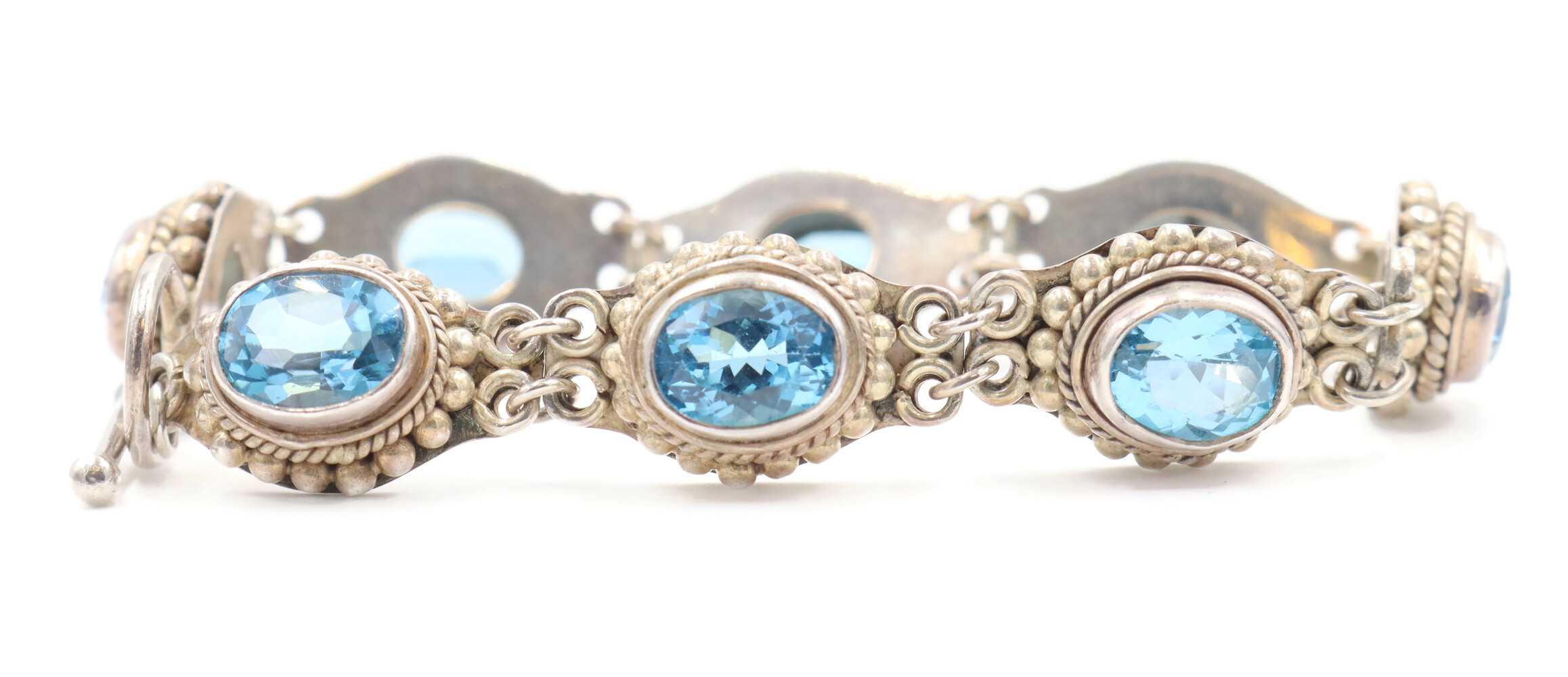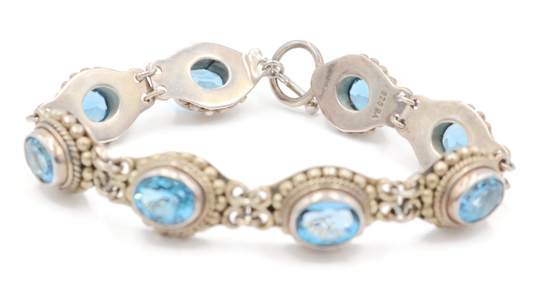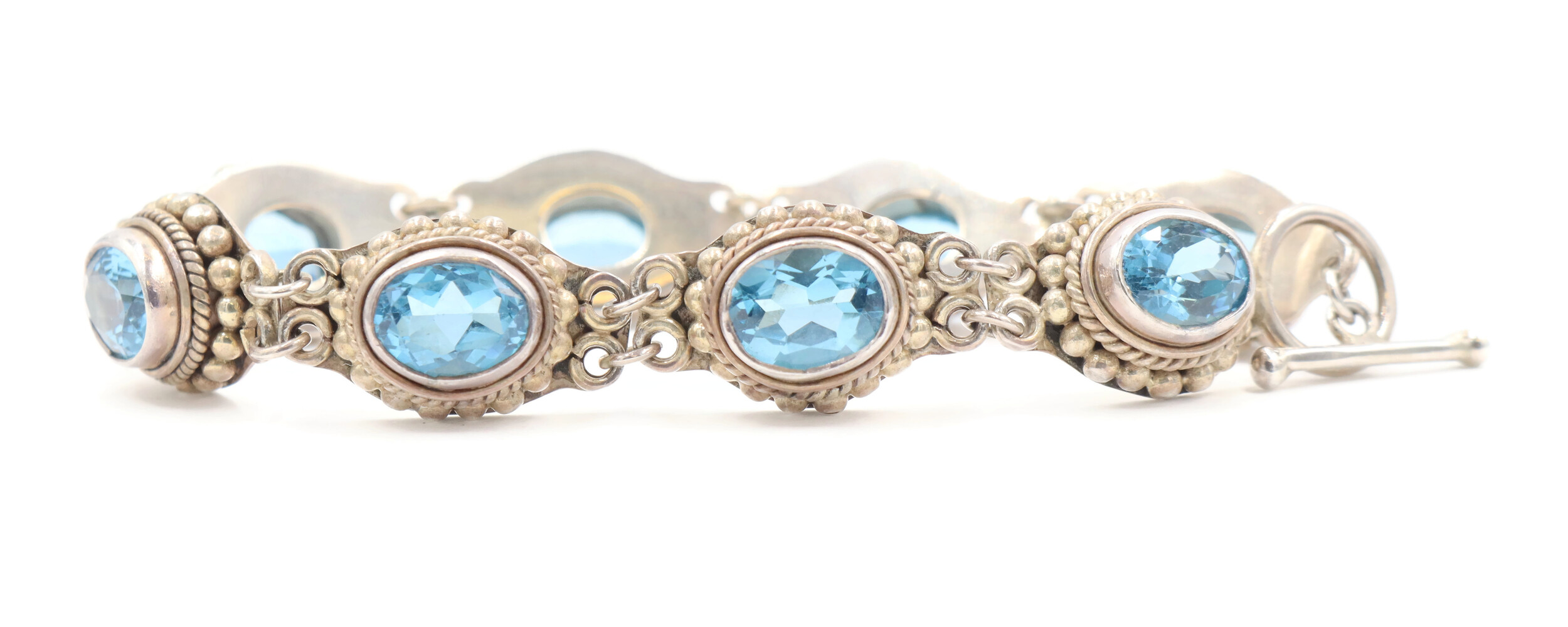 Suarti Bali Sterling Silver 925 Blue Topaz 7" Bail Oval Link Toggle Bracelet 27g | USA Pawn
