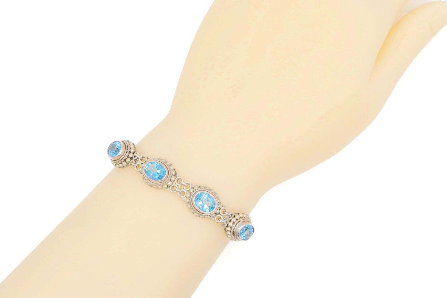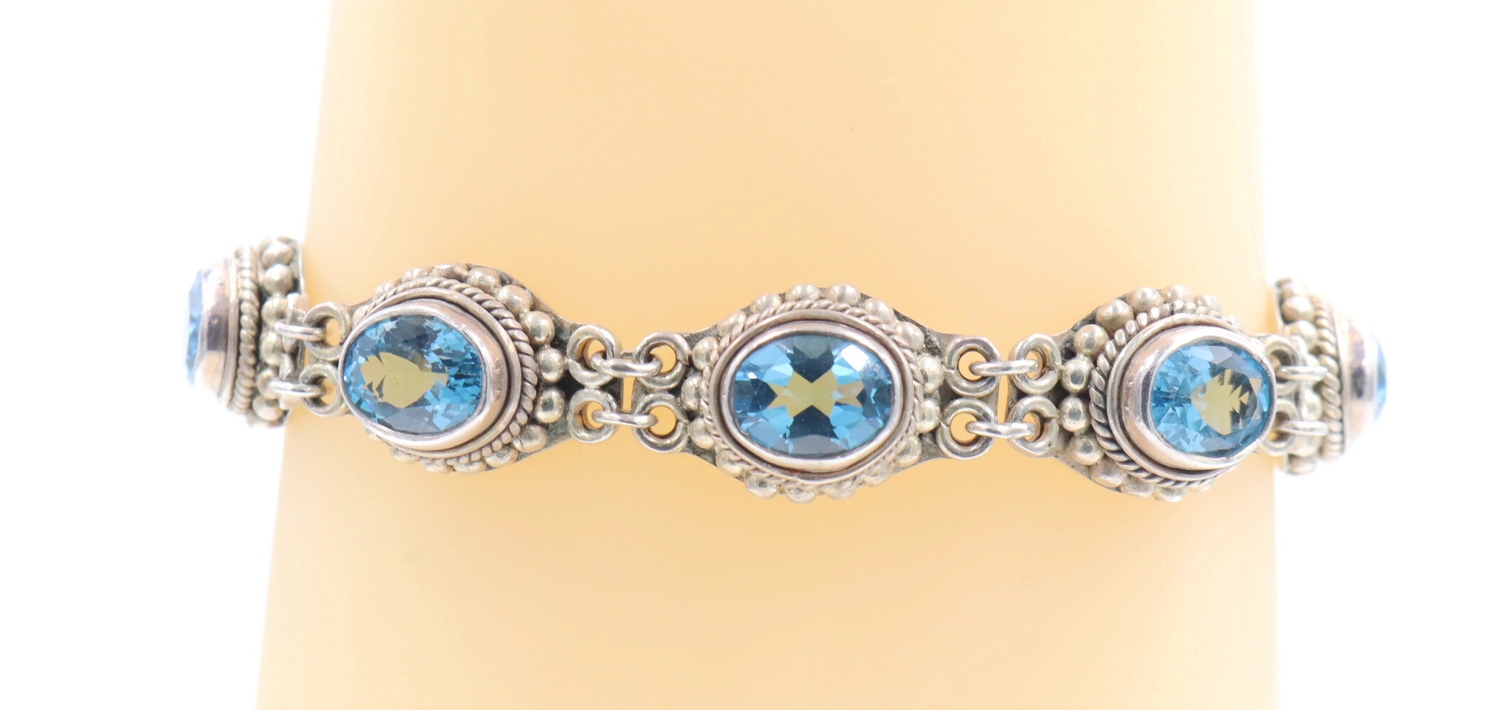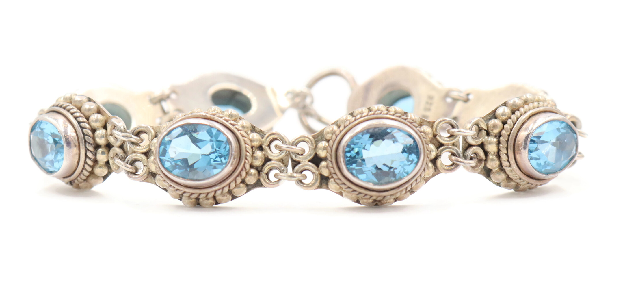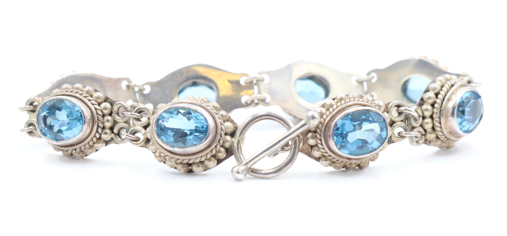Suarti Bali Sterling Silver 925 Blue Topaz 7" Bail Oval Link Toggle Bracelet 27g | USA Pawn
