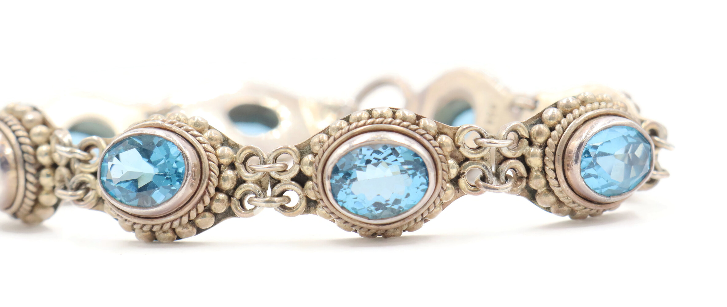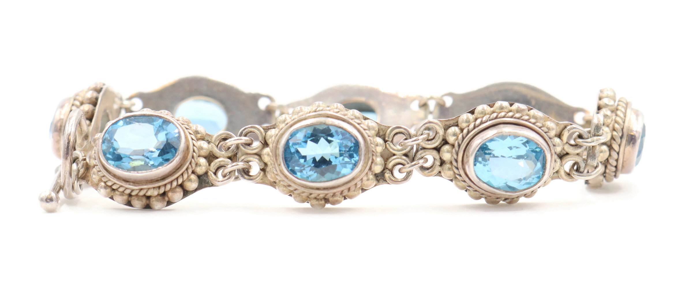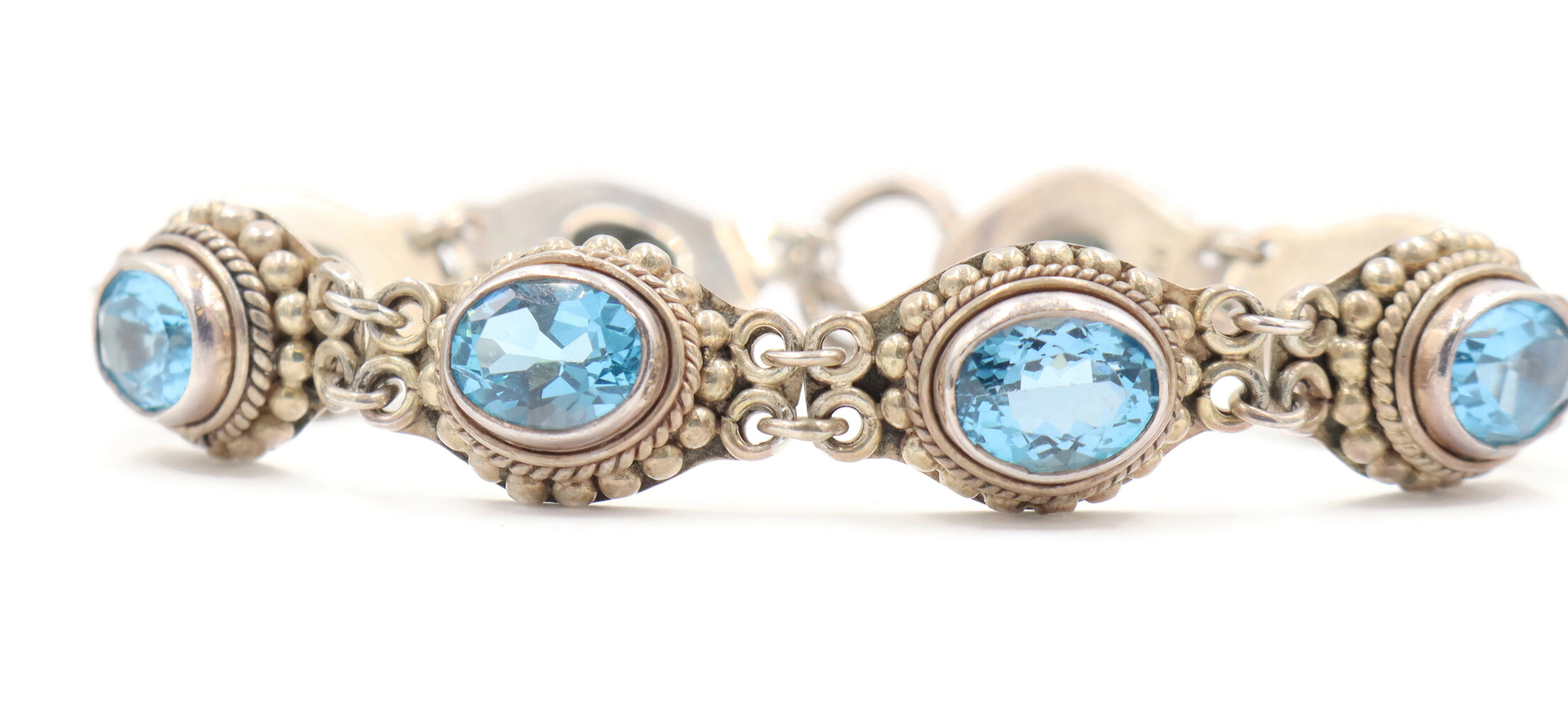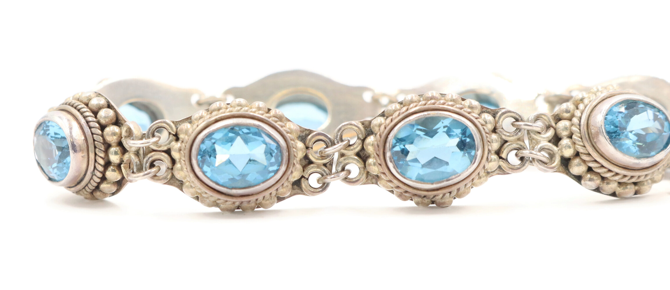 Suarti Bali Sterling Silver 925 Blue Topaz 7" Bail Oval Link Toggle Bracelet 27g | USA Pawn