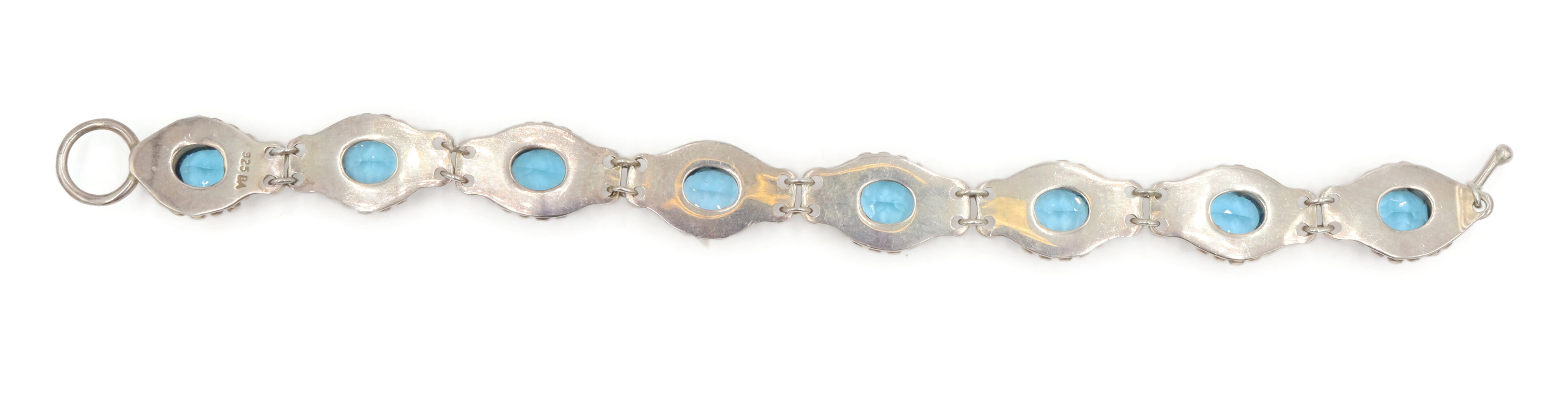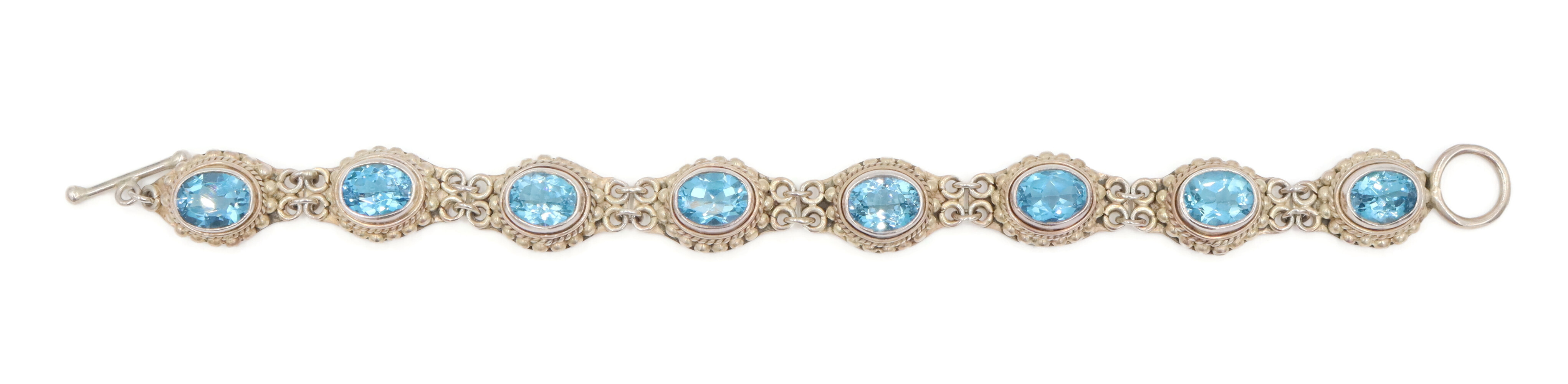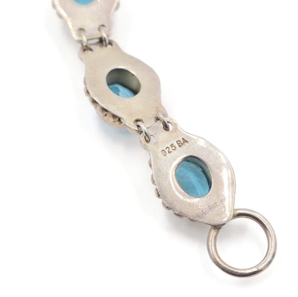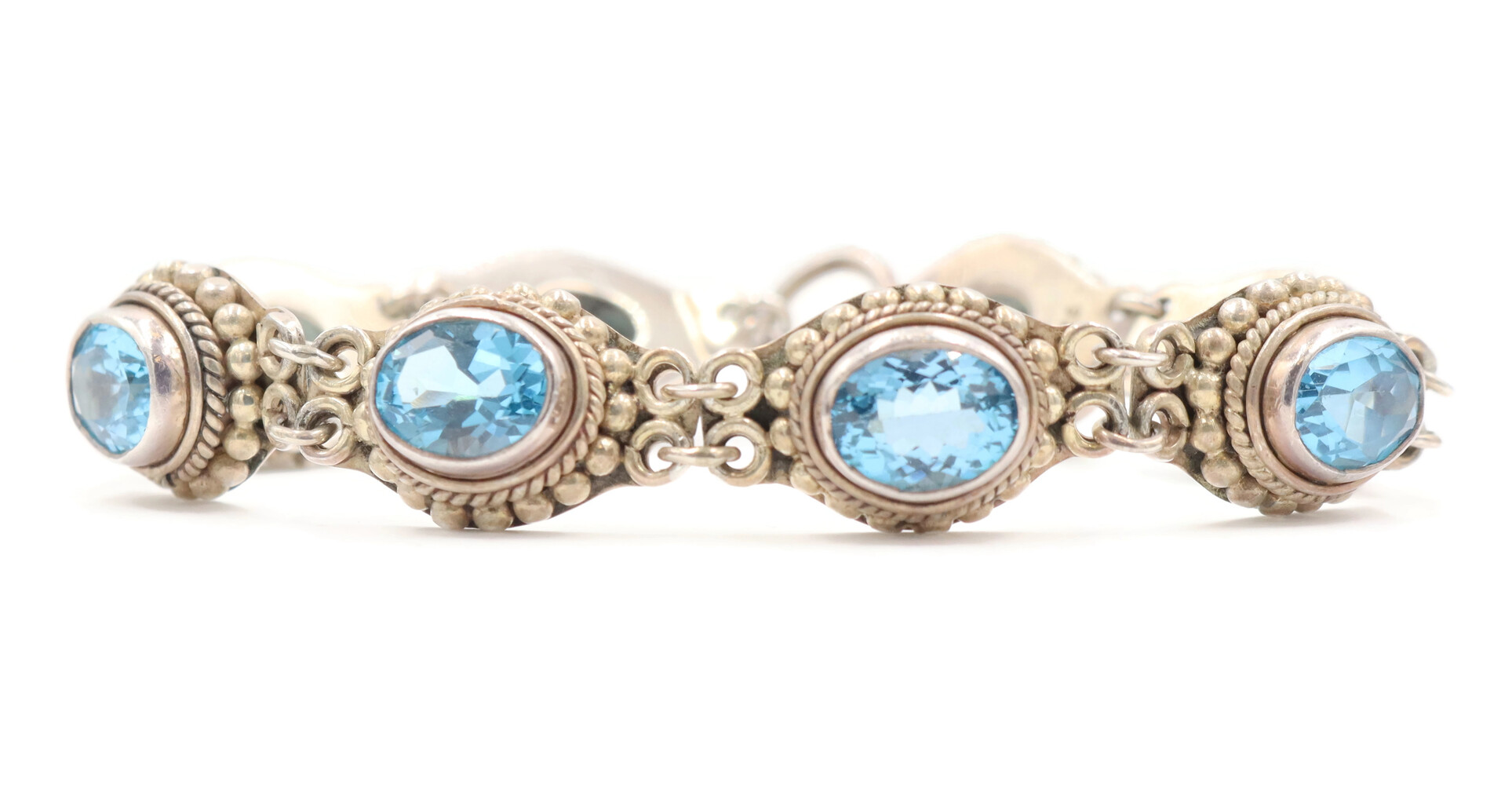 Suarti Bali Sterling Silver 925 Blue Topaz 7" Bail Oval Link Toggle Bracelet 27g | USA Pawn