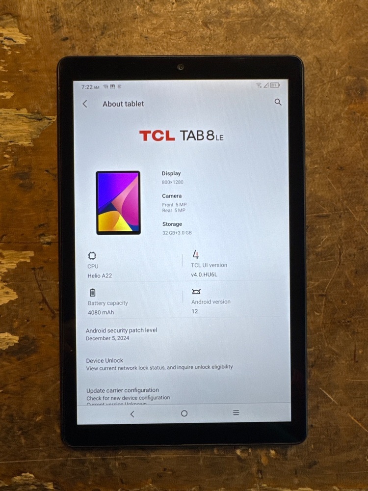 TCL TAB 8 LE / 8 INCH / 32GB / 5MP CAMERA FRONT & REAR / NO CHARGER
