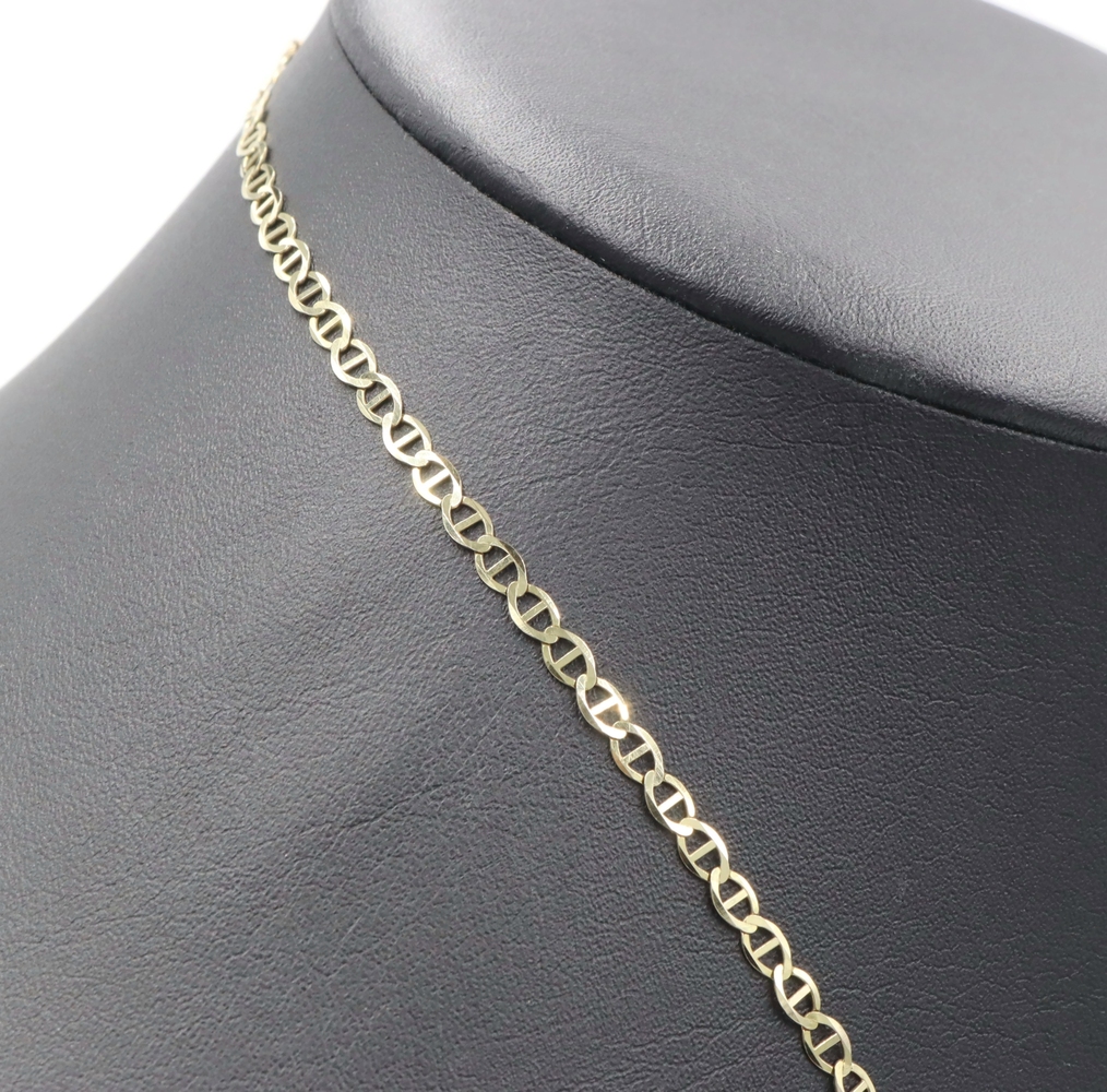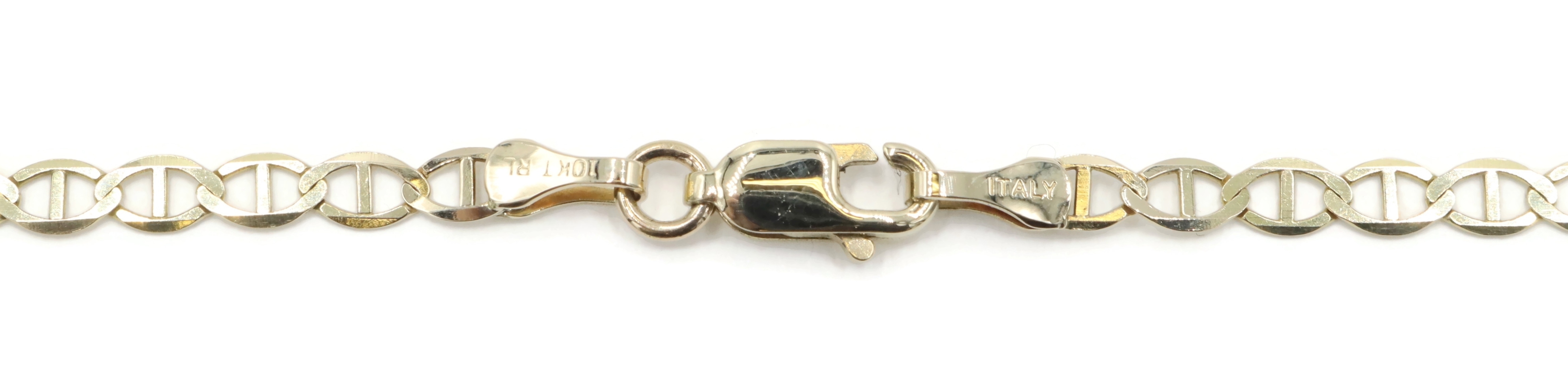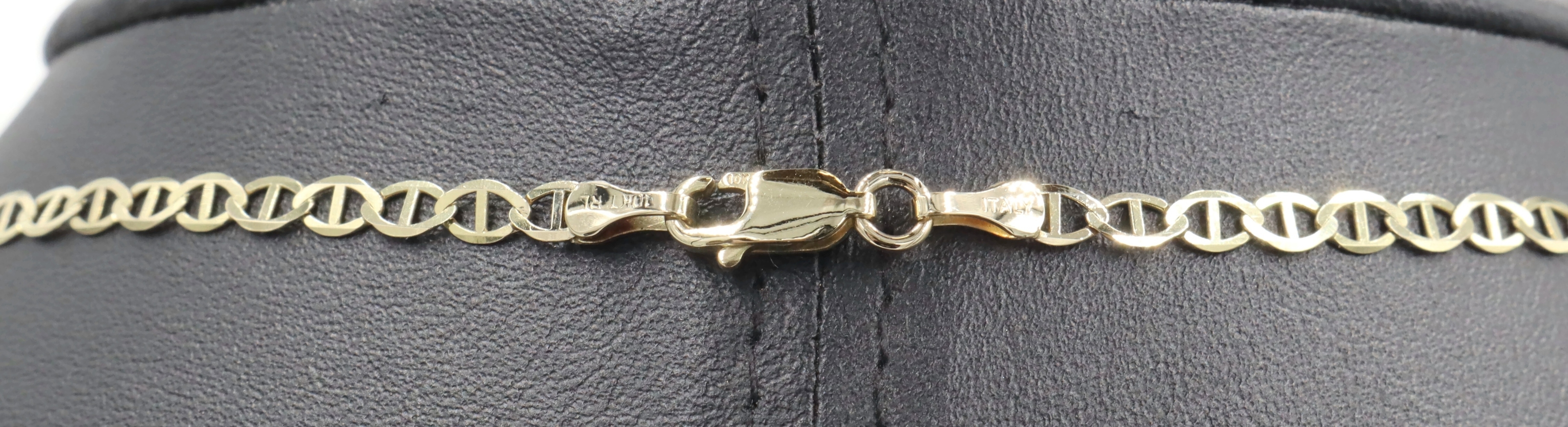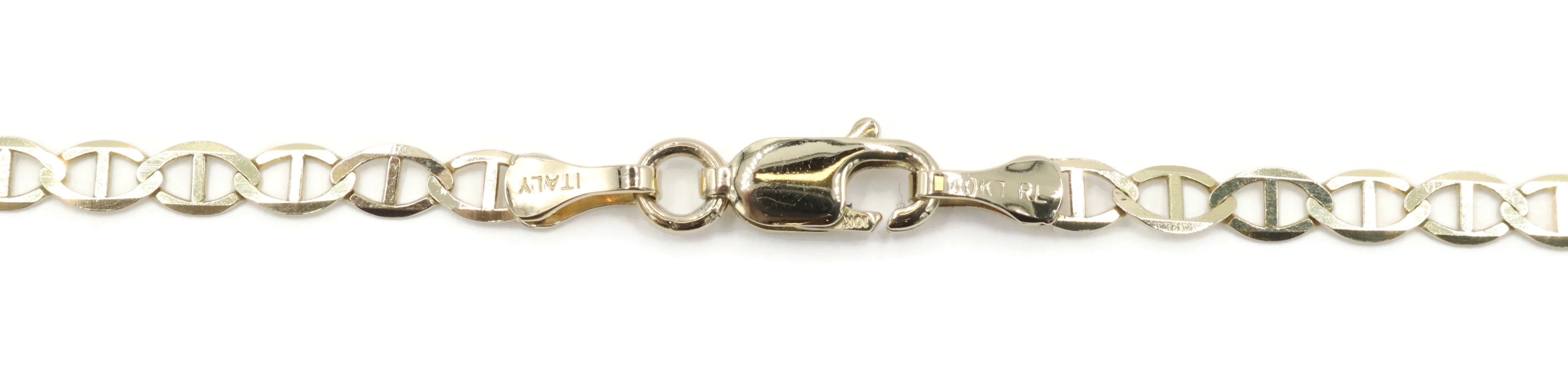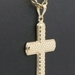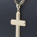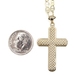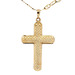 Textured 14KT Yellow Gold 1.5" Cross Pendant on 10KT Gold Mariner Chain 20.5" RL. This pendant is approximately 40mm in length (including the bail) and the mariner necklace is approximately 20 1/2 inches in length.