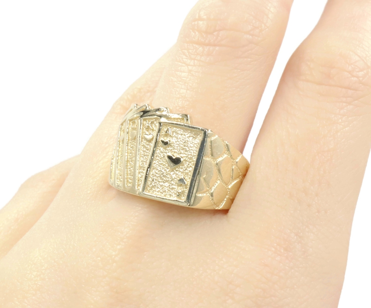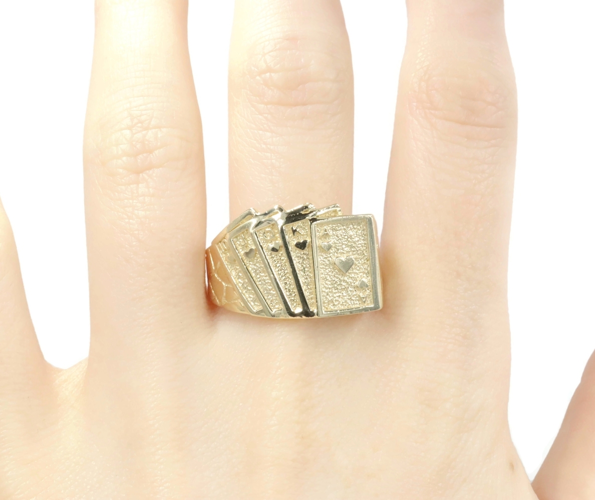 Textured Royal Flush 14KT Yellow Gold Playing Cards Nugget Band Ring CG 9.7g | USA Pawn