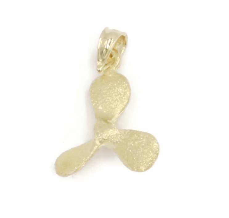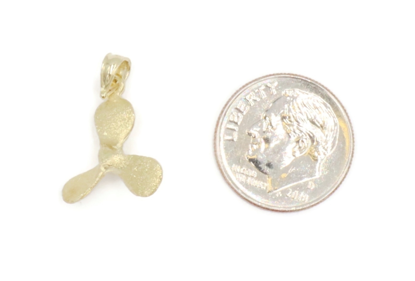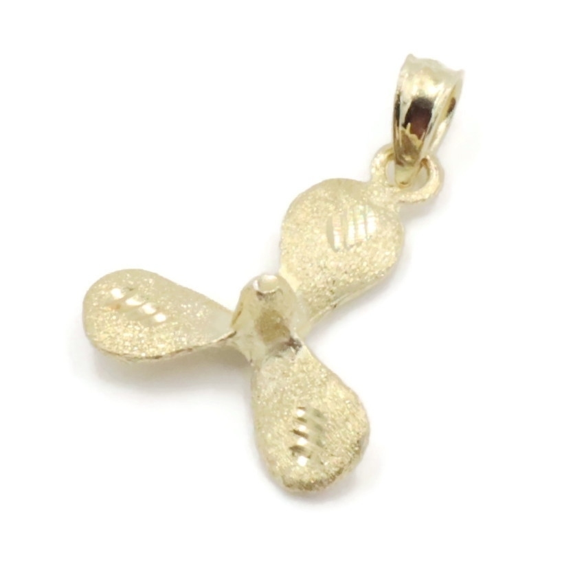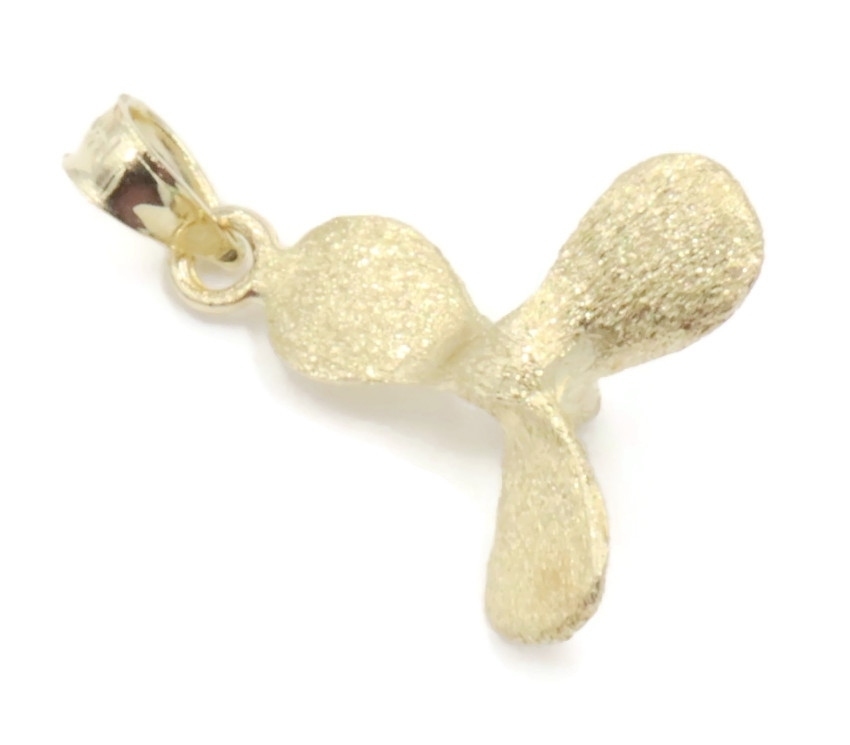Unique 14KT Yellow Gold 3D 0.8" Medium Diamond Cut Boat Propeller Pendant 1.35g