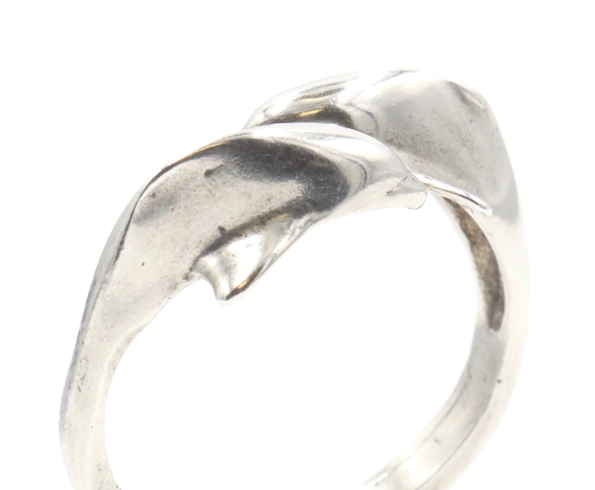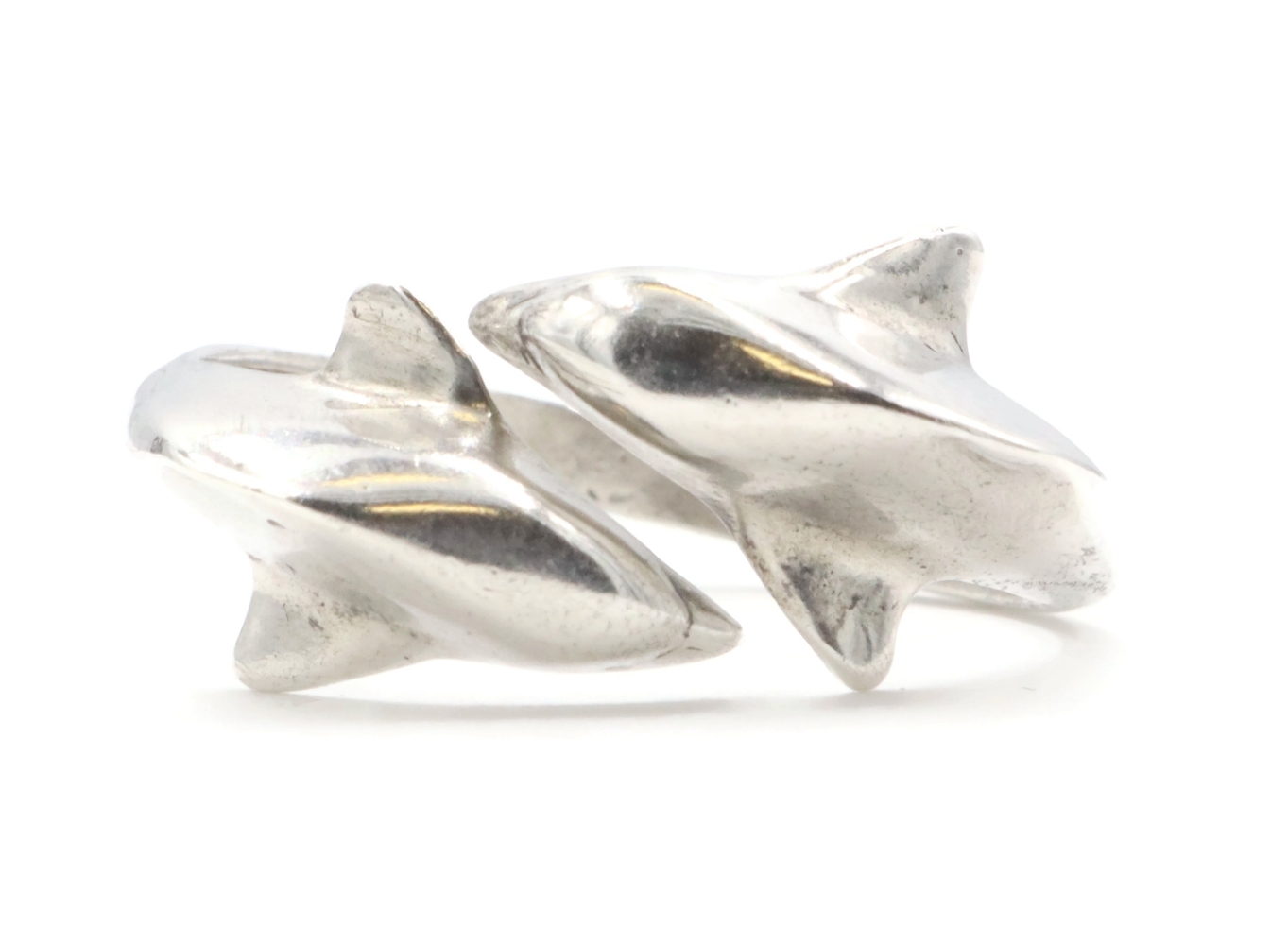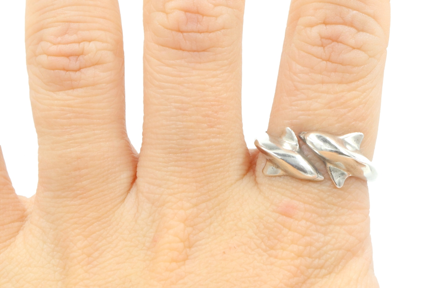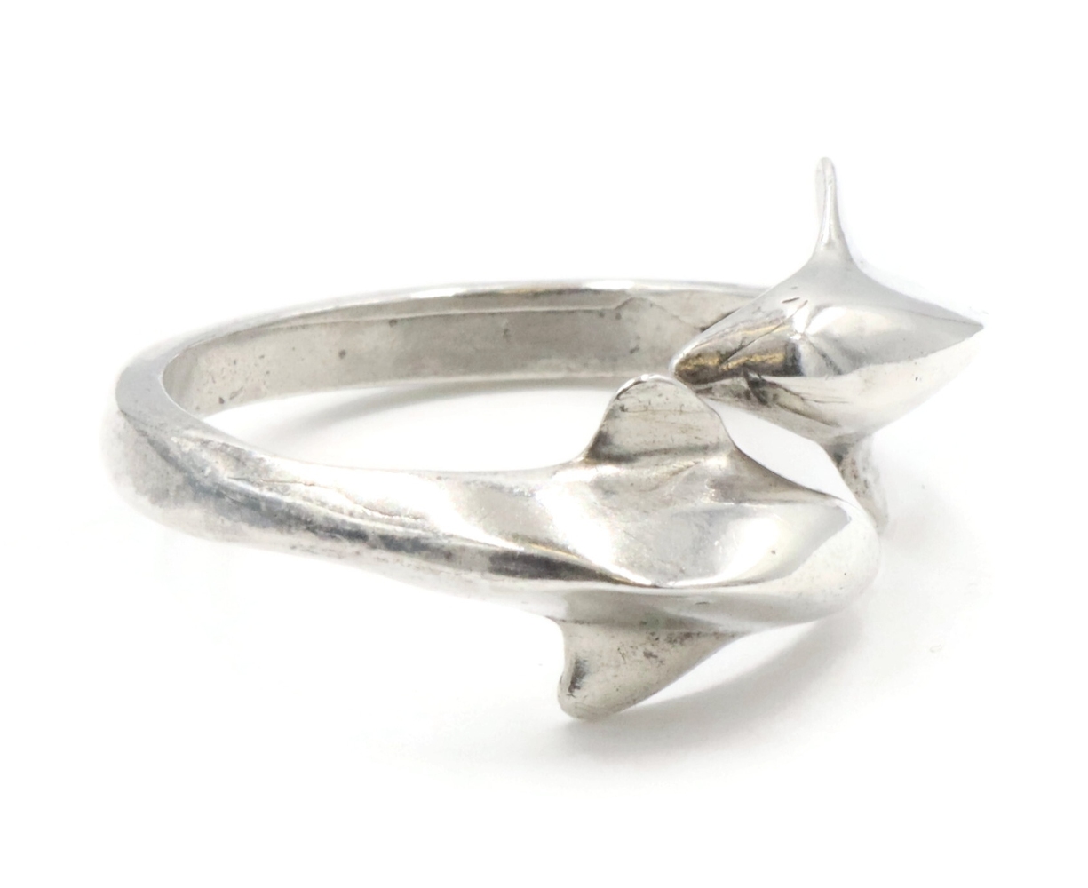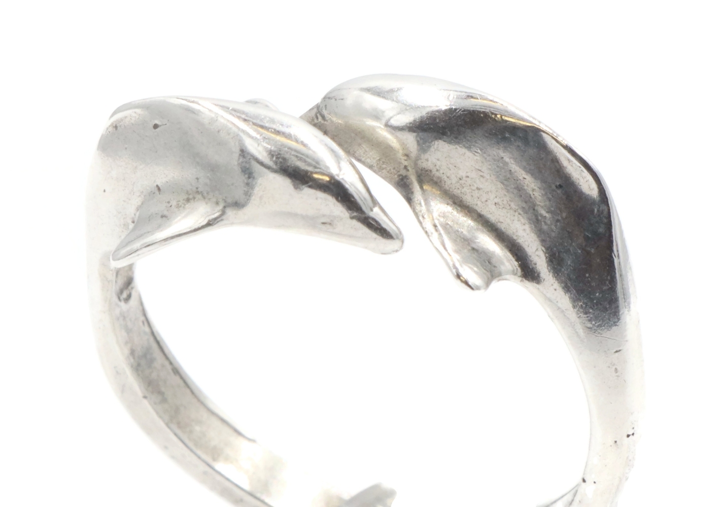 Unique Sterling Silver Swimming Dolphin 925 Wrapped Bypass Ring Size 8.5 - 4g | USA Pawn