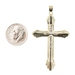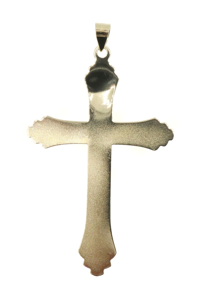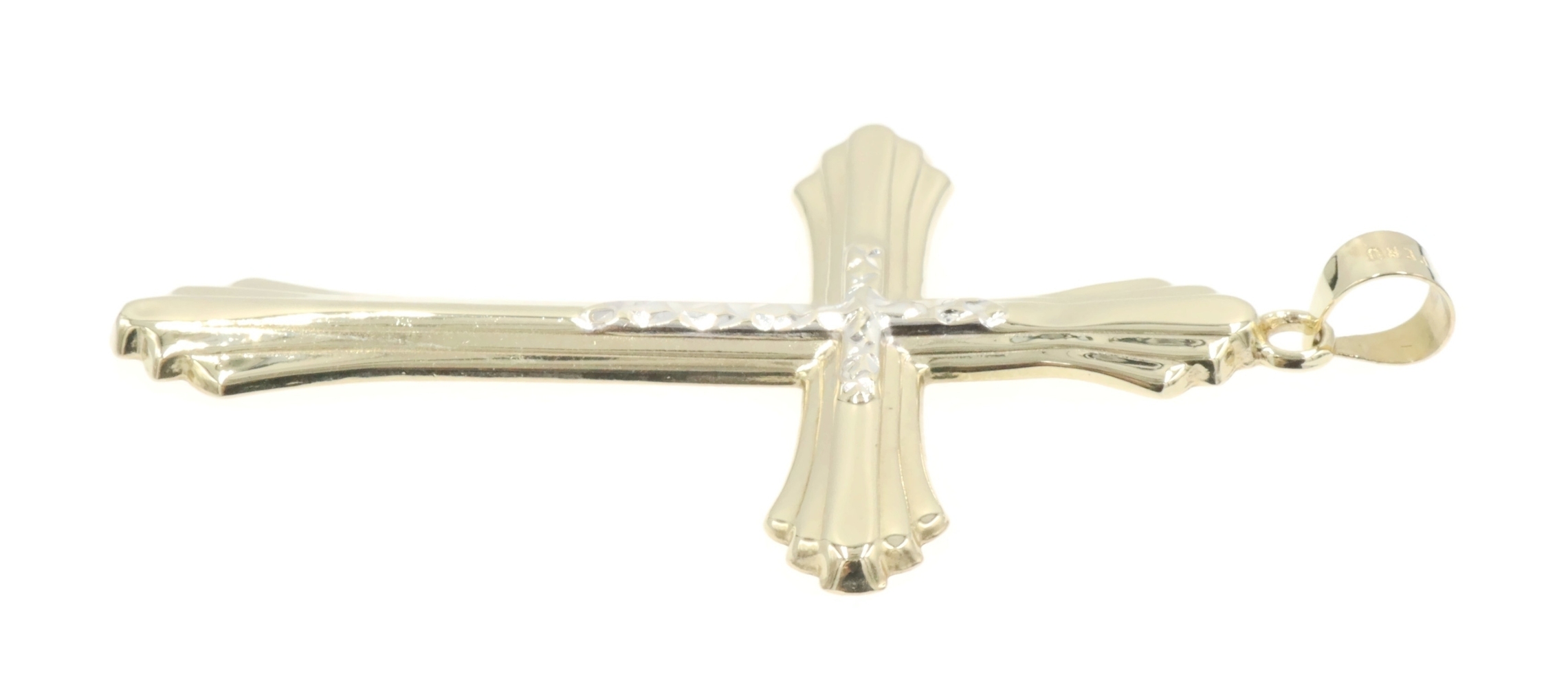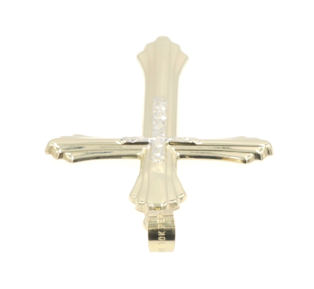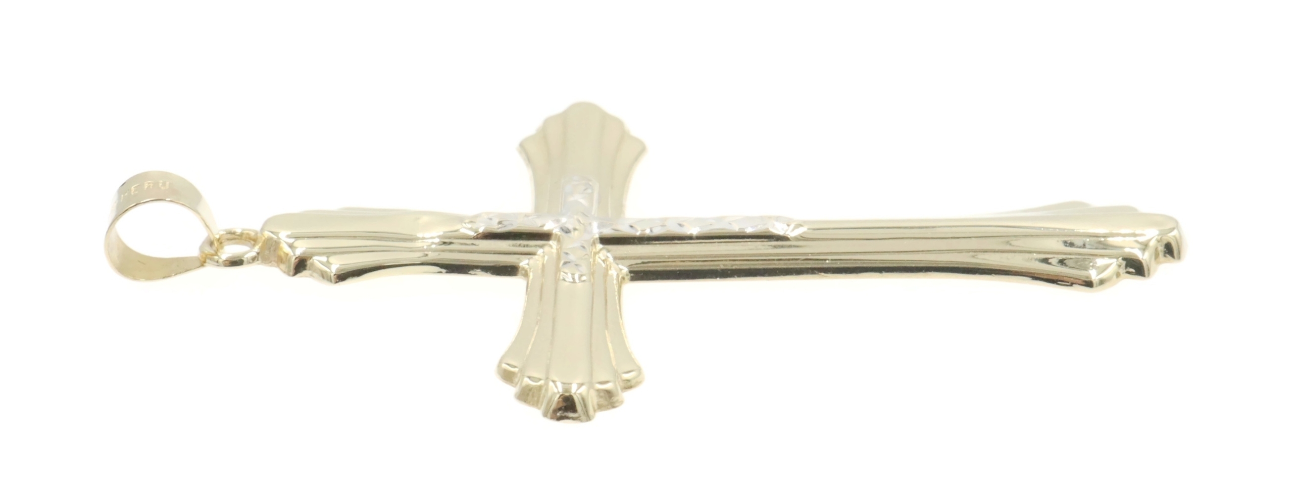 Vintage Style 10KT Two-Tone Gold Diamond Cut Cross Pendant 2" RL Peru - 1.82g. This pendant is approximately 52.5mm in length (including the bail) and 30.4mm in width.
