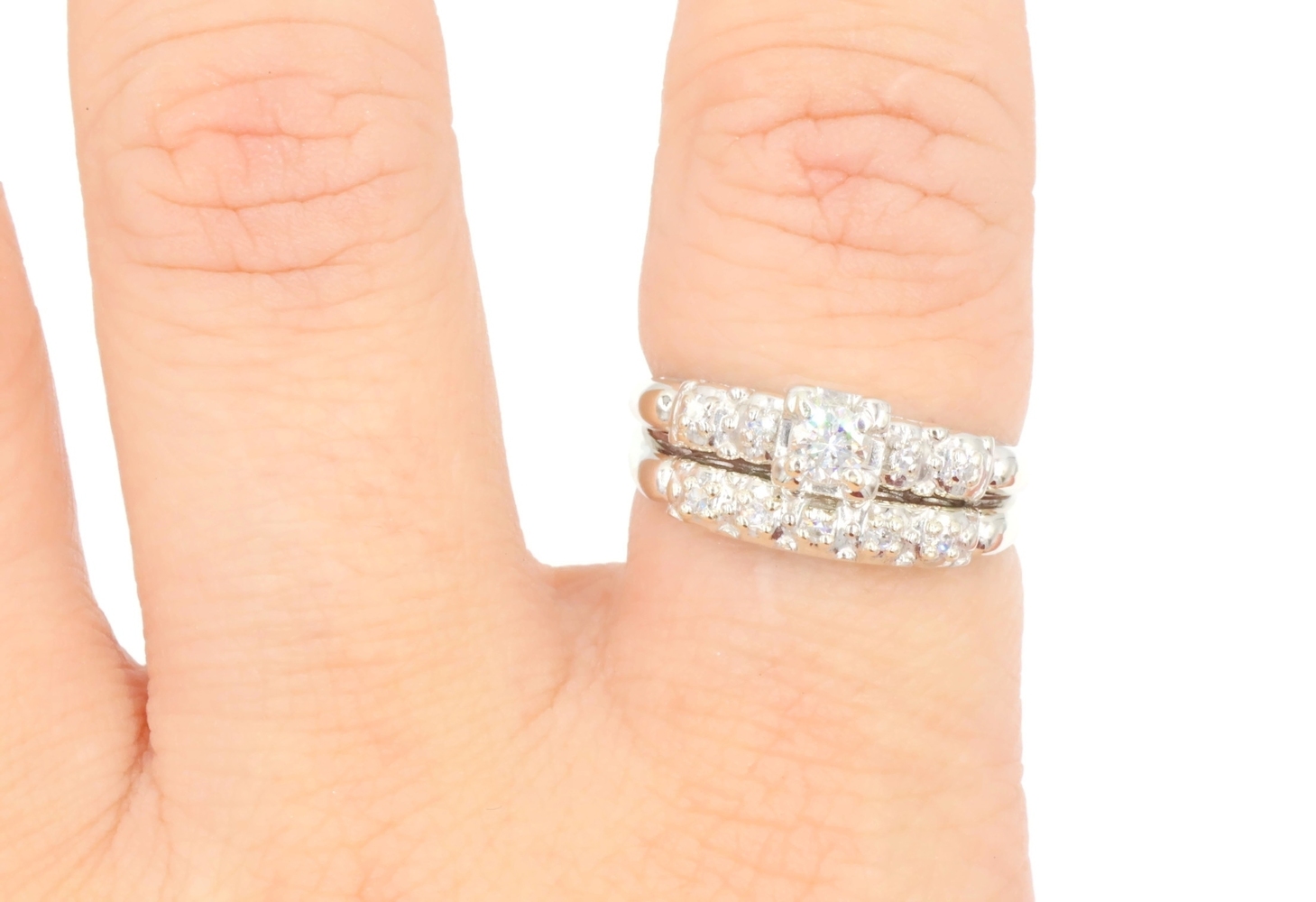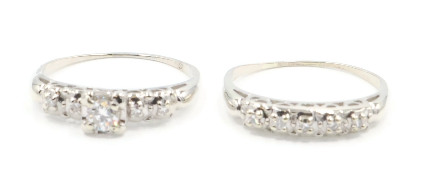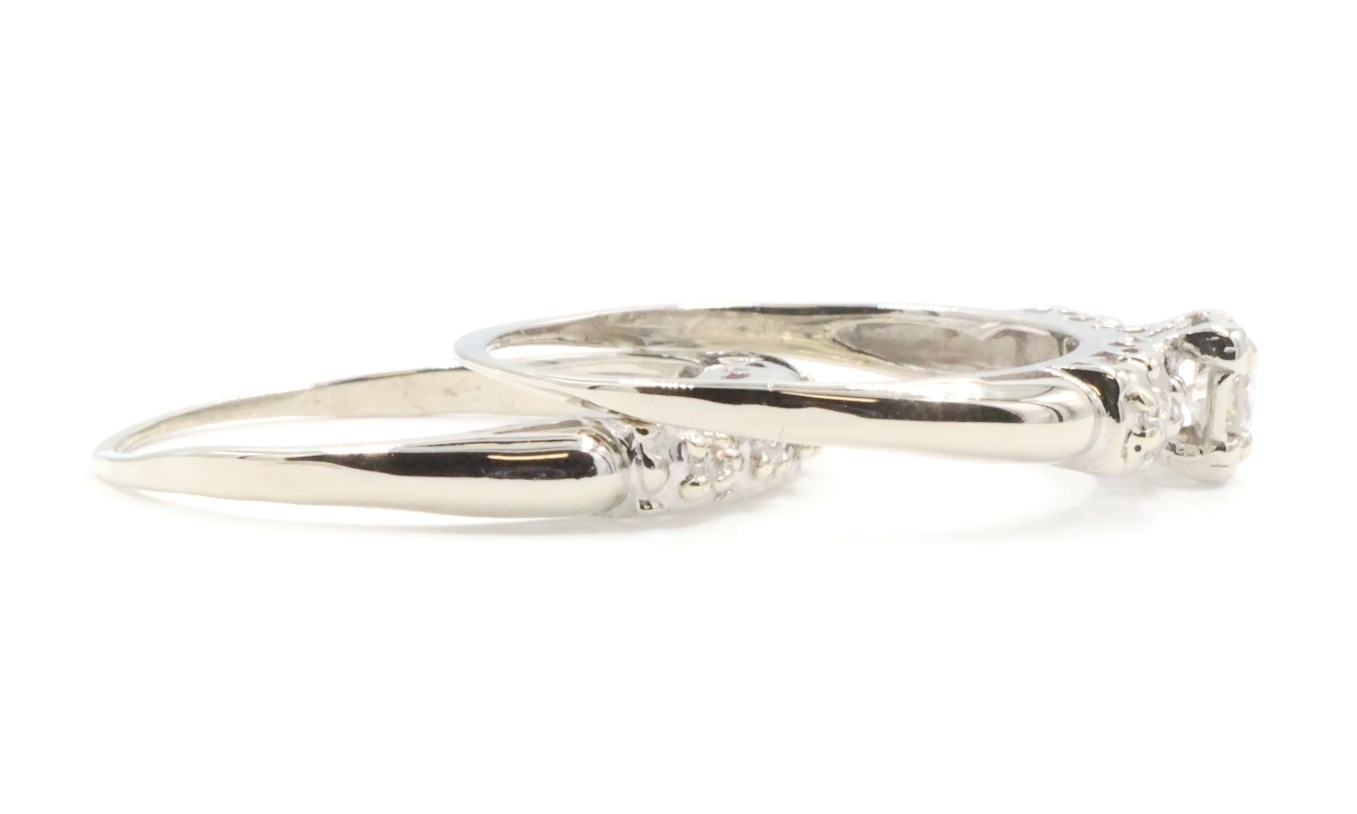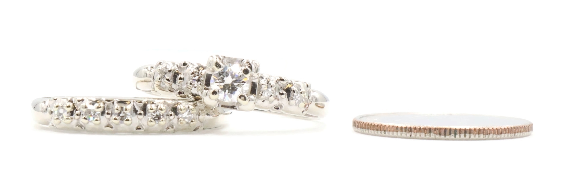 Vintage Style Estate 14KT White Gold 0.36 ctw Round Diamond Wedding Ring Set | USA Pawn