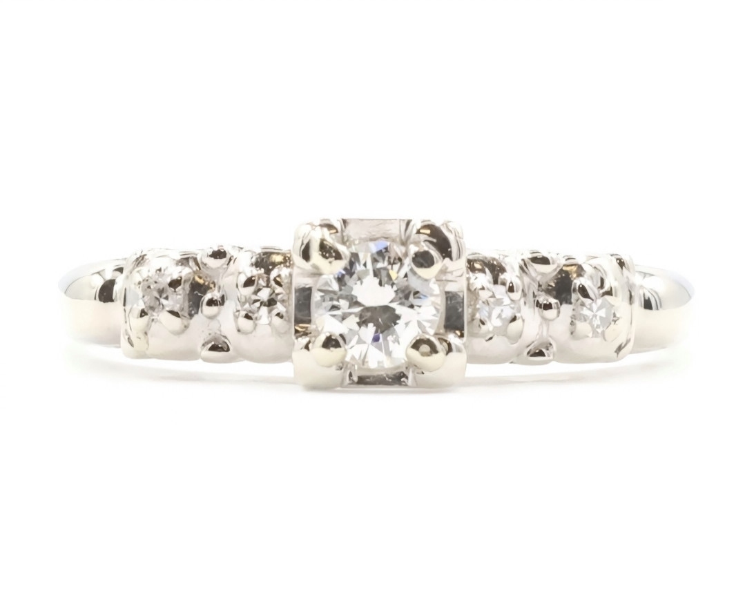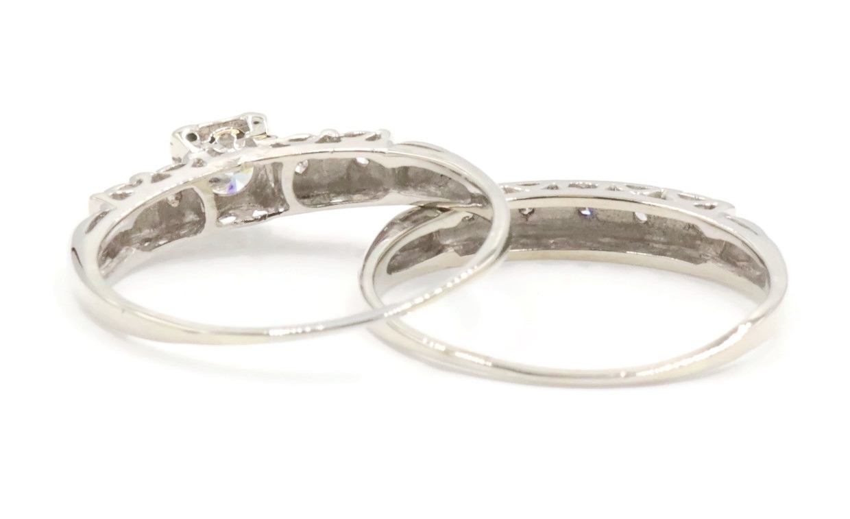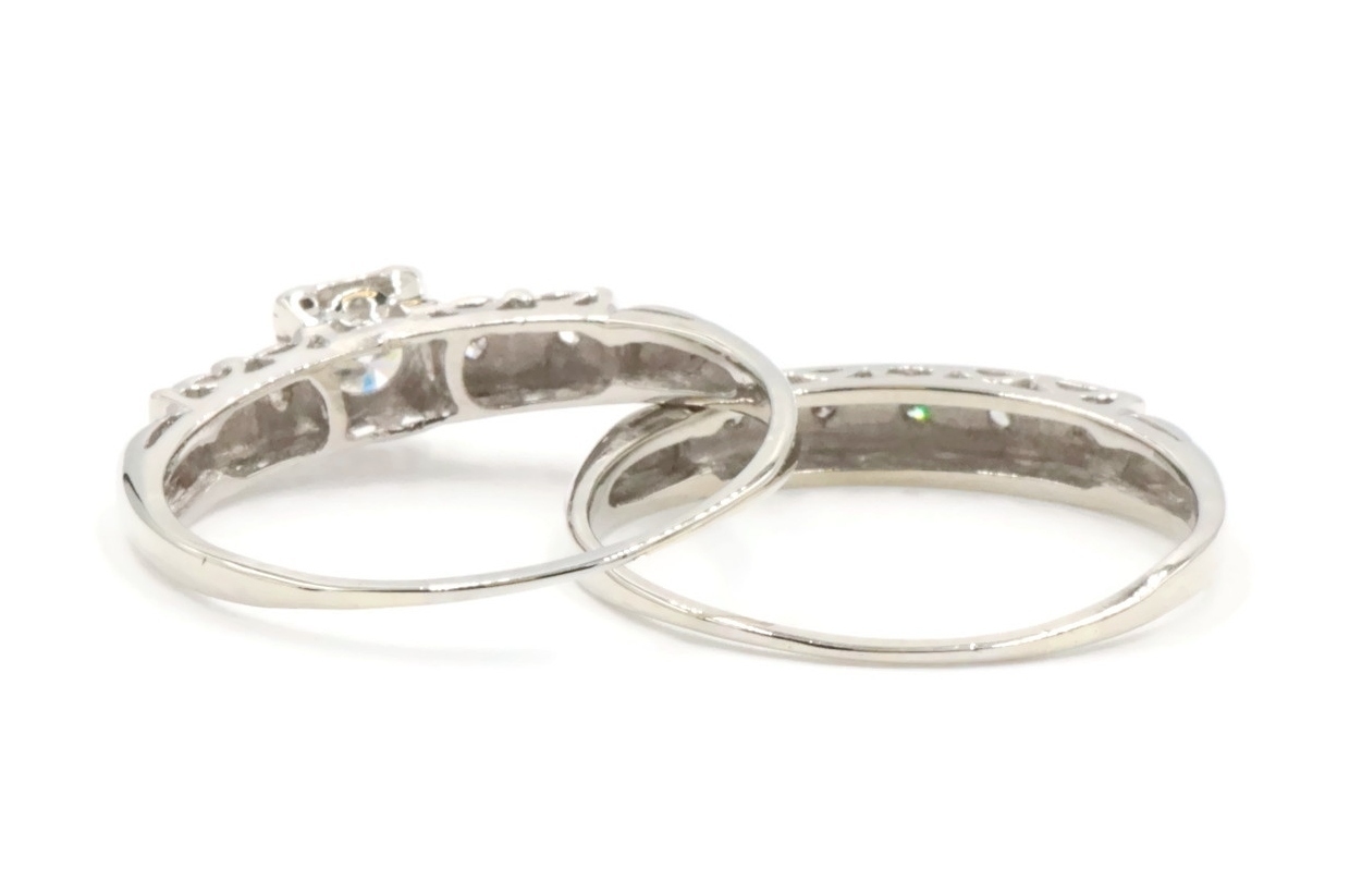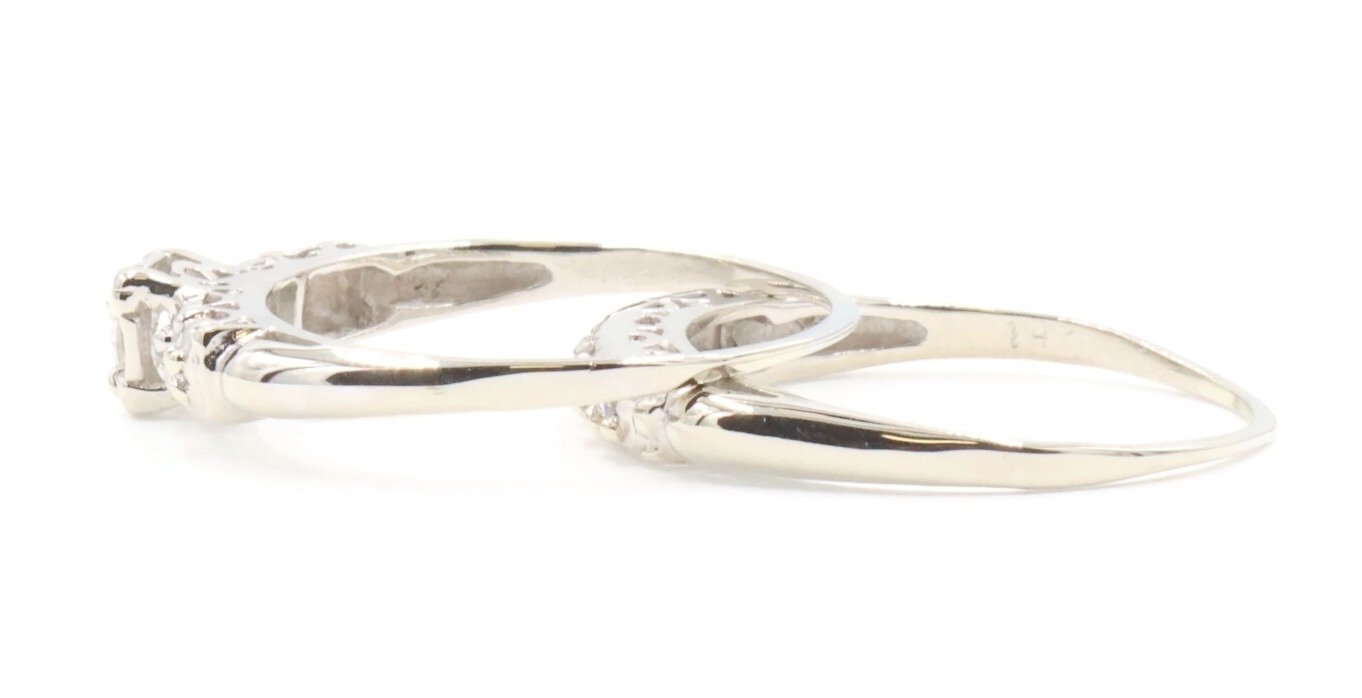 Vintage Style Estate 14KT White Gold 0.36 ctw Round Diamond Wedding Ring Set | USA Pawn