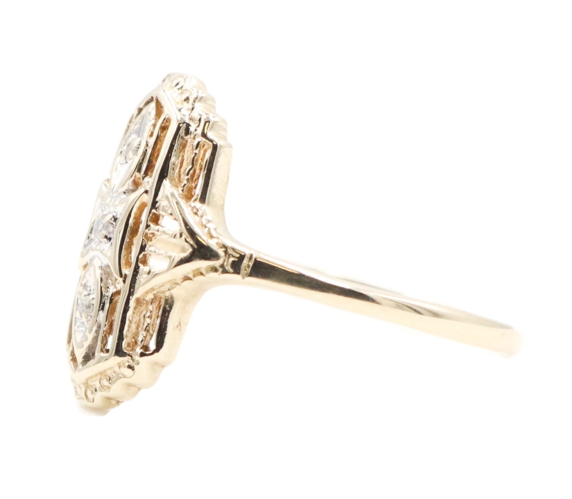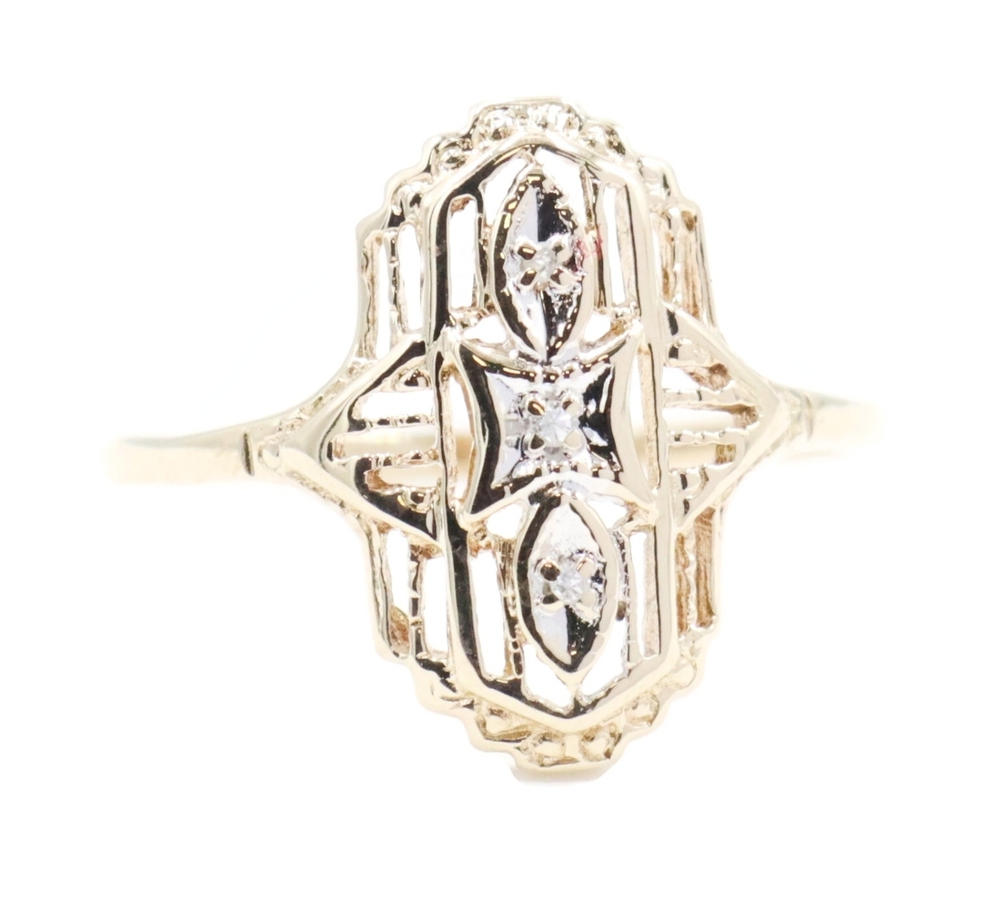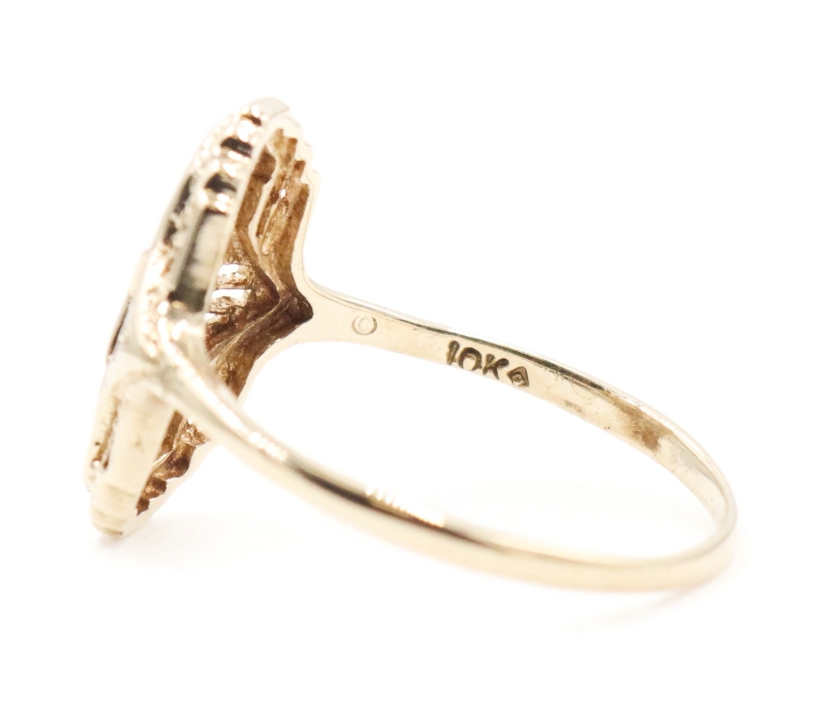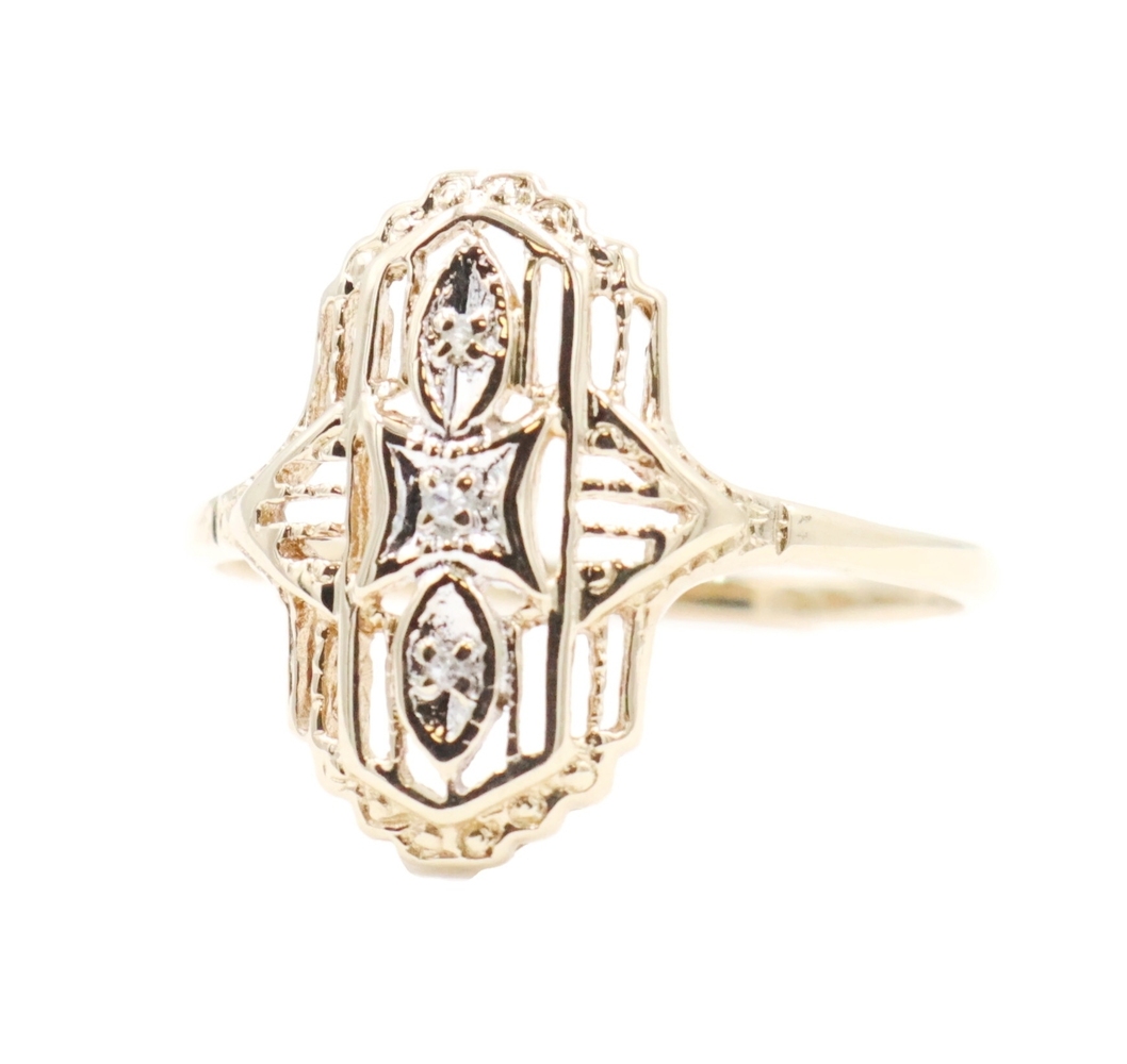 Vintage-Style 0.02 Ctw Single Cut Diamond 10KT Gold Shield Ring by Star Craft | USA Pawn