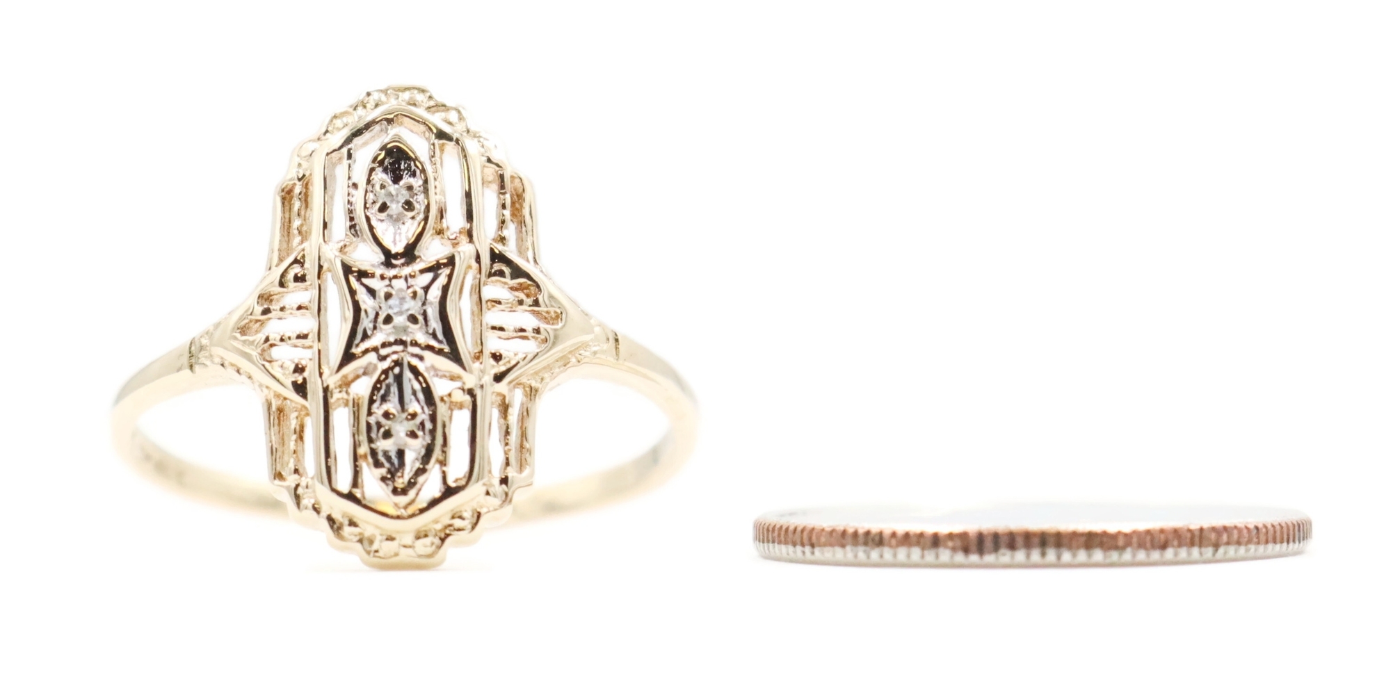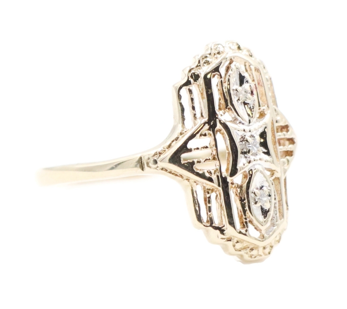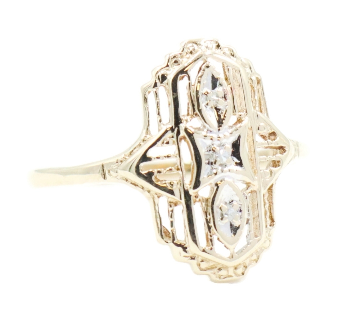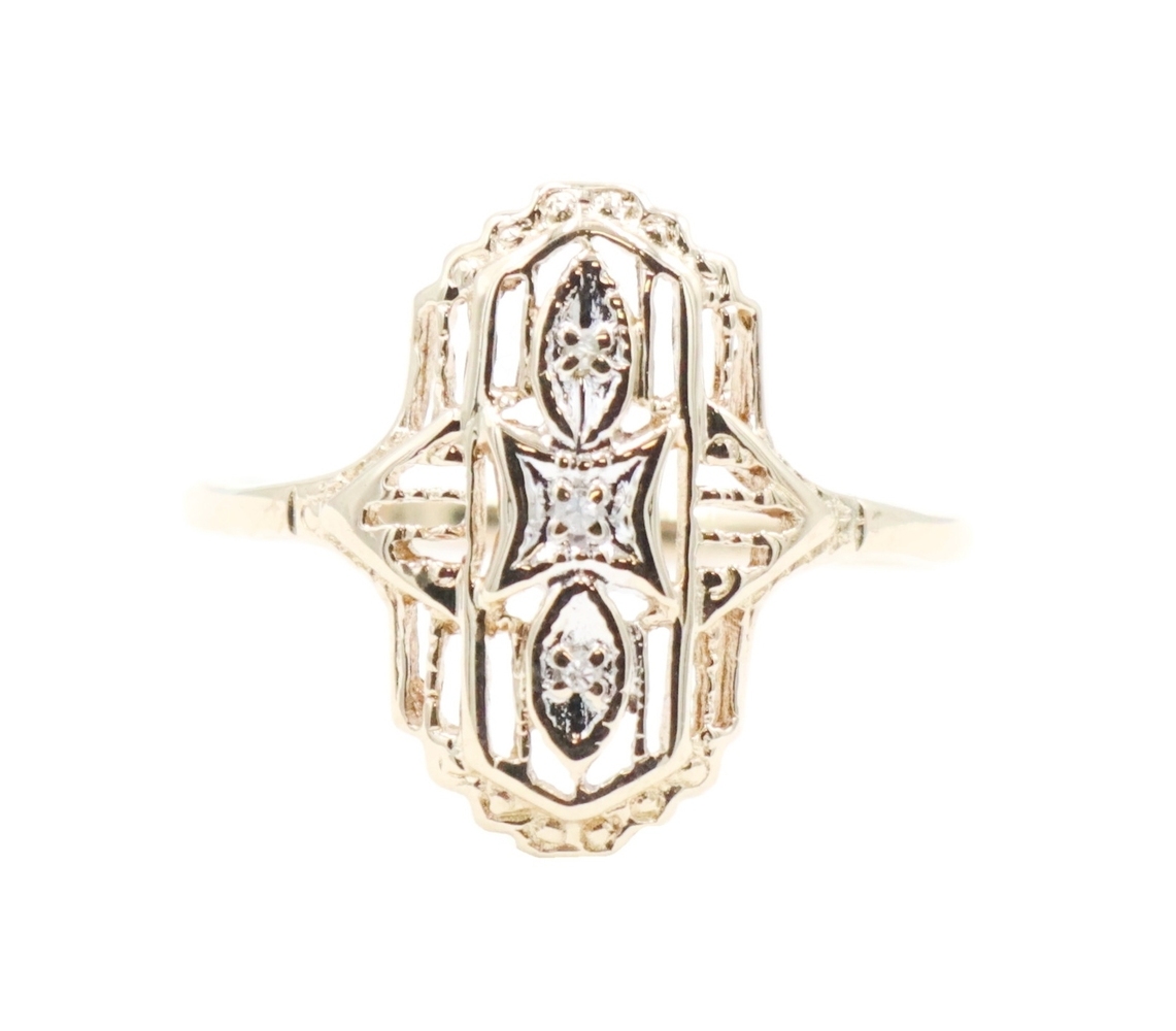 Vintage-Style 0.02 Ctw Single Cut Diamond 10KT Gold Shield Ring by Star Craft | USA Pawn