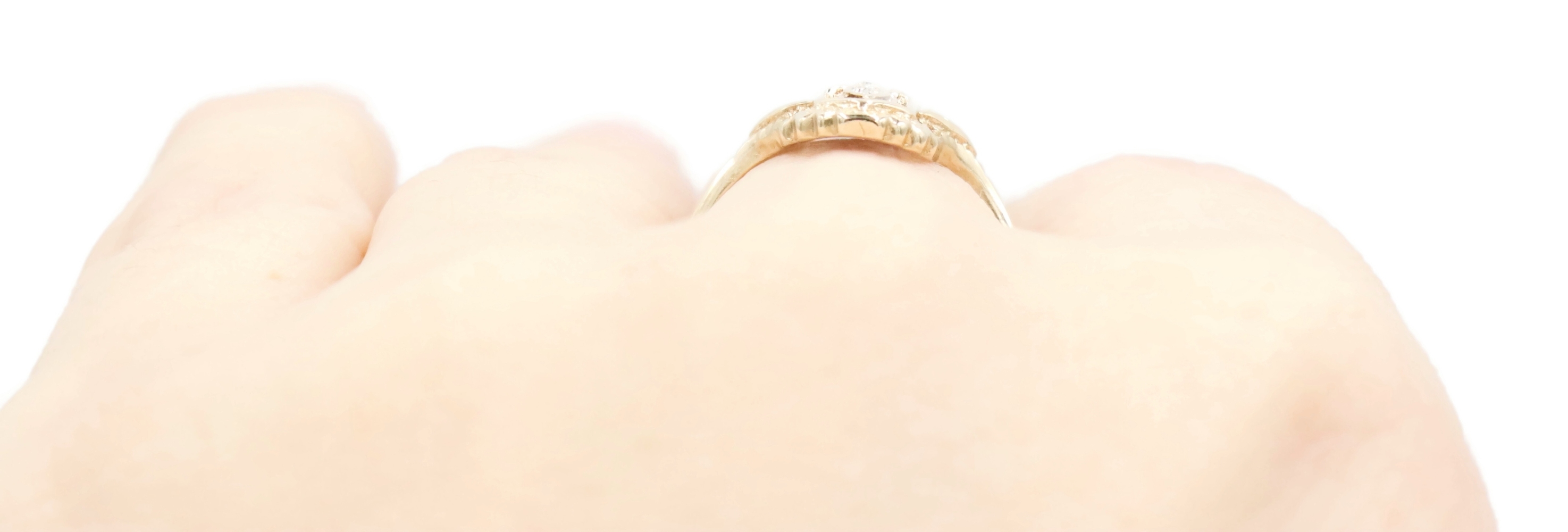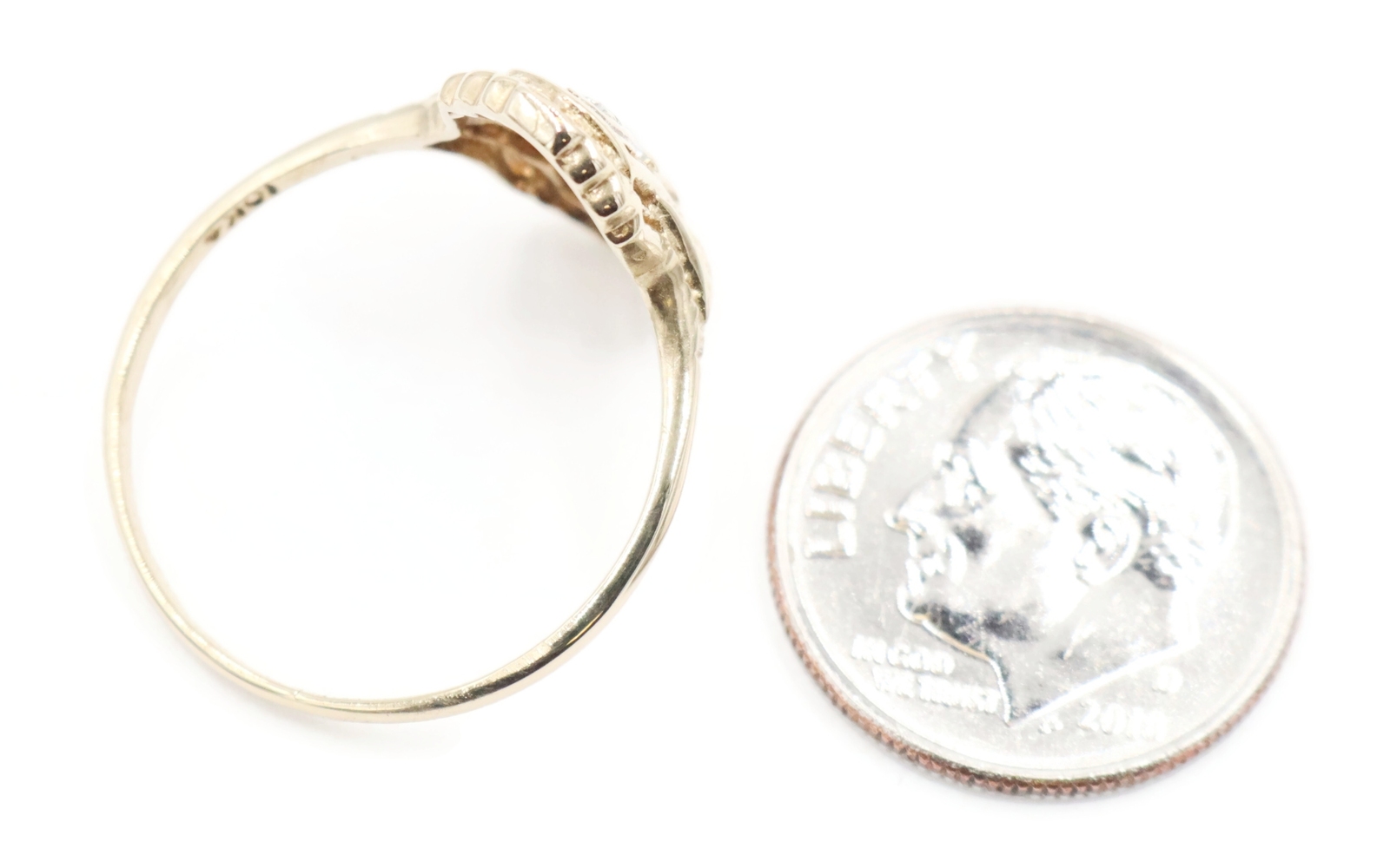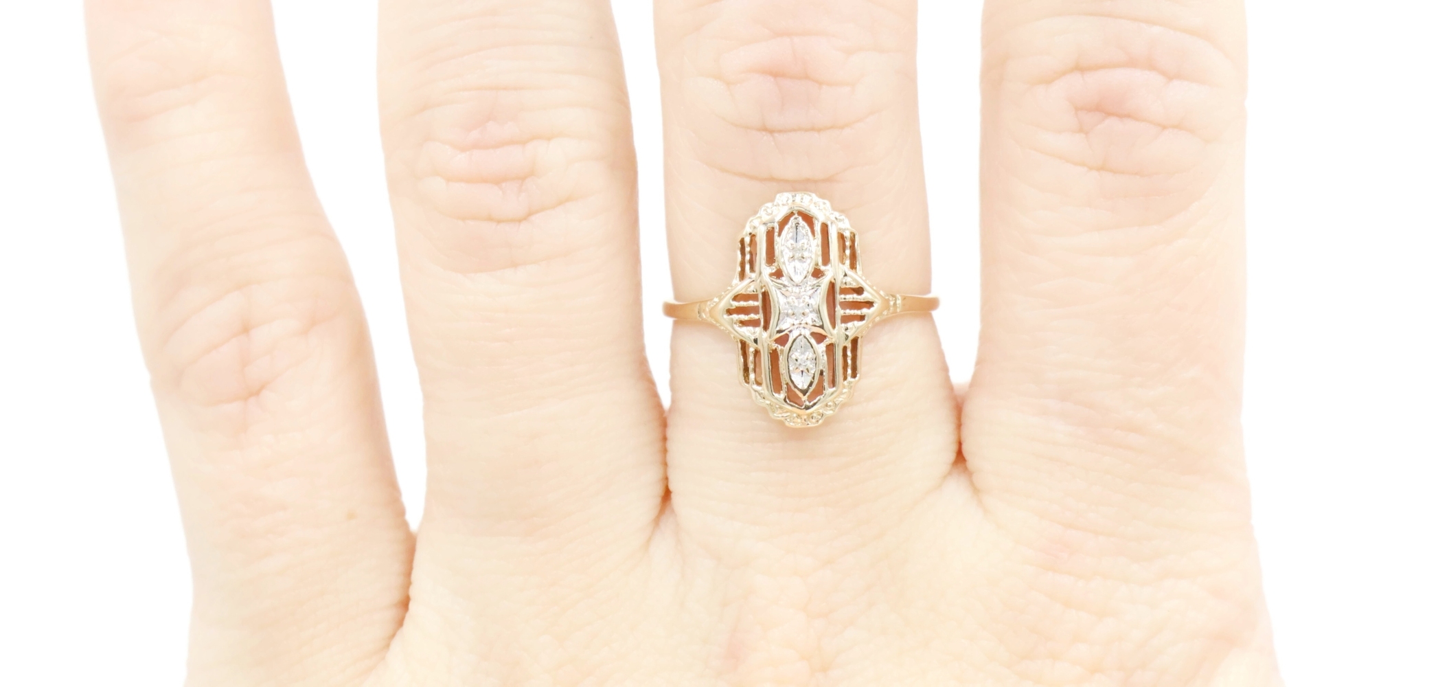 Vintage-Style 0.02 Ctw Single Cut Diamond 10KT Gold Shield Ring by Star Craft | USA Pawn