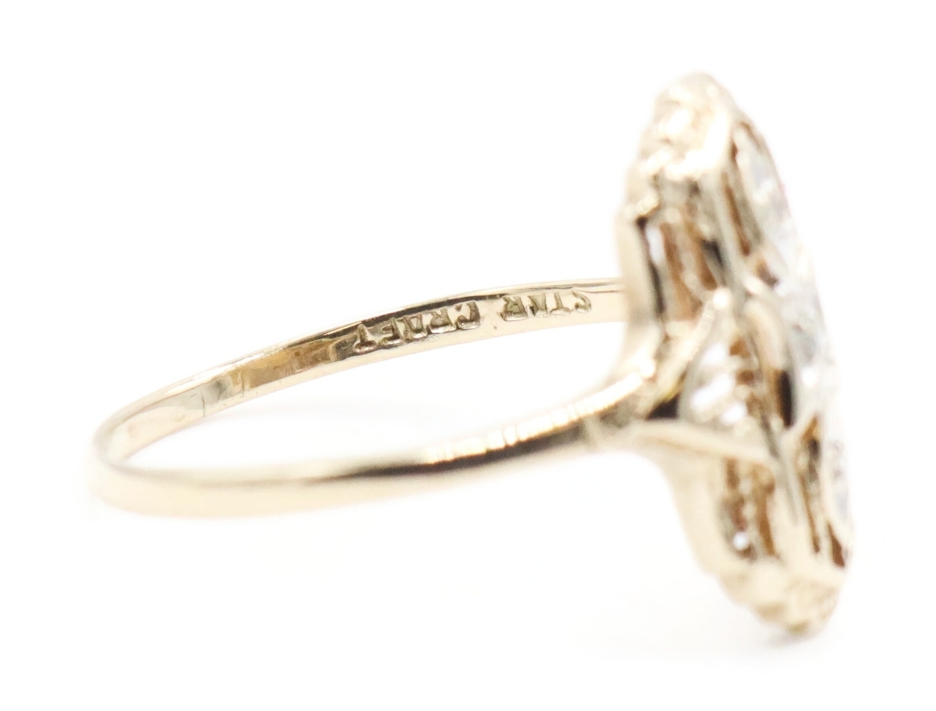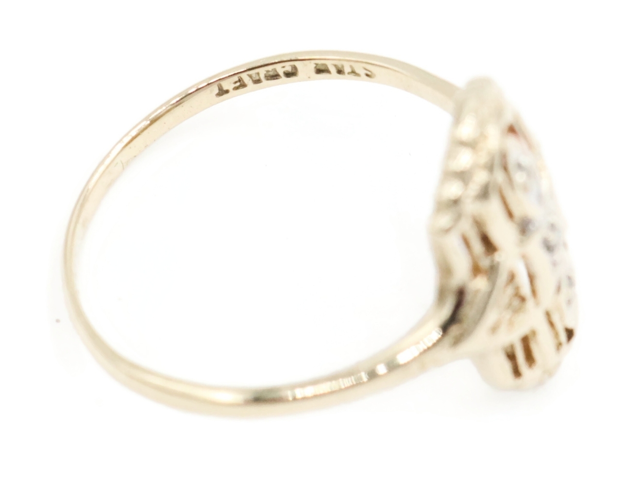Vintage-Style 0.02 Ctw Single Cut Diamond 10KT Gold Shield Ring by Star Craft. This ring is a size 7 3/4.