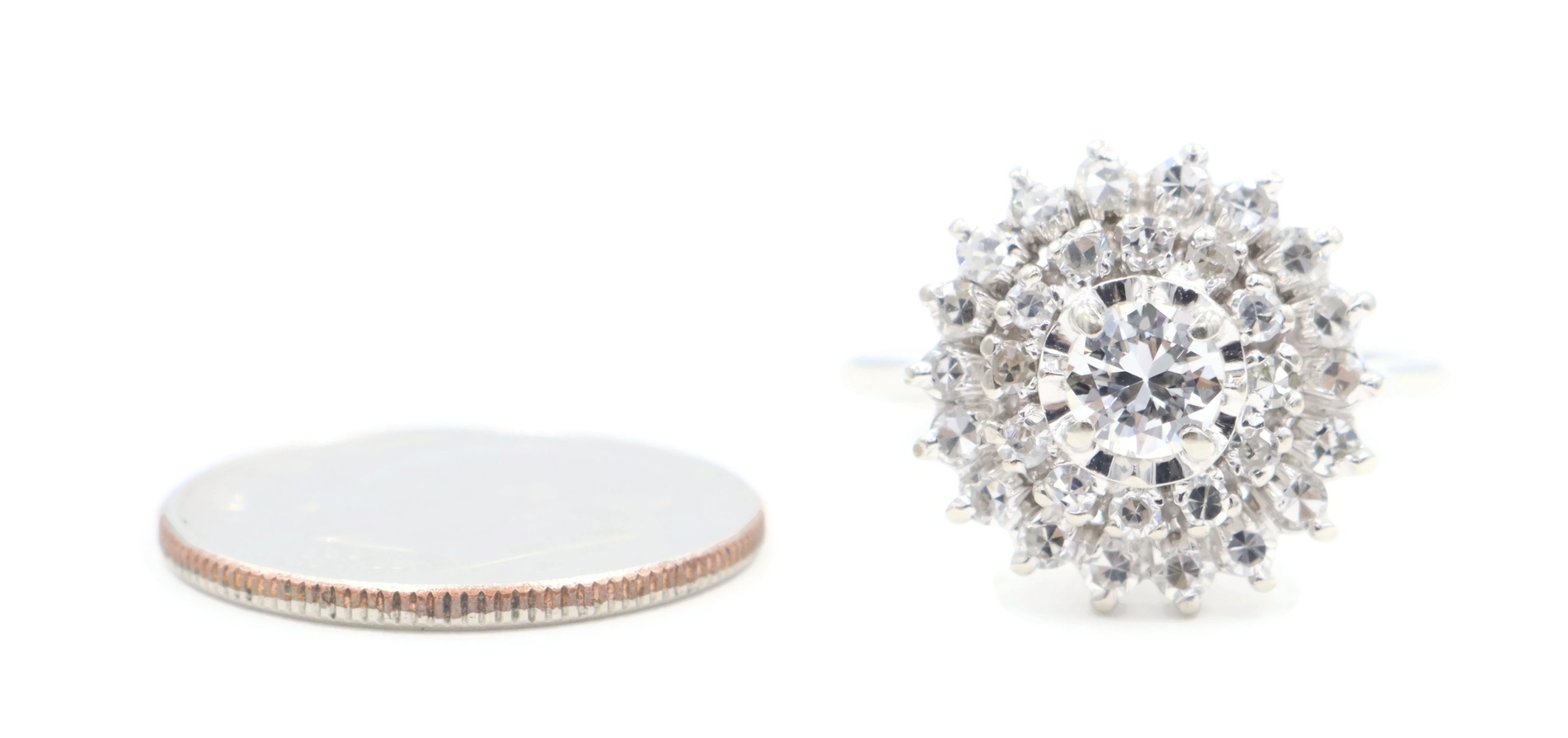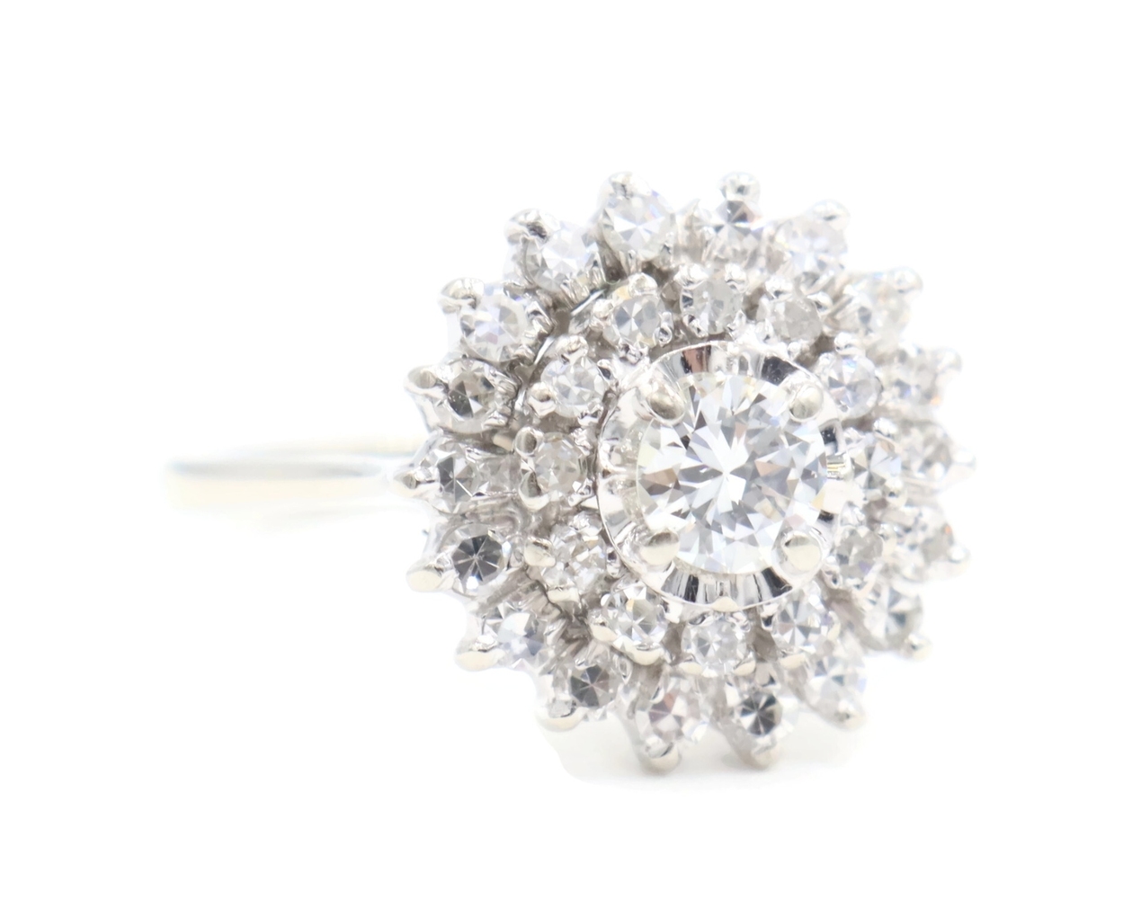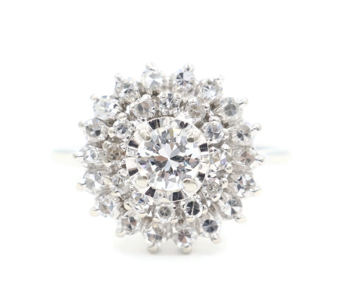 Vintage-Style 1.04 Ctw Round Diamond 14KT White Gold Illusion Cluster Ring 3.45g. This ring is a size 5 7/8.