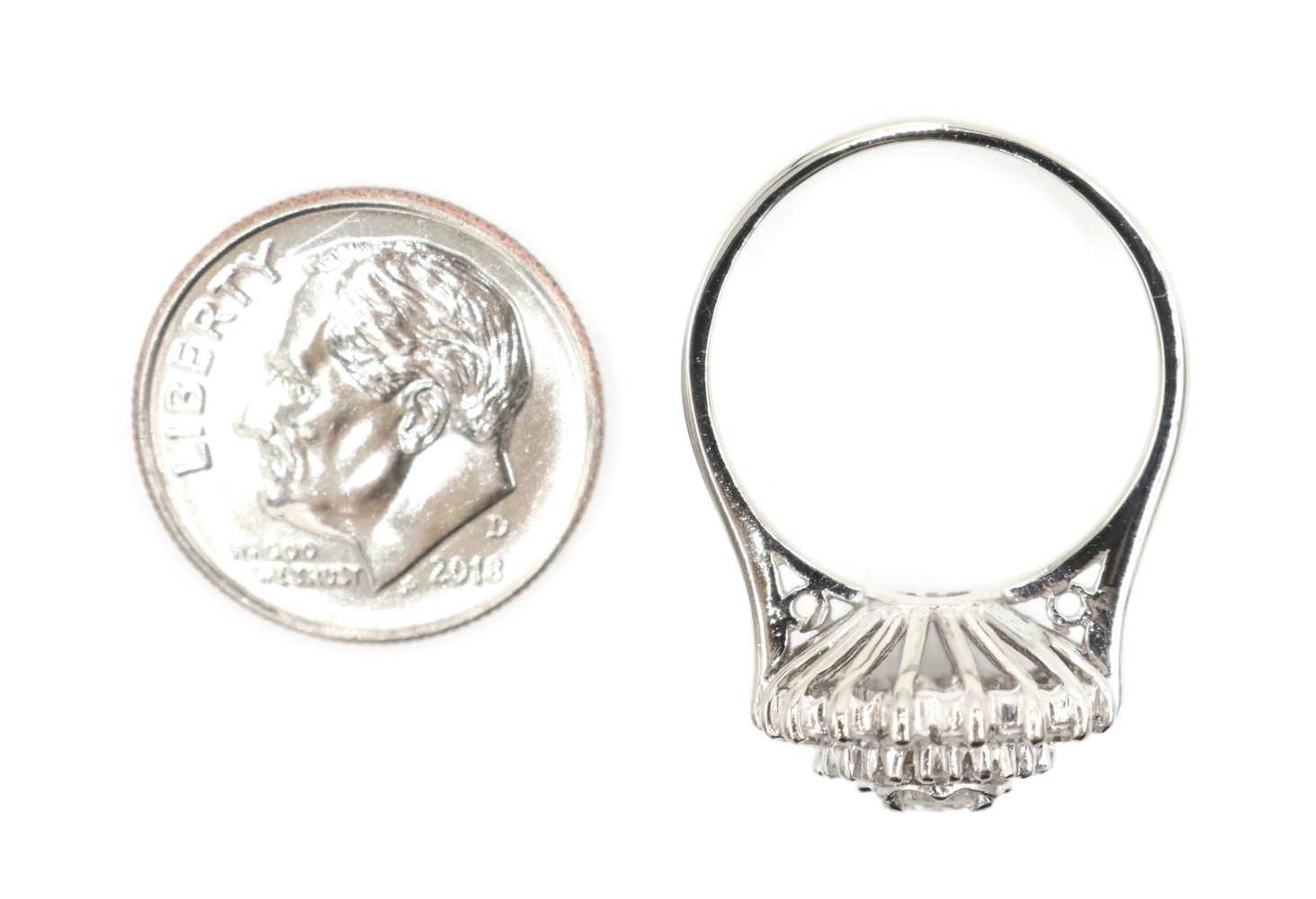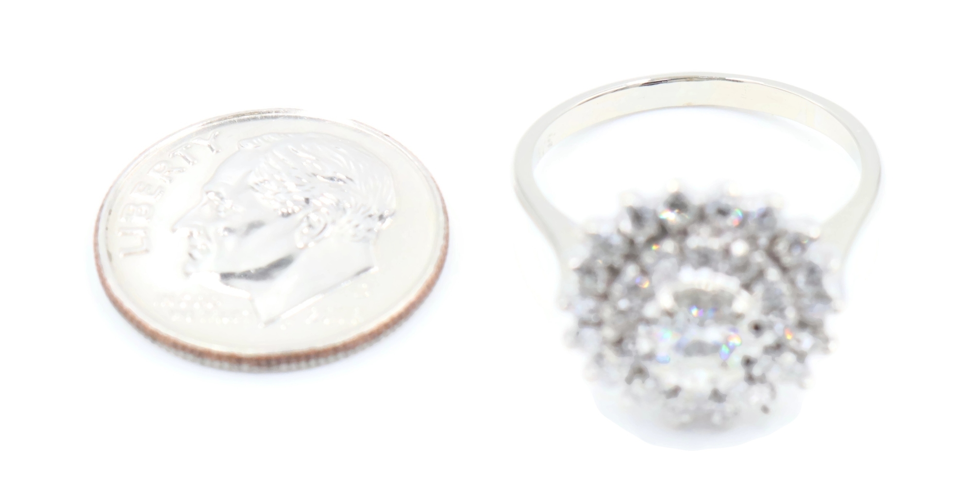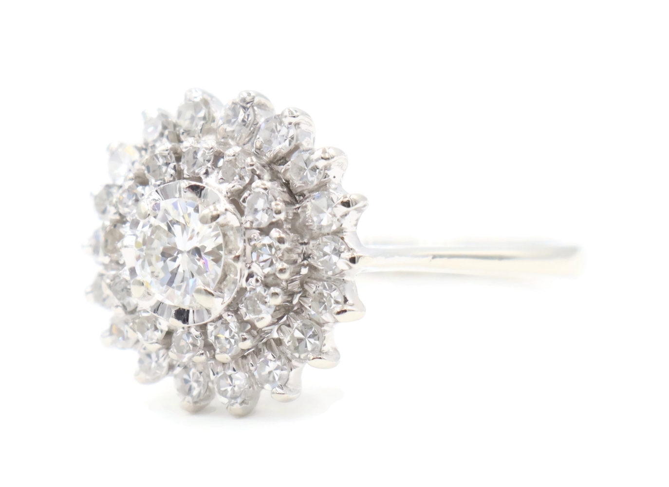 Vintage-Style 1.04 Ctw Round Diamond 14KT White Gold Illusion Cluster Ring 3.45g. This ring is a size 5 7/8.
