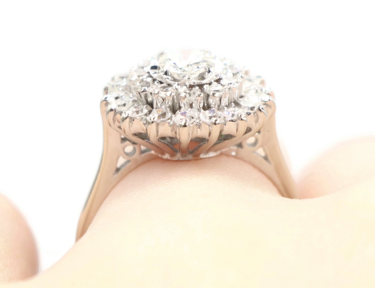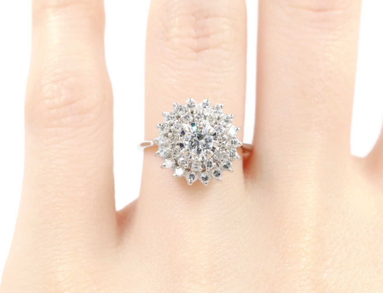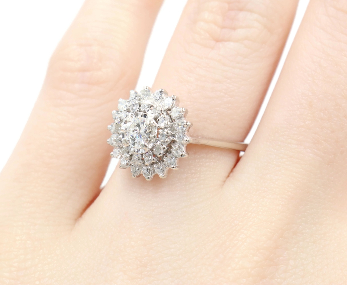 Vintage-Style 1.04 Ctw Round Diamond 14KT White Gold Illusion Cluster Ring 3.45g | USA Pawn