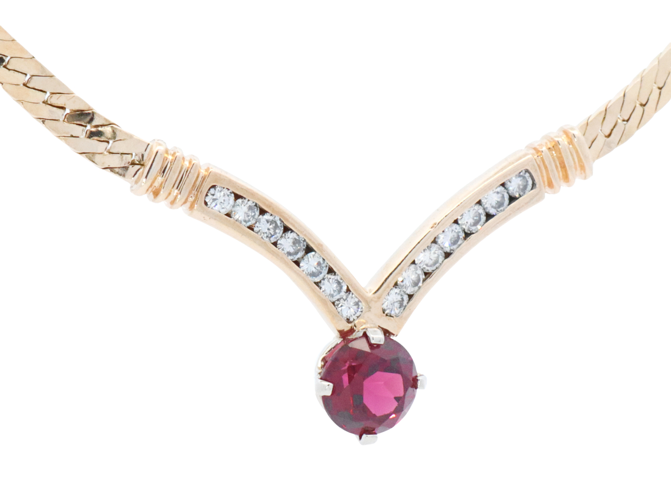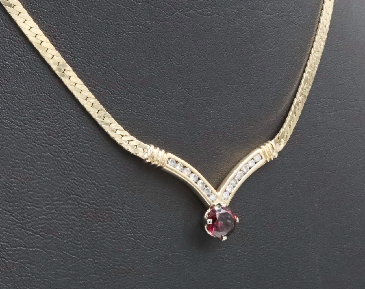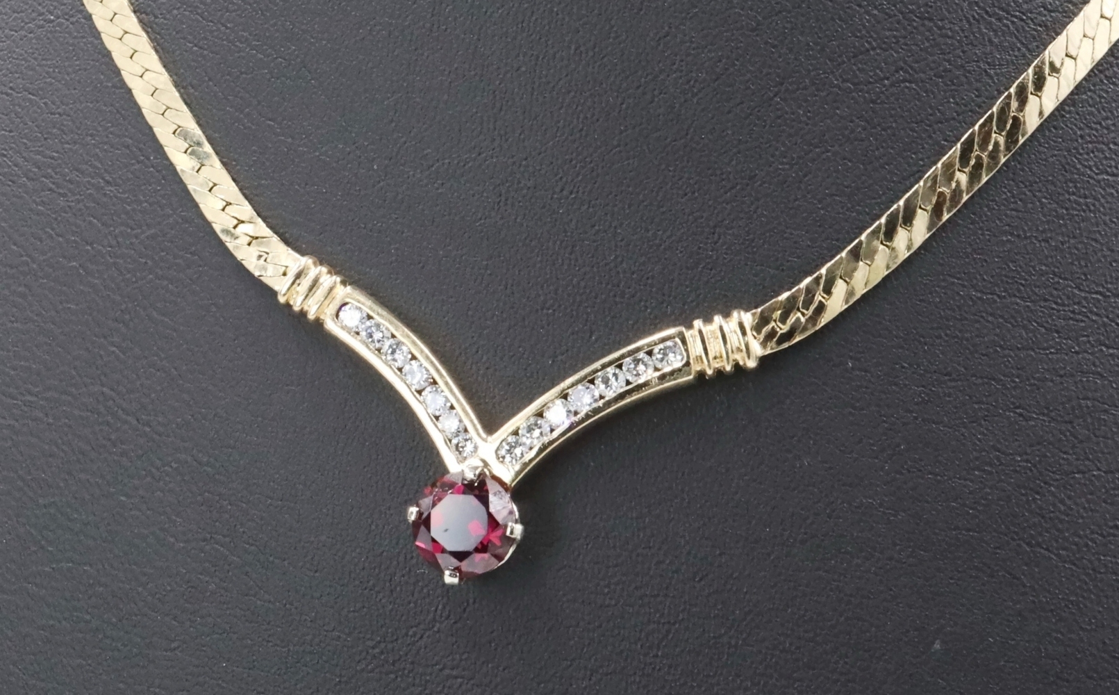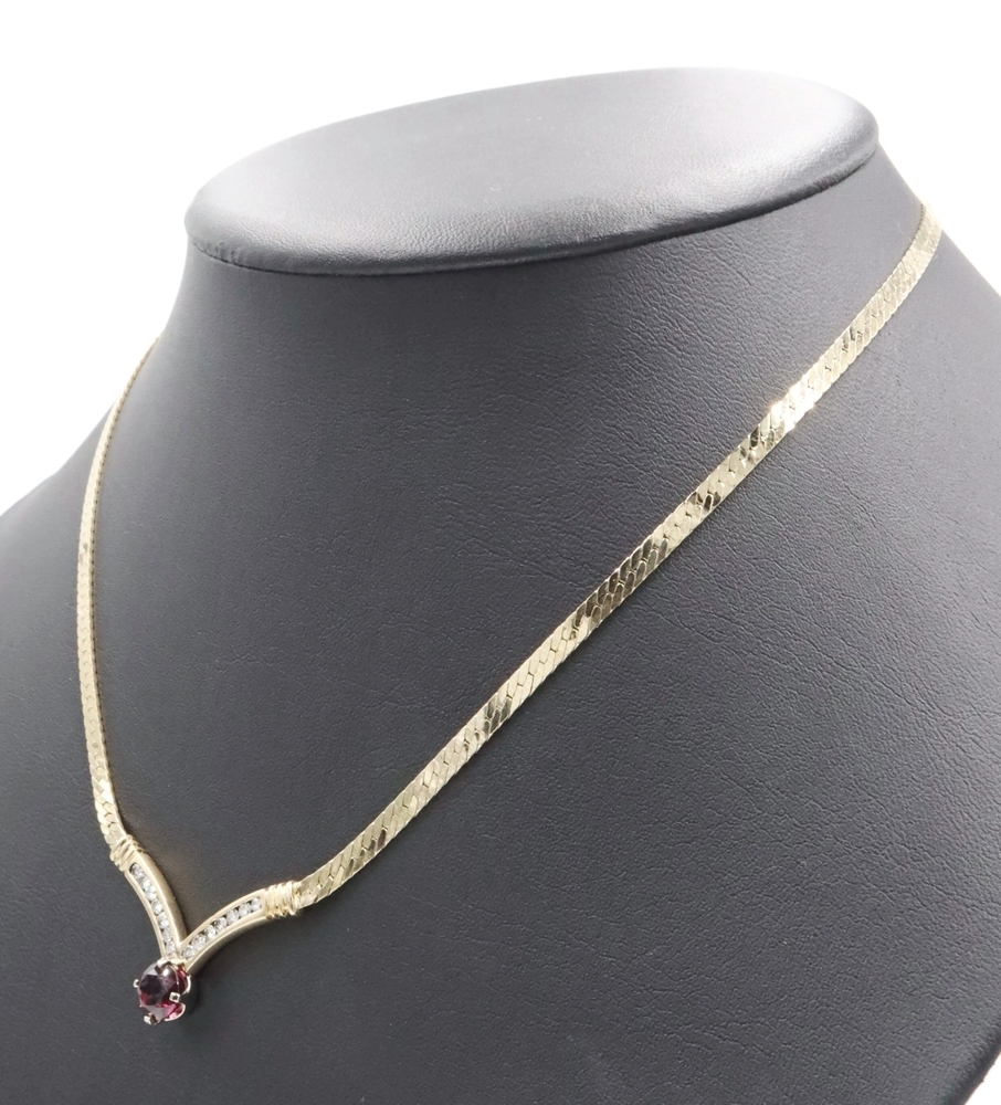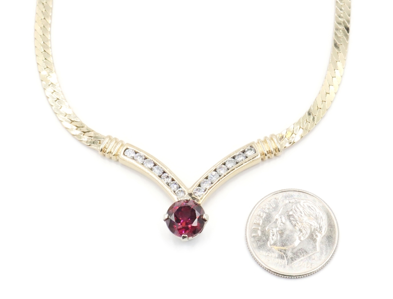 V-Style 2.20 Ct Round Garnet & Diamond 14KT Yellow Gold Herringbone Necklace 18" | USA Pawn