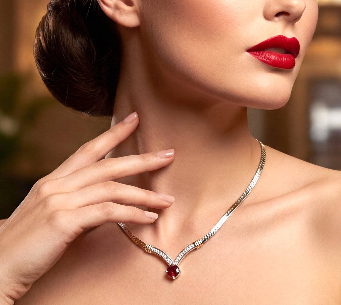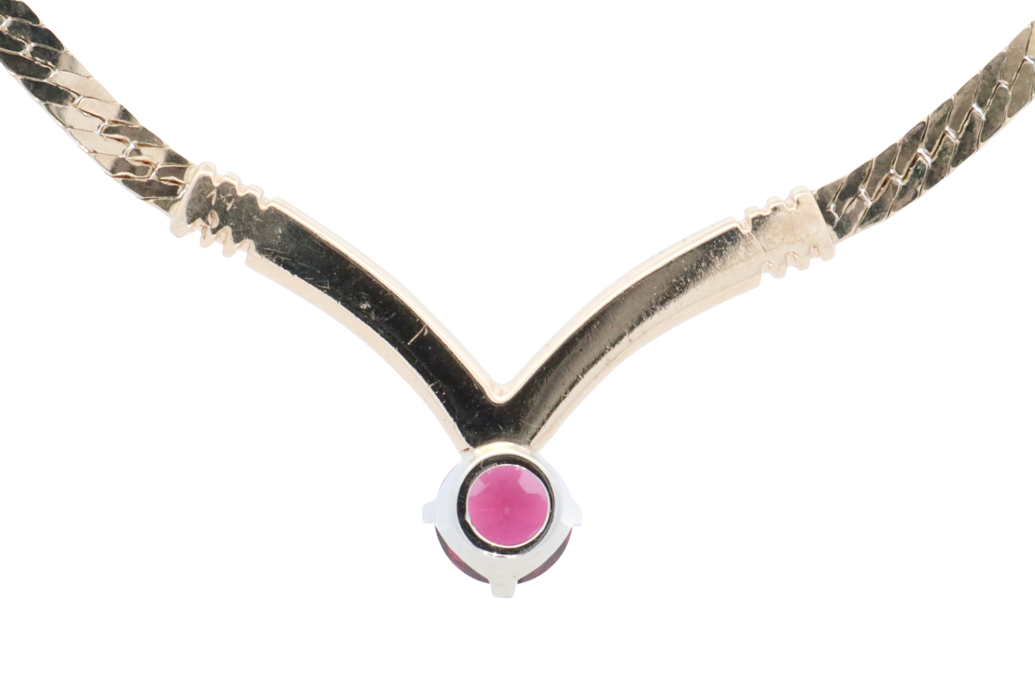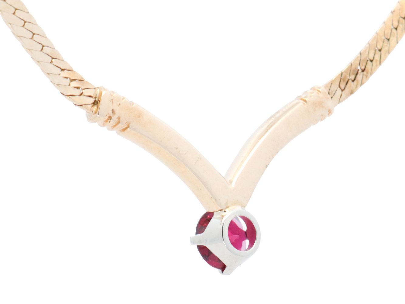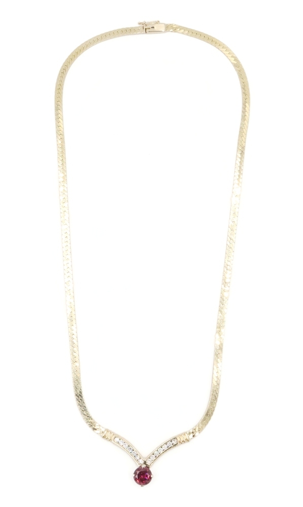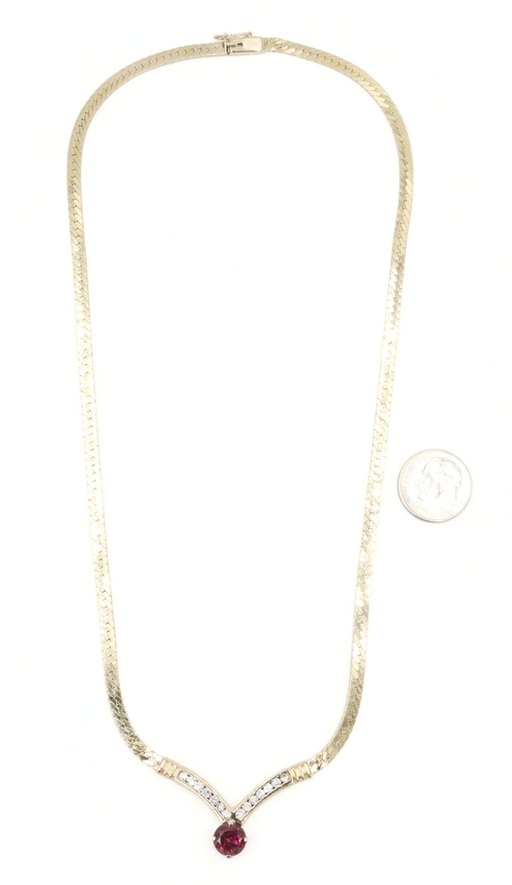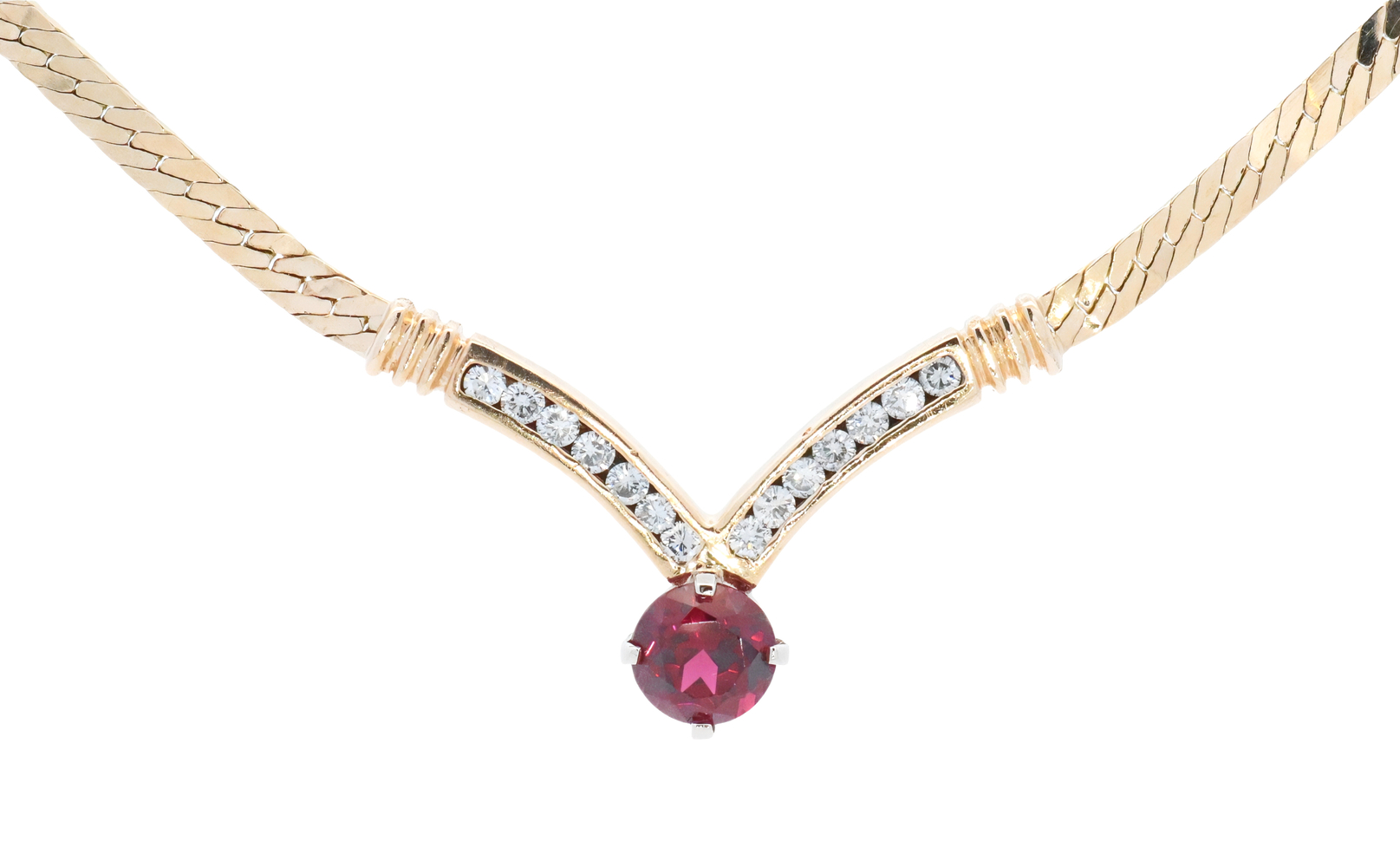 V-Style 2.20 Ct Round Garnet & Diamond 14KT Yellow Gold Herringbone Necklace 18" | USA Pawn