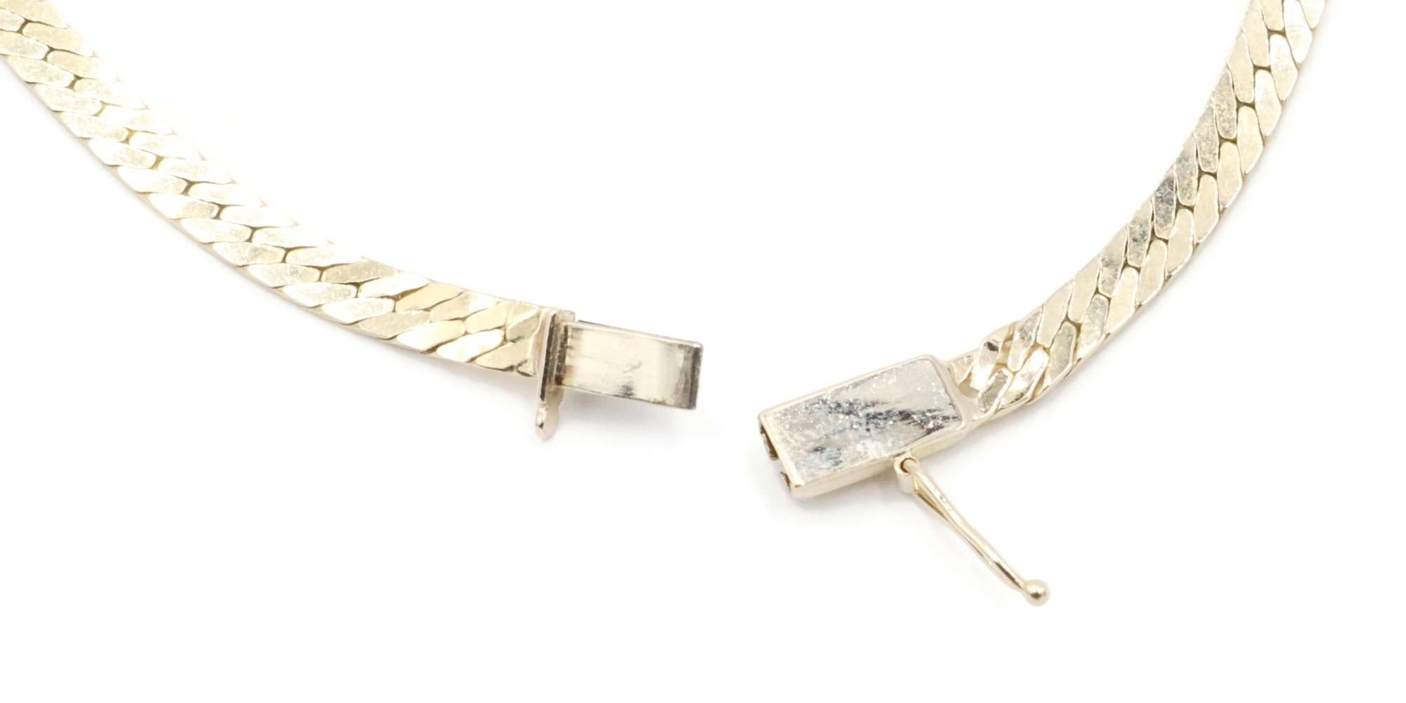 V-Style 2.20 Ct Round Garnet & Diamond 14KT Yellow Gold Herringbone Necklace 18". This necklace has an approximate wearable length of 18 inches.
