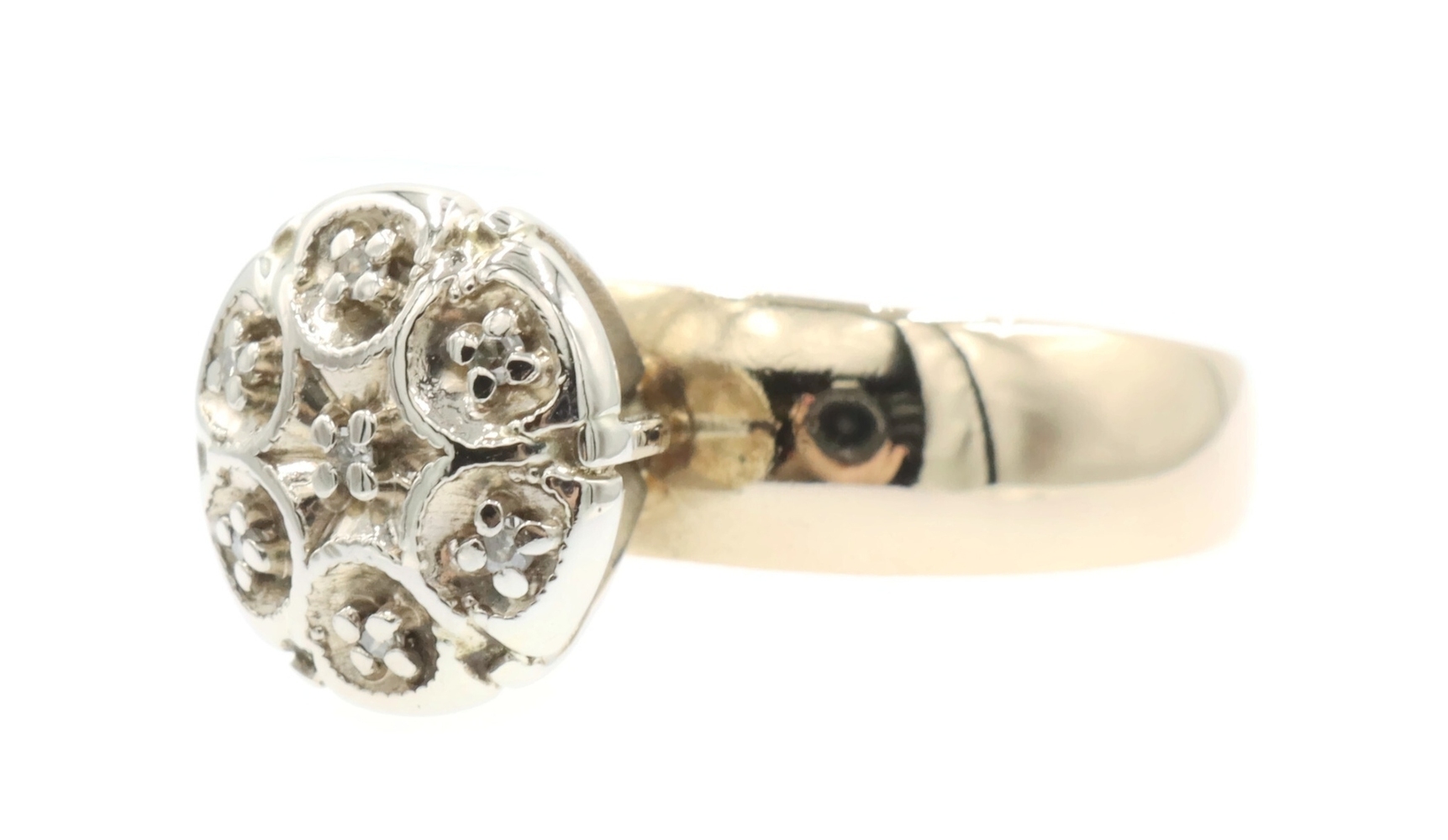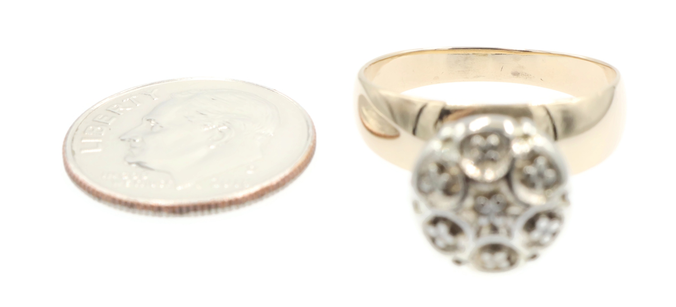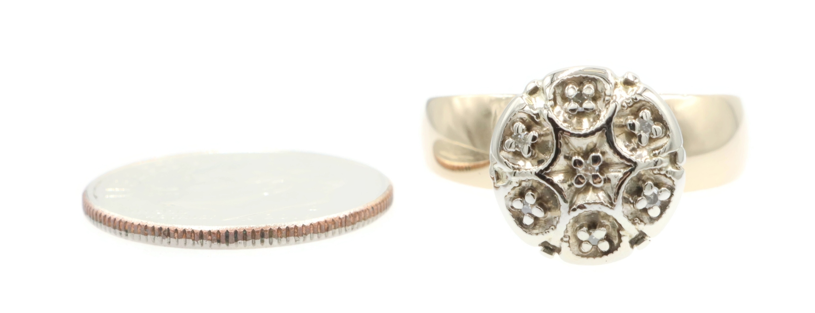 Women's 0.07 Ctw Single Cut Diamond Flower Cluster 10KT Yellow Gold Ring 3.41g. This ring is a size 6.