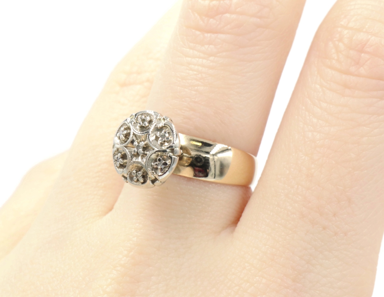 Women's 0.07 Ctw Single Cut Diamond Flower Cluster 10KT Yellow Gold Ring 3.41g | USA Pawn