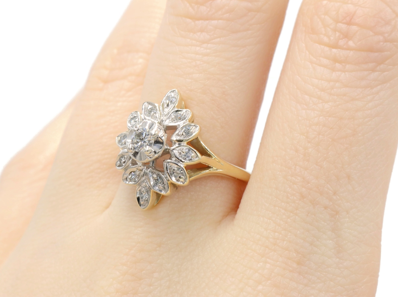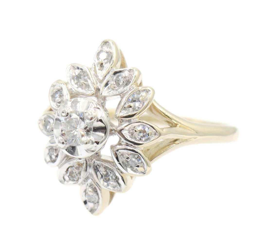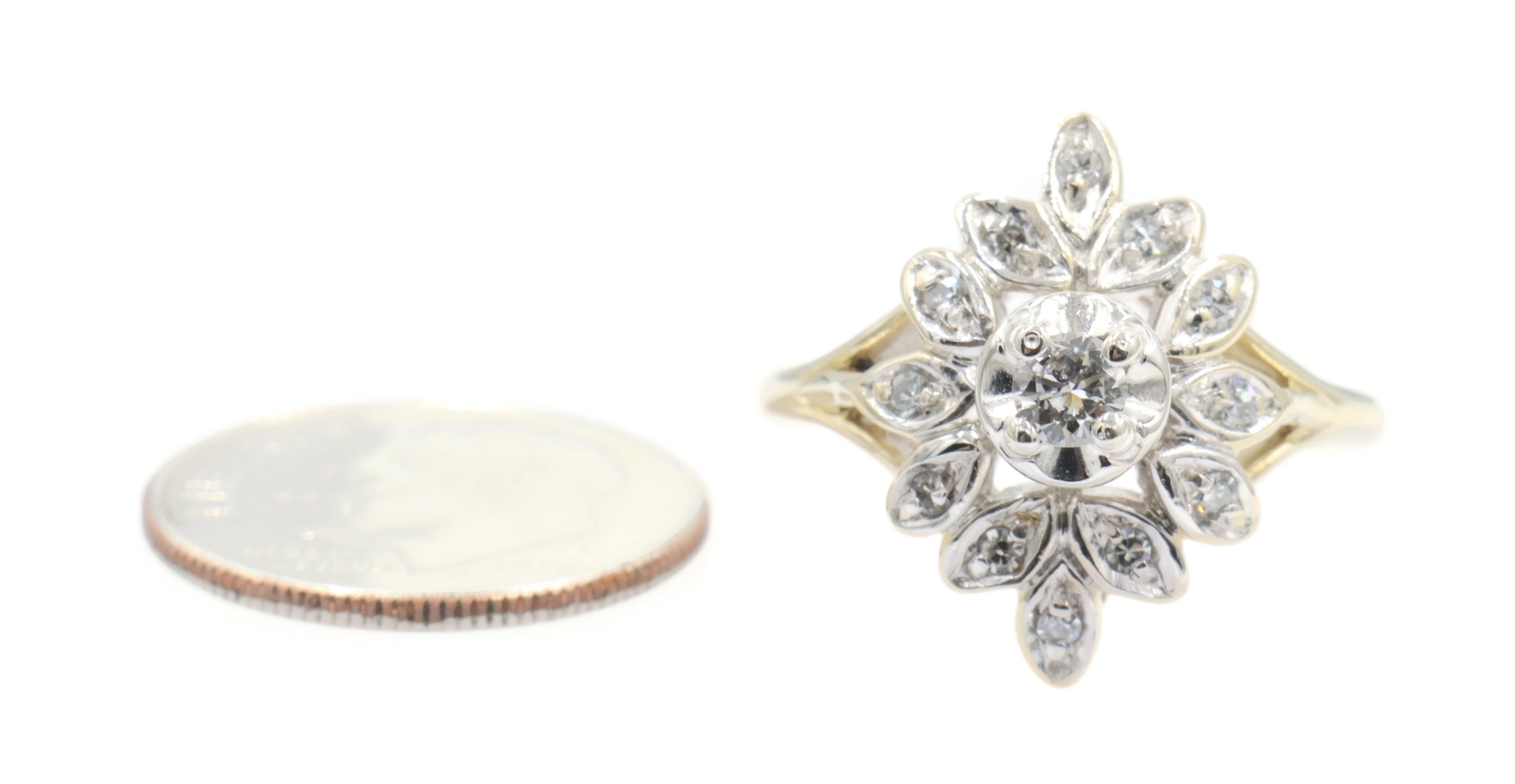 Women's 0.26 Ctw Round Diamond 14KT Yellow Gold Floral Cluster Ring 4.91g FR | USA Pawn