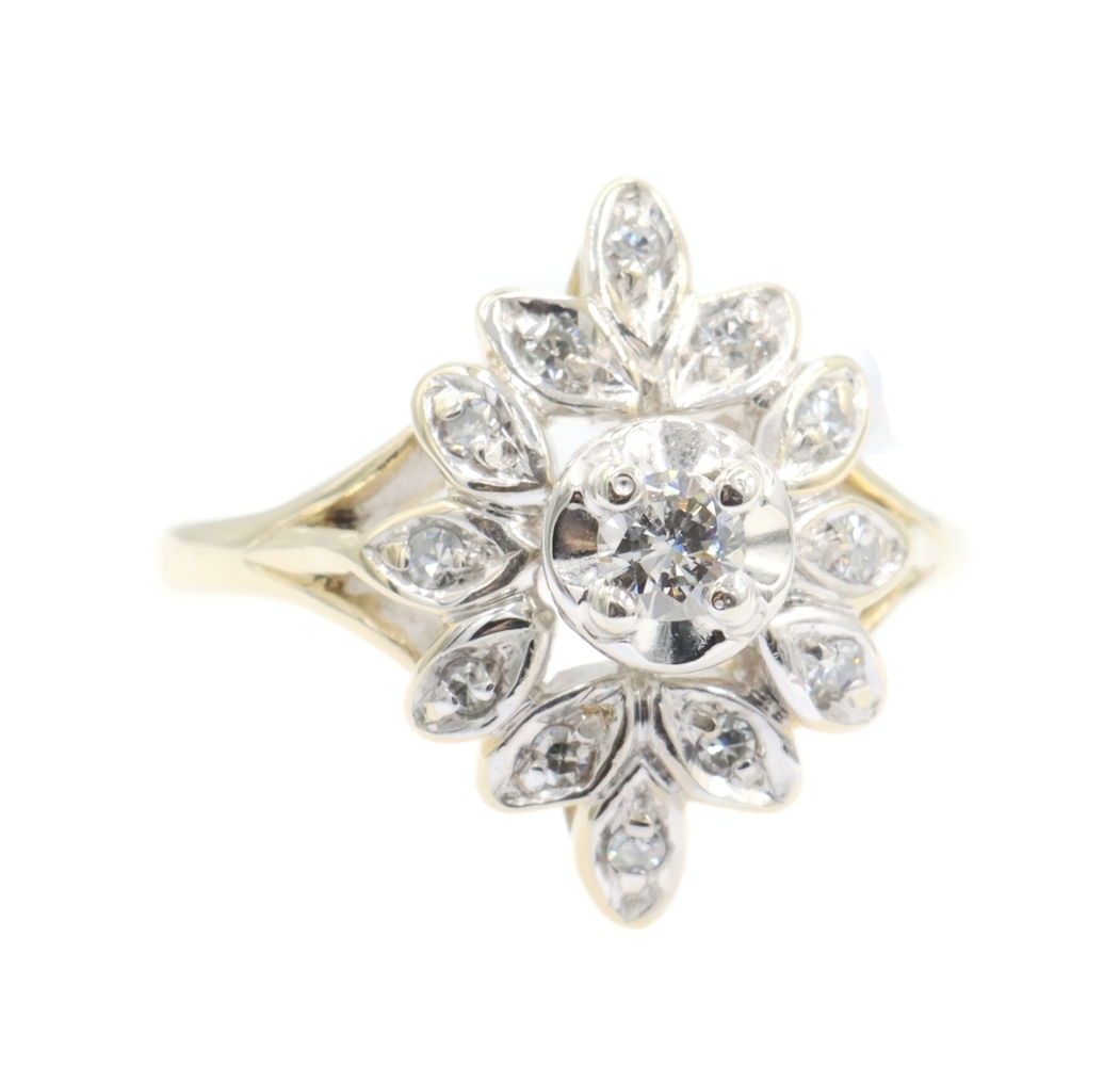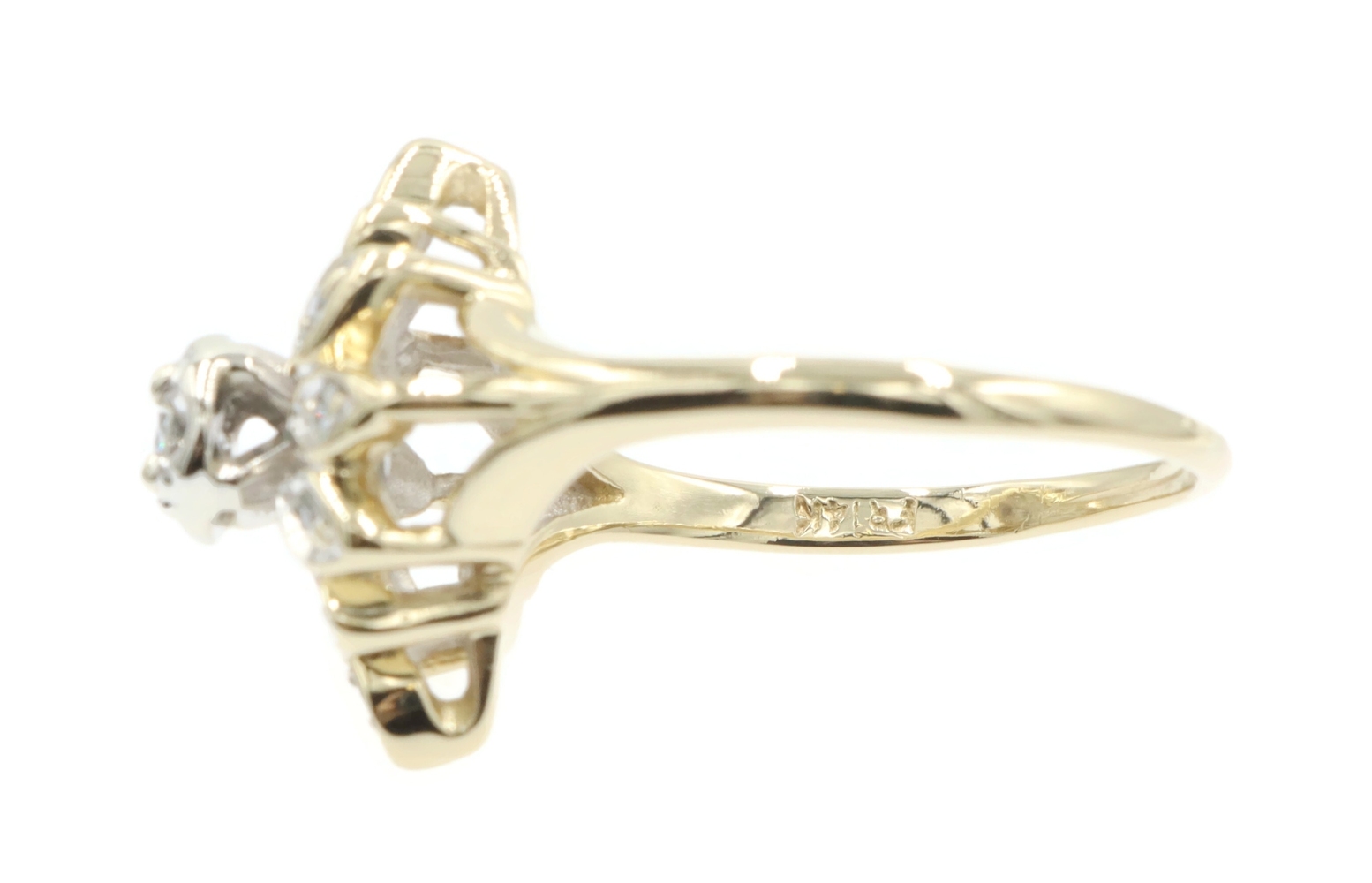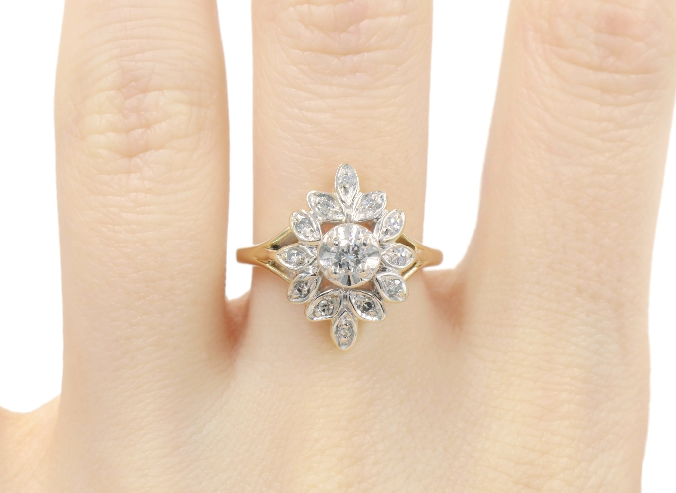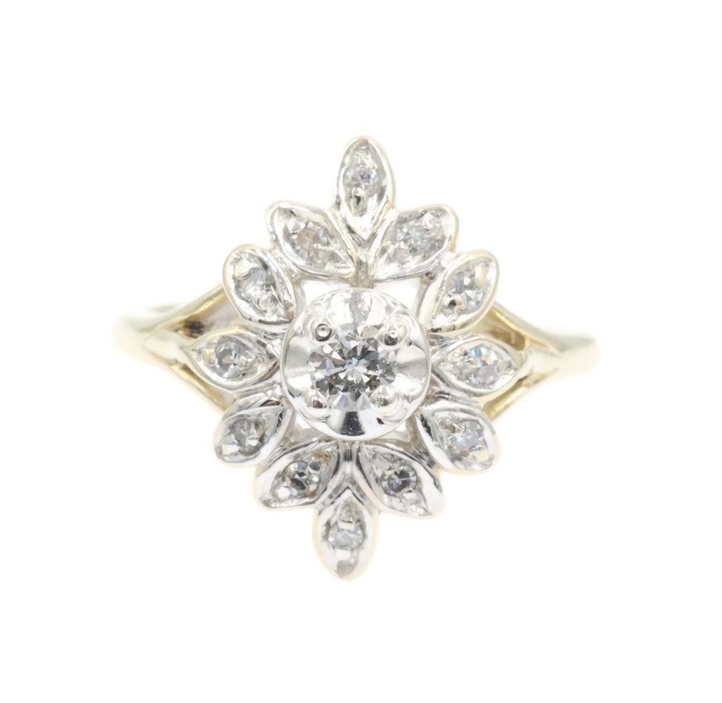 Women's 0.26 Ctw Round Diamond 14KT Yellow Gold Floral Cluster Ring 4.91g FR | USA Pawn