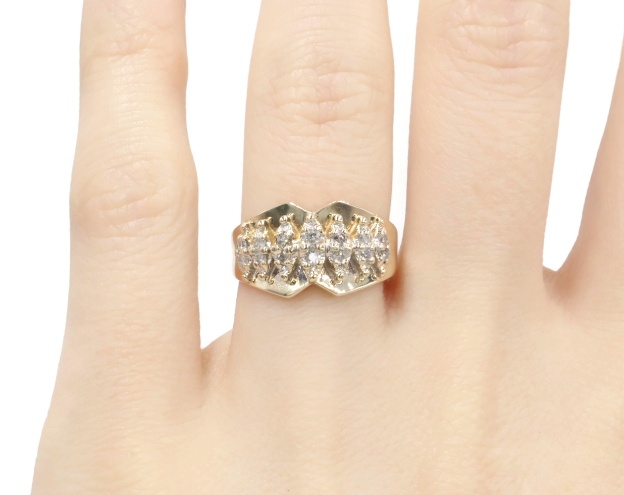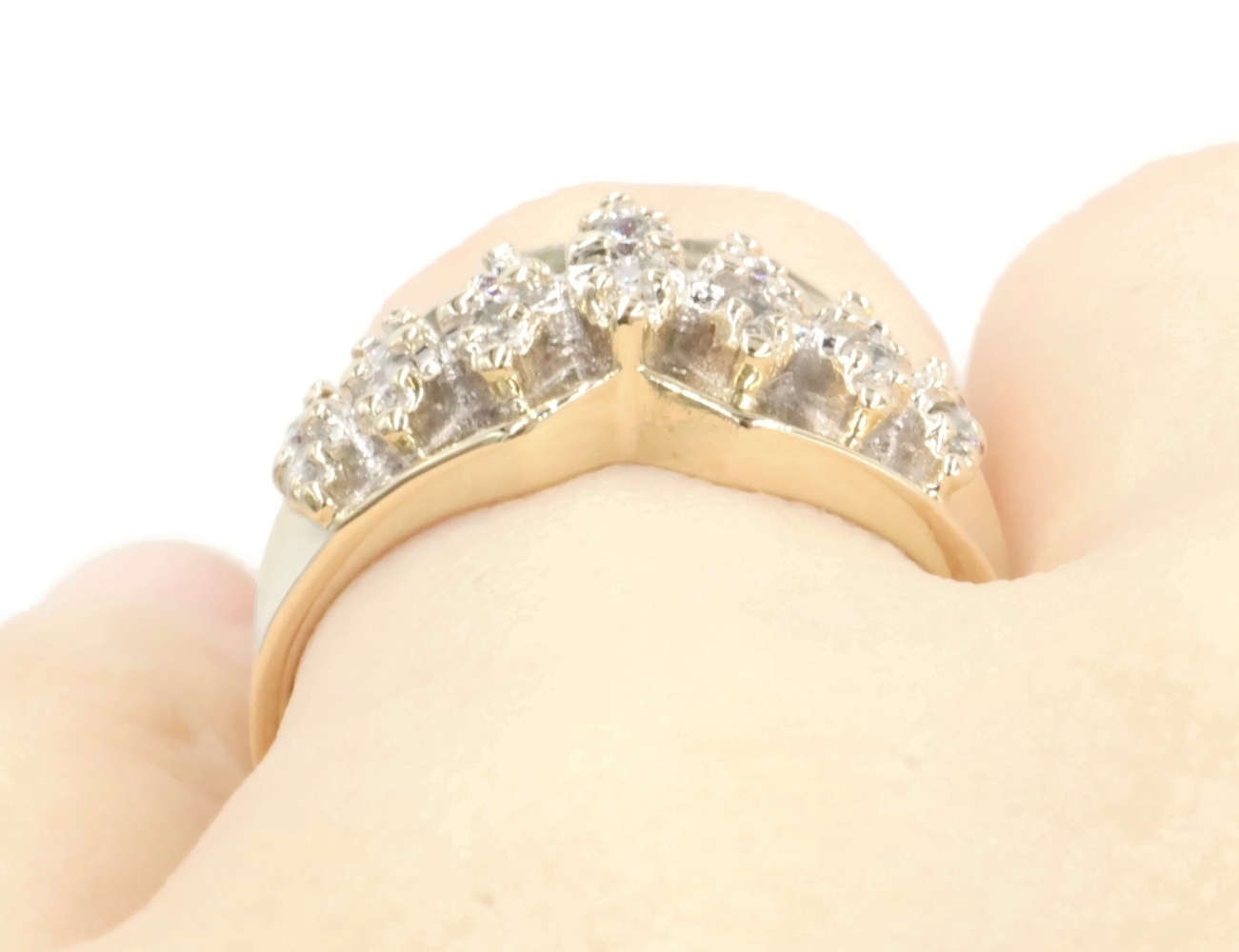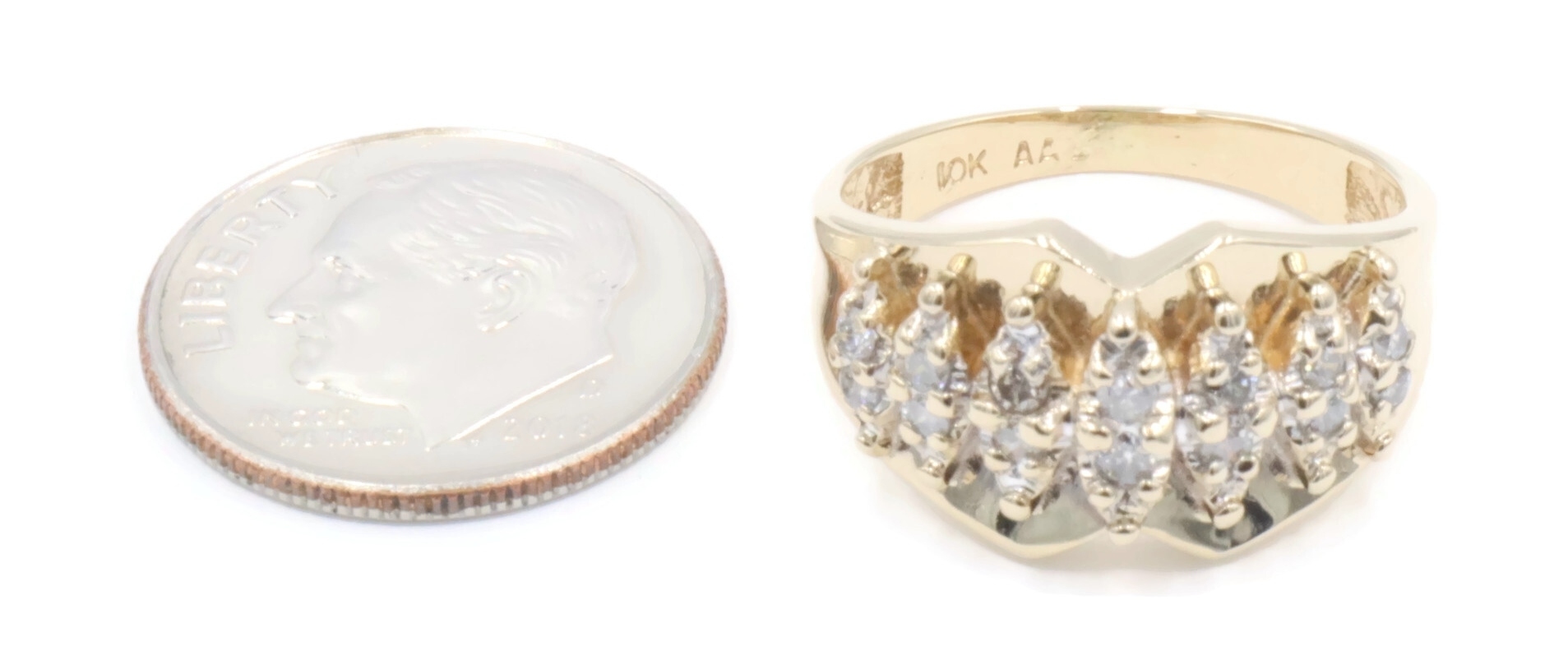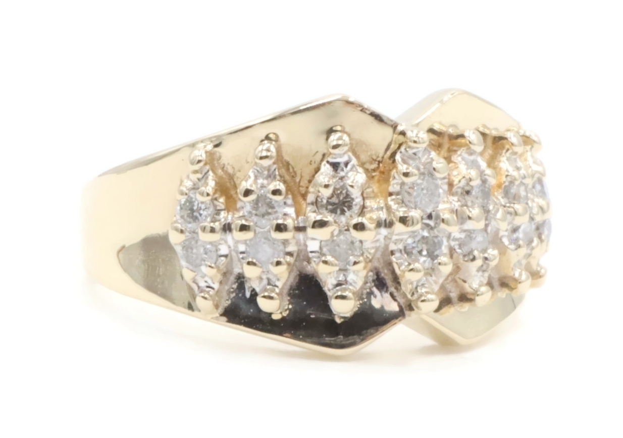 Women's 0.30 Ctw Round Diamond 10KT Yellow Gold 2-Row Estate Ring AA - 3.47g | USA Pawn