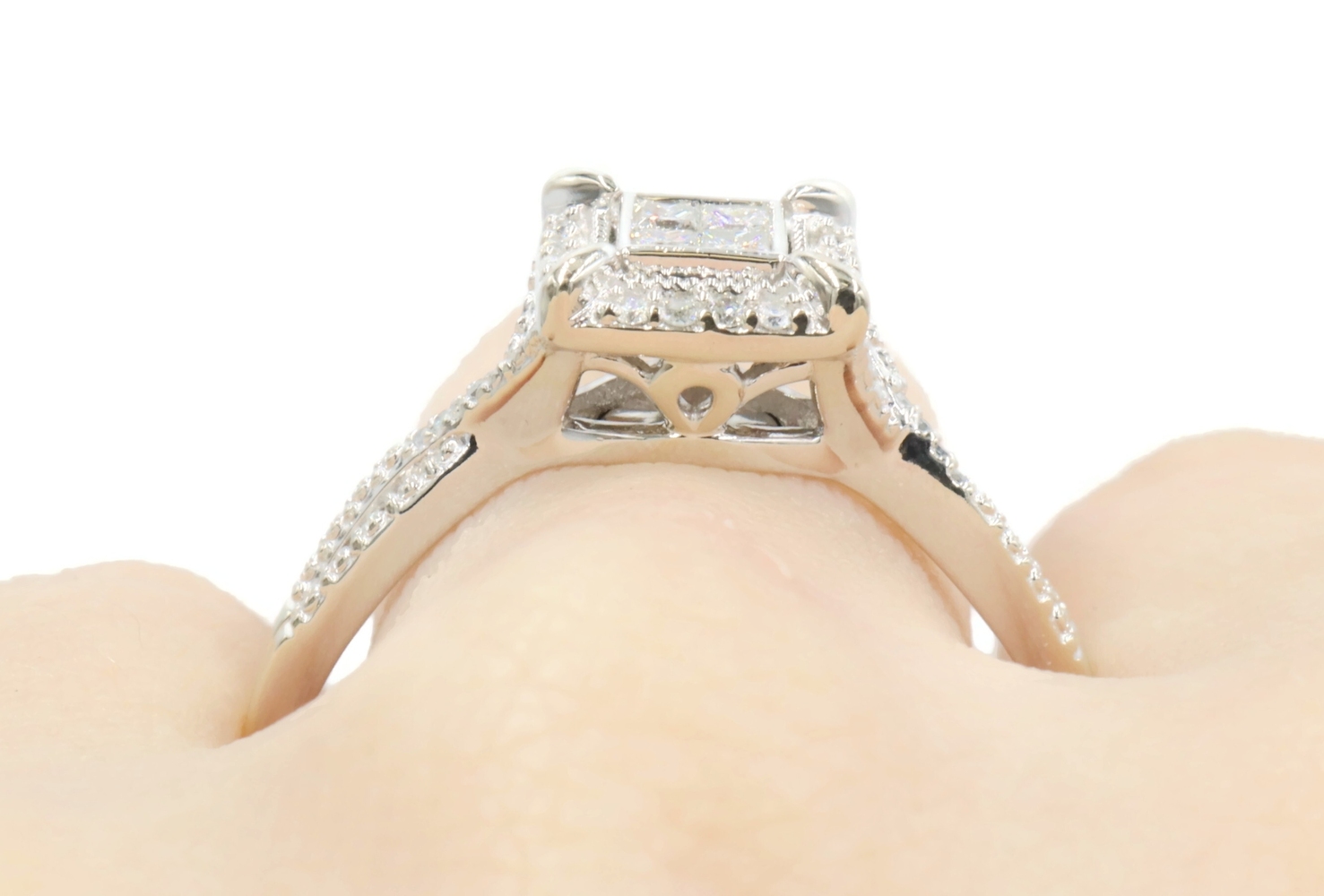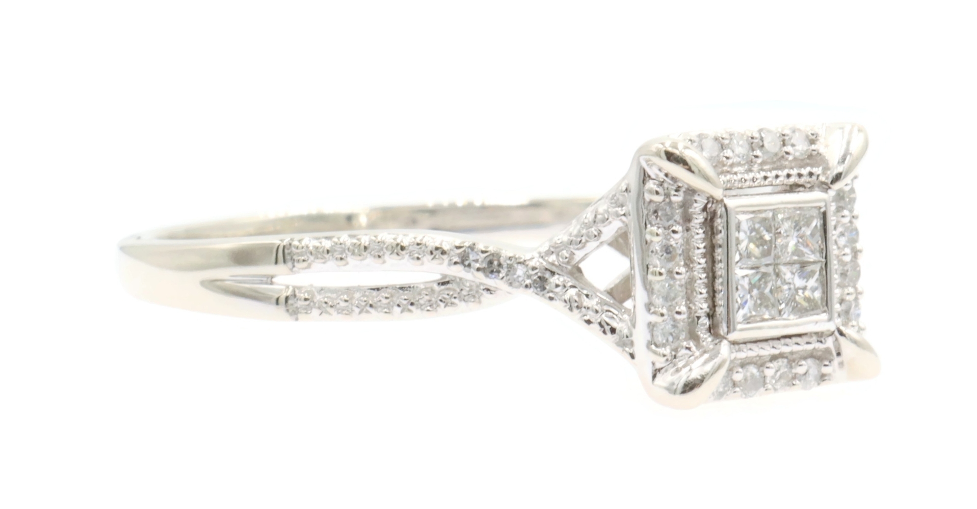 Women's 0.32 Ctw Princess & Round Diamond 10KT White Gold Square Halo Ring 3.5g. This ring is a size 12.