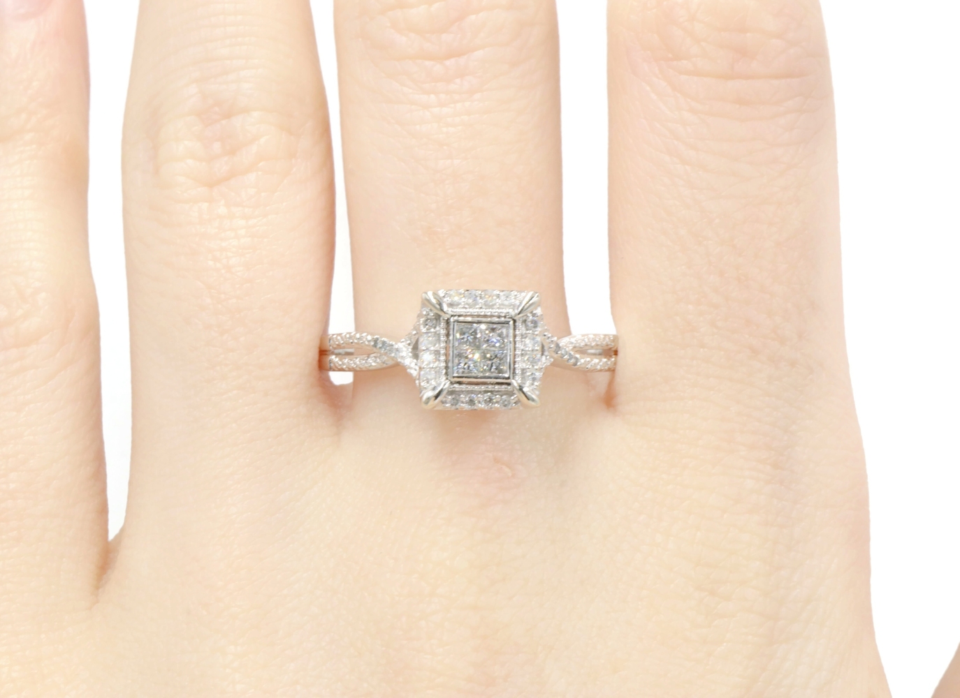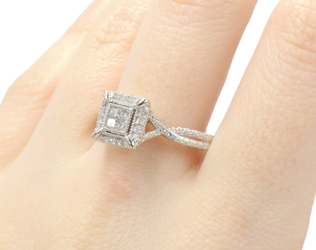 Women's 0.32 Ctw Princess & Round Diamond 10KT White Gold Square Halo Ring 3.5g | USA Pawn