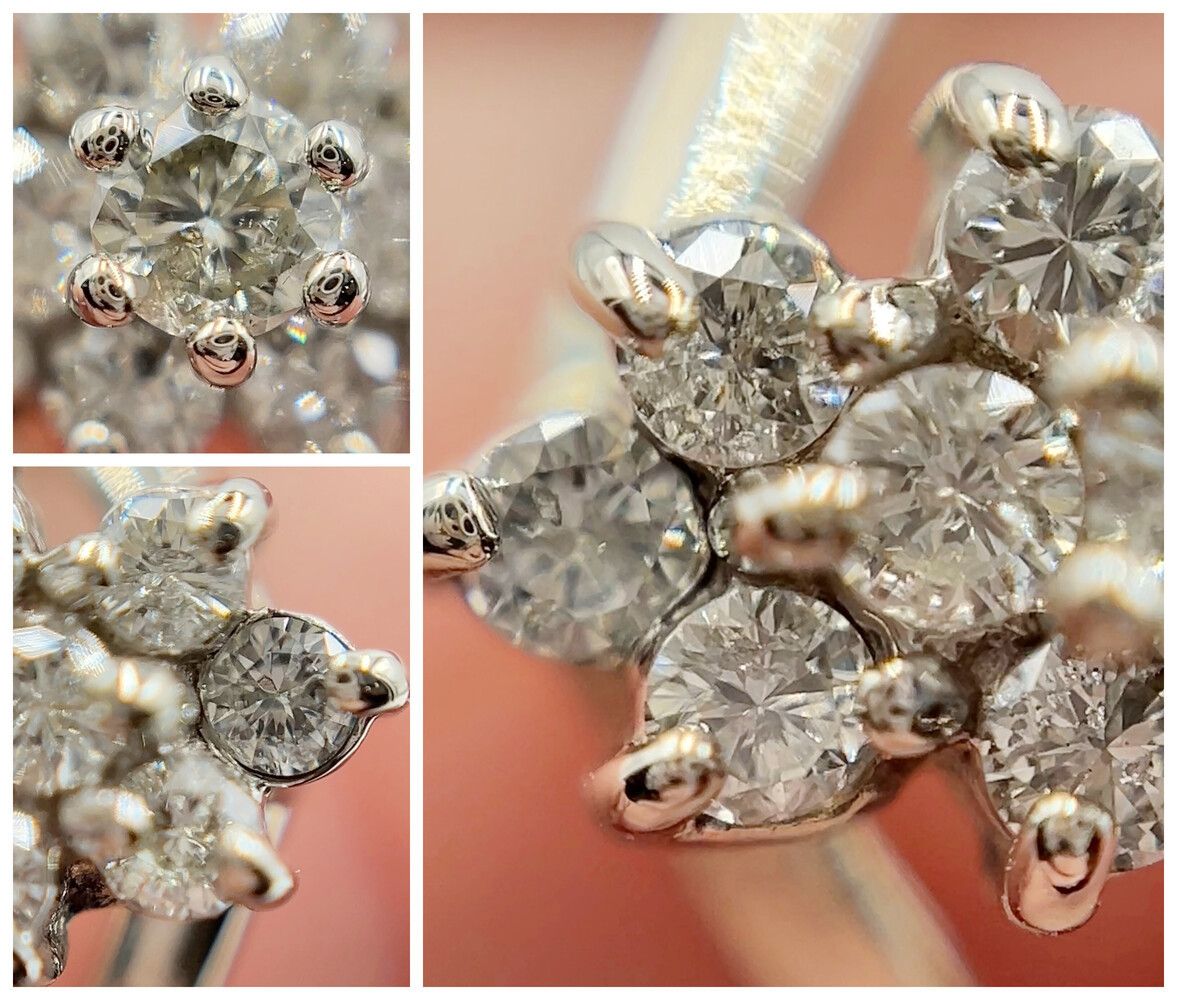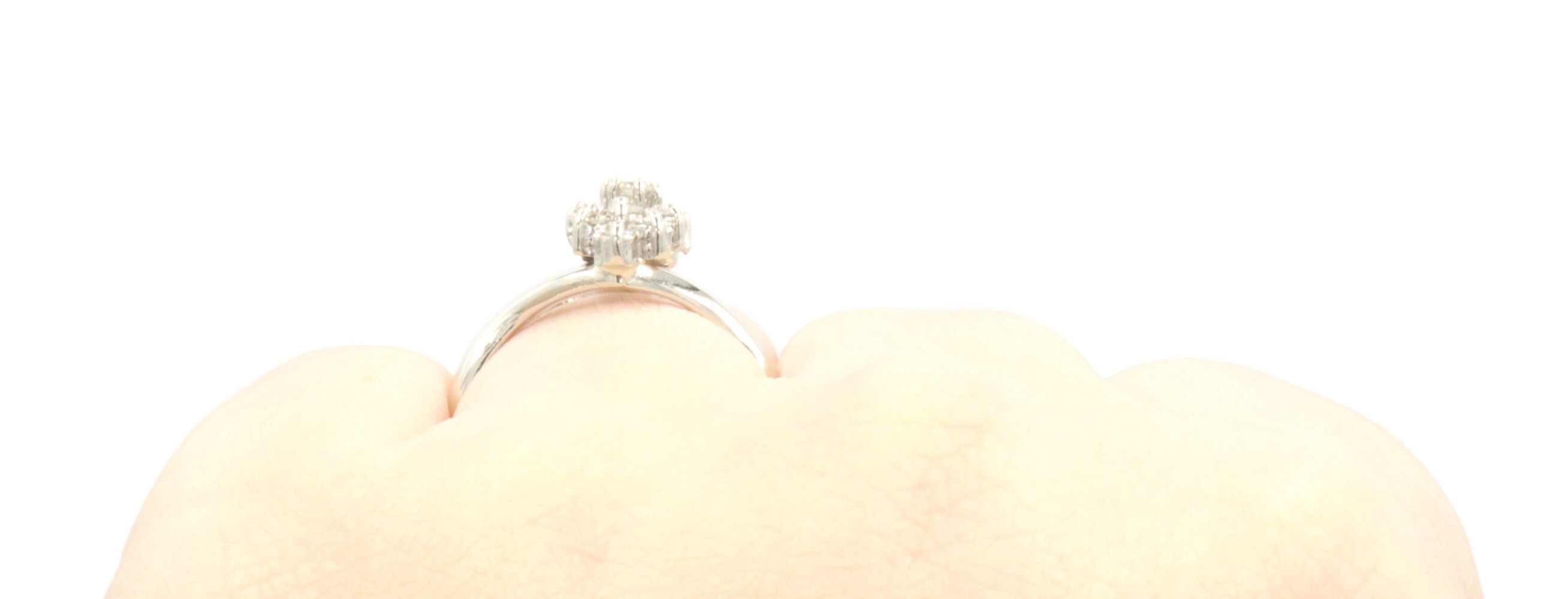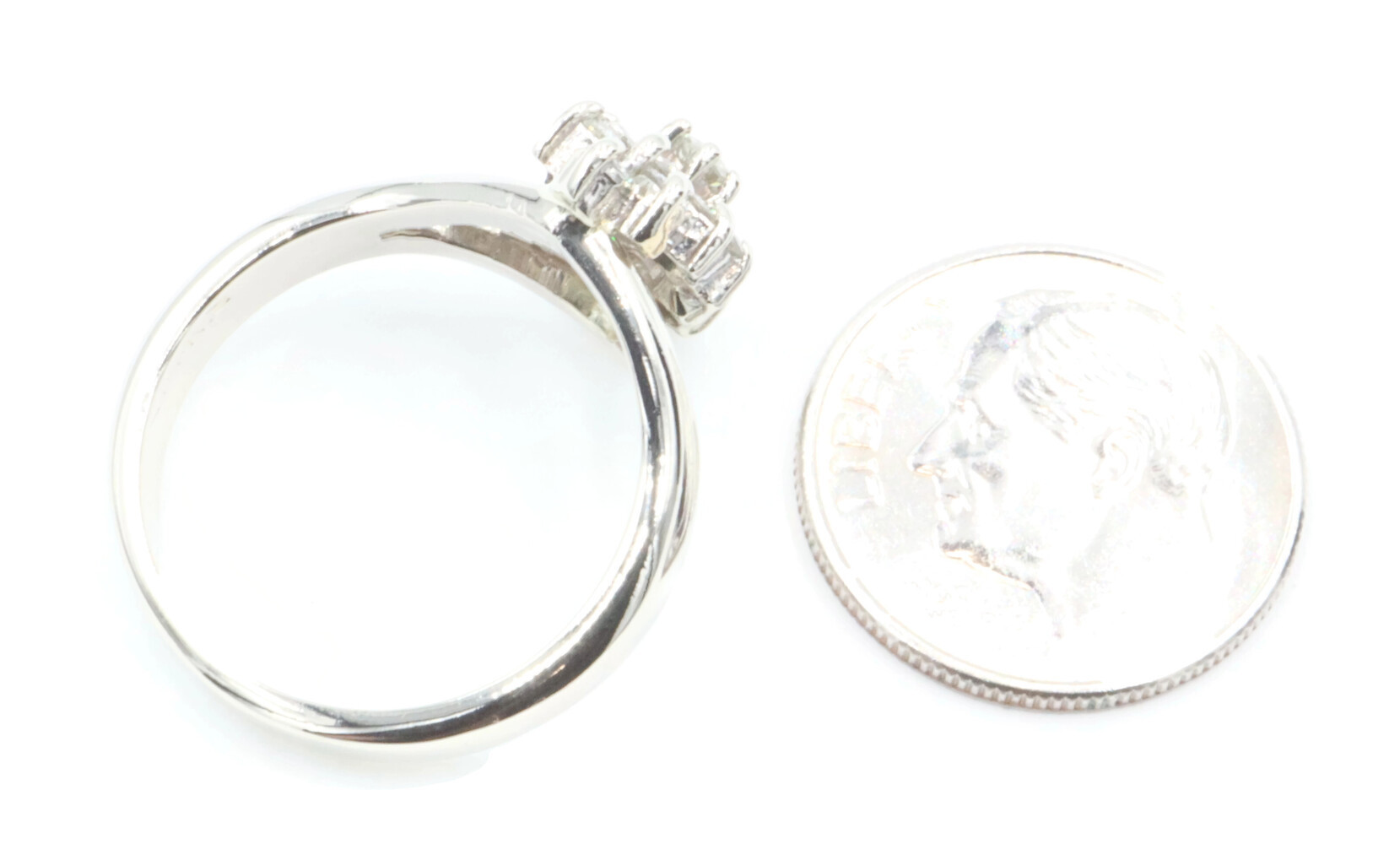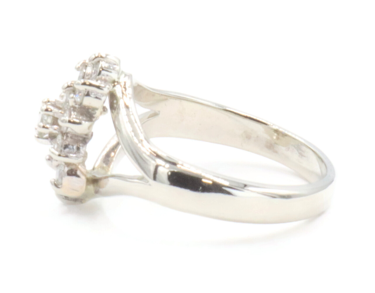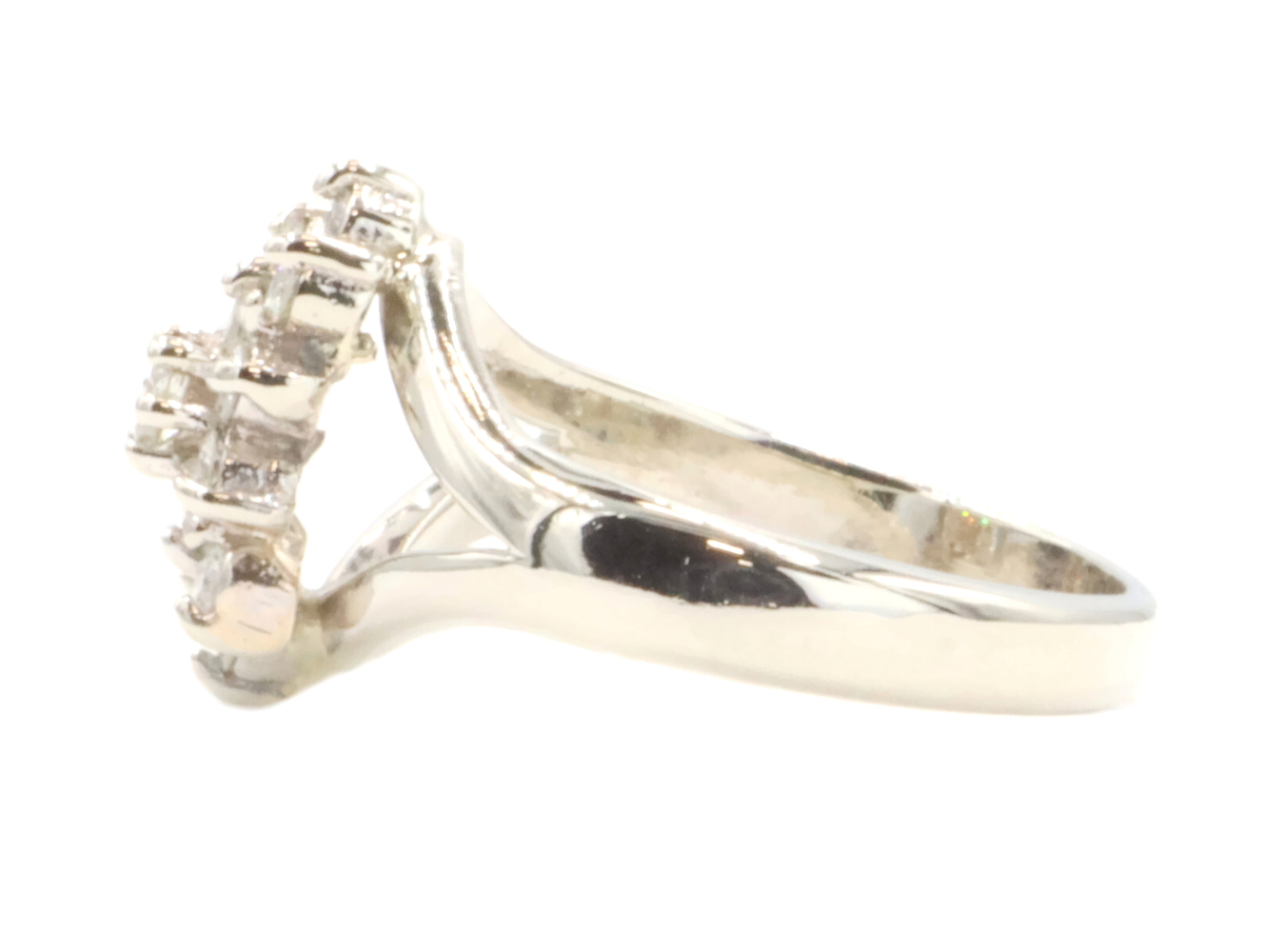 Women's 0.36 Ctw Round Cut Diamond Cluster 14KT White Gold Split Shank Ring 4.7g. This ring is a size 6 3/4.
