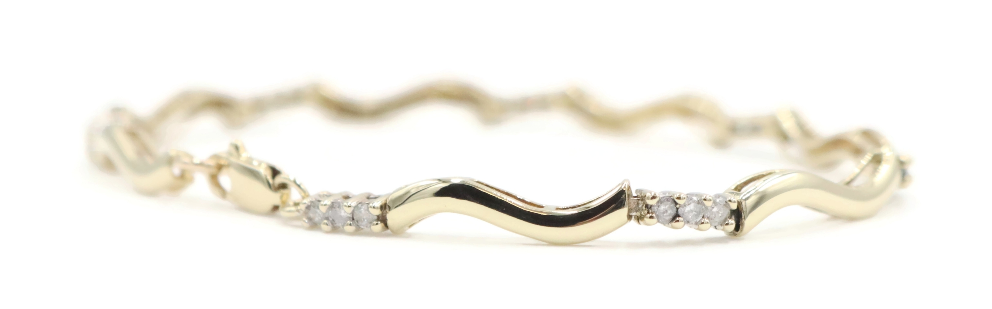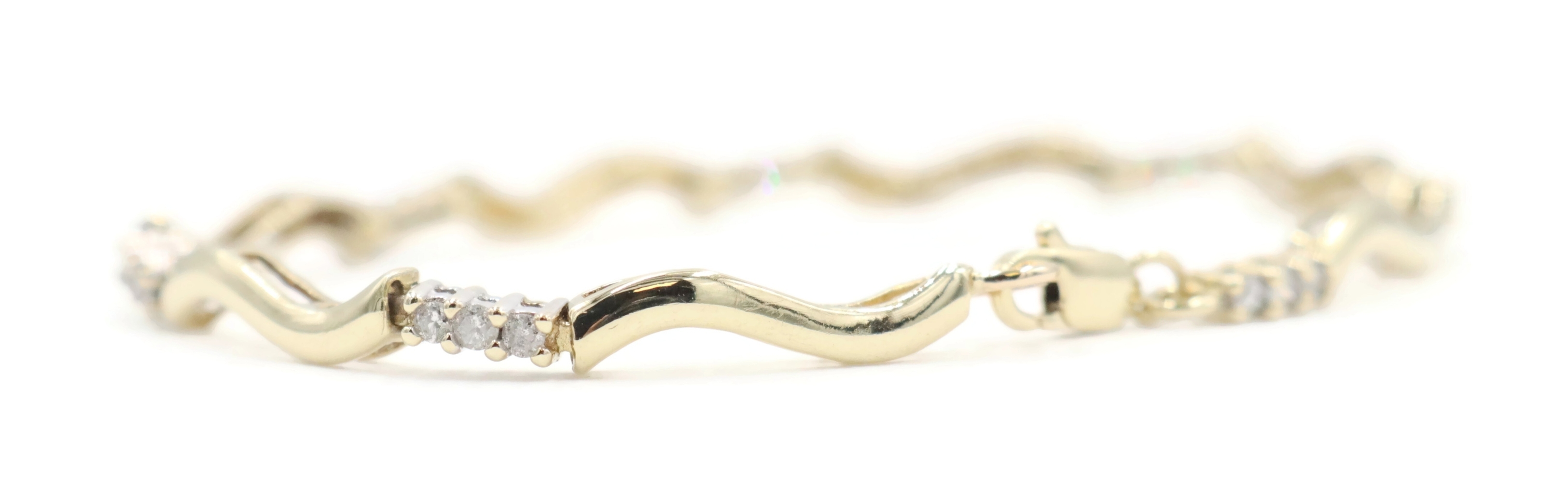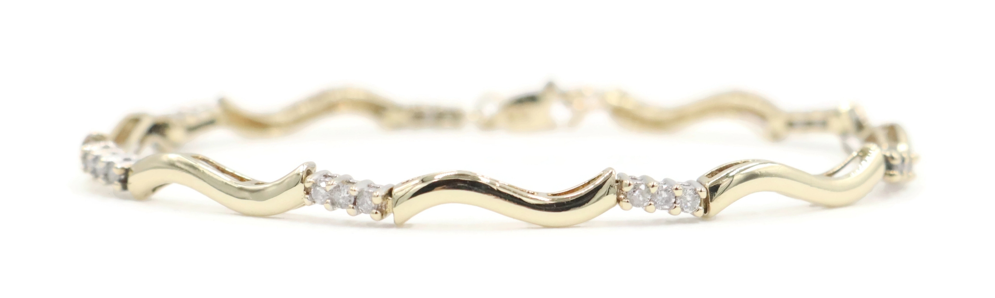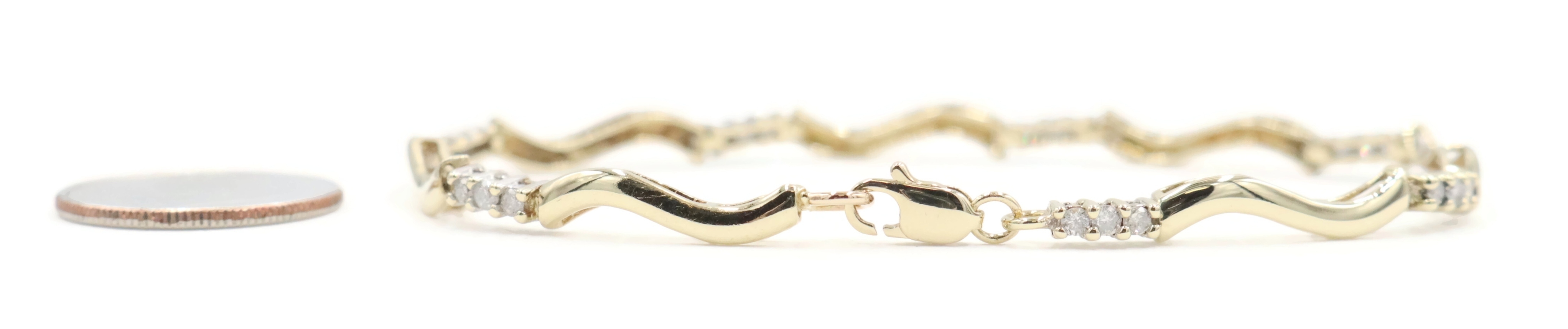 Women's 0.36 Ctw Round Diamond 10KT Gold Wavy Bar Link Bracelet 6 3/4" 4.93g. This bracelet is approximately 6 3/4 inches in length and 2.3mm in width.