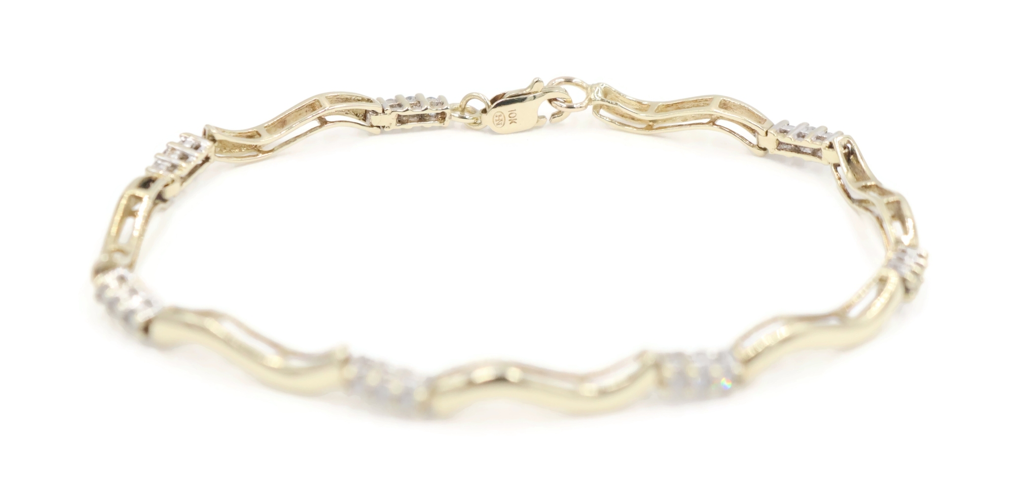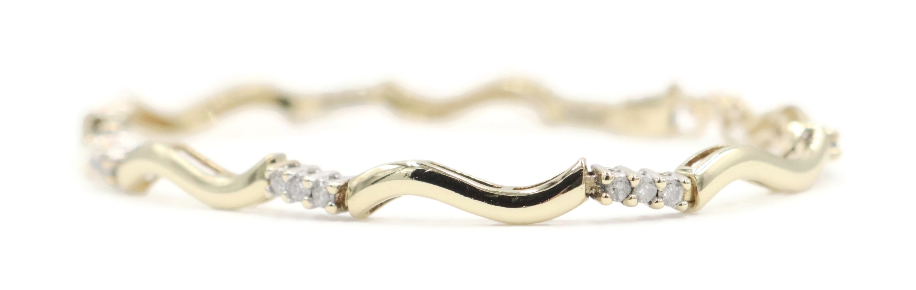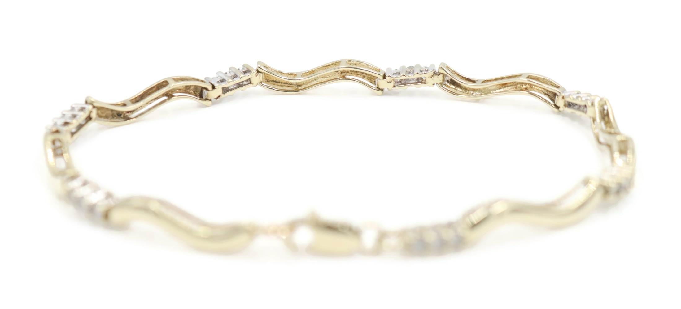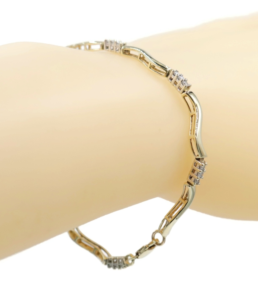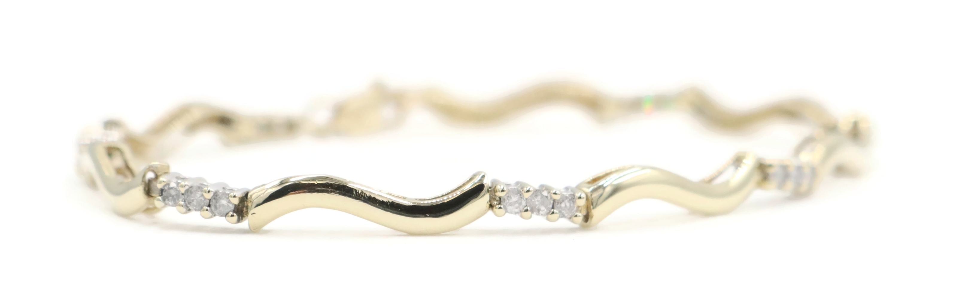 Women's 0.36 Ctw Round Diamond 10KT Gold Wavy Bar Link Bracelet 6 3/4" 4.93g. This bracelet is approximately 6 3/4 inches in length and 2.3mm in width.