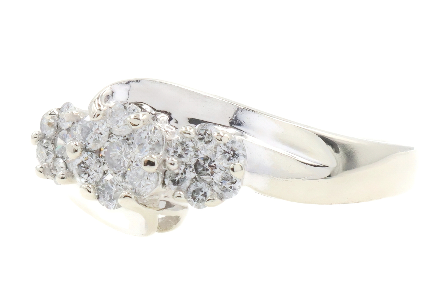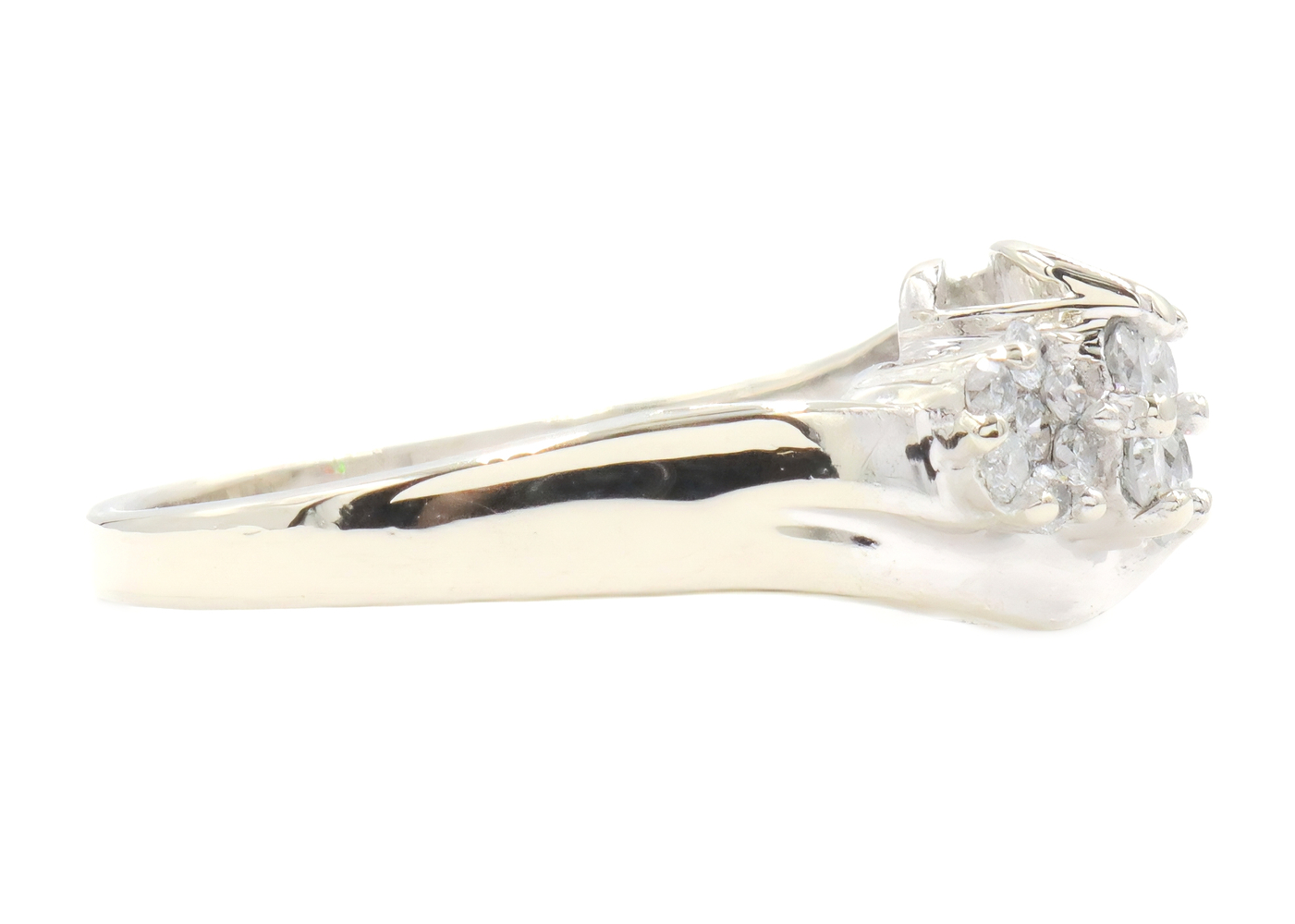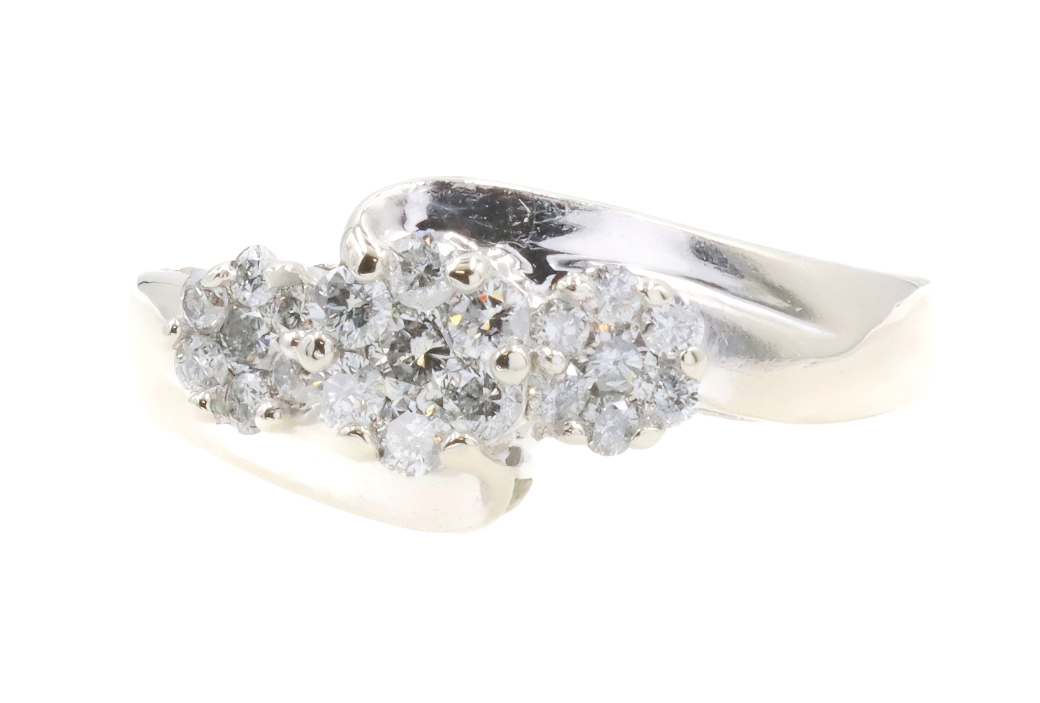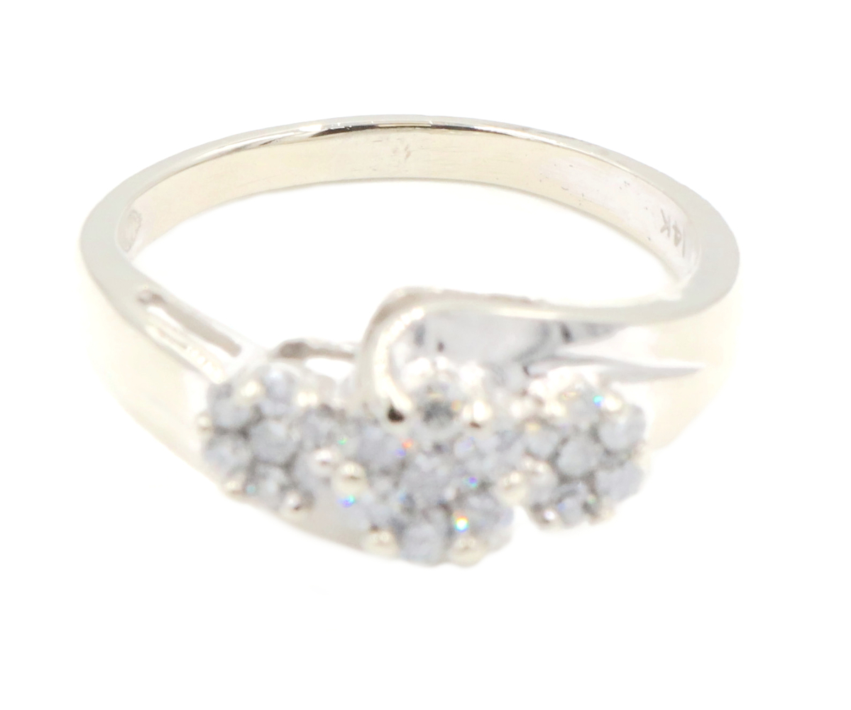Women's 0.42 Ctw Round Diamond Triple Flower Cluster 14KT White Gold Ring IJDN. This ring is a size 8.
