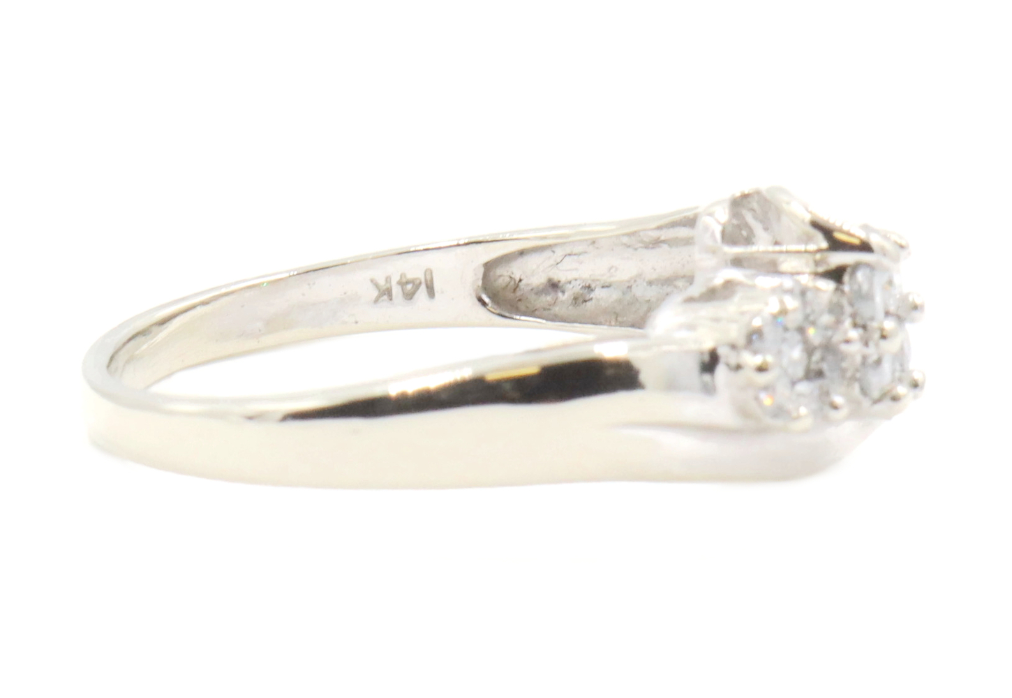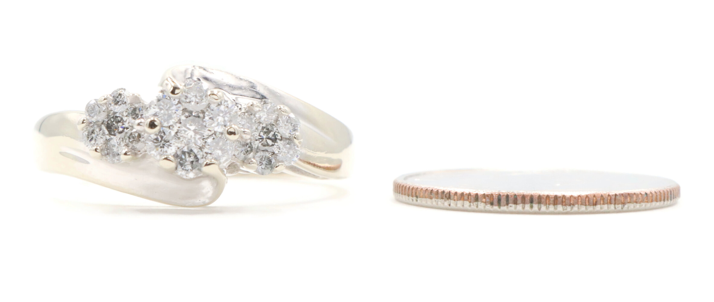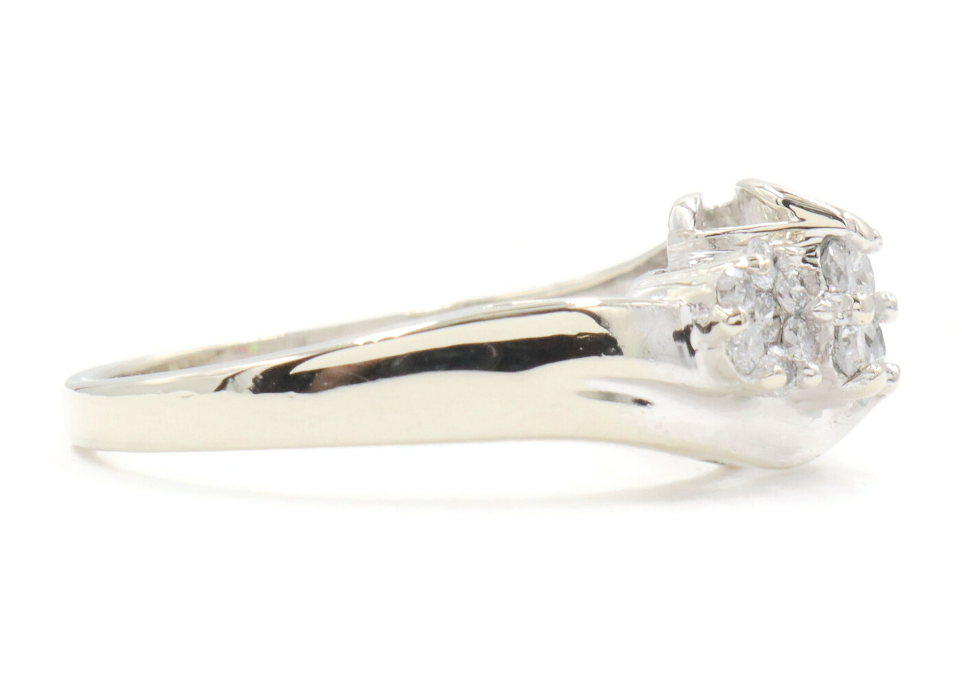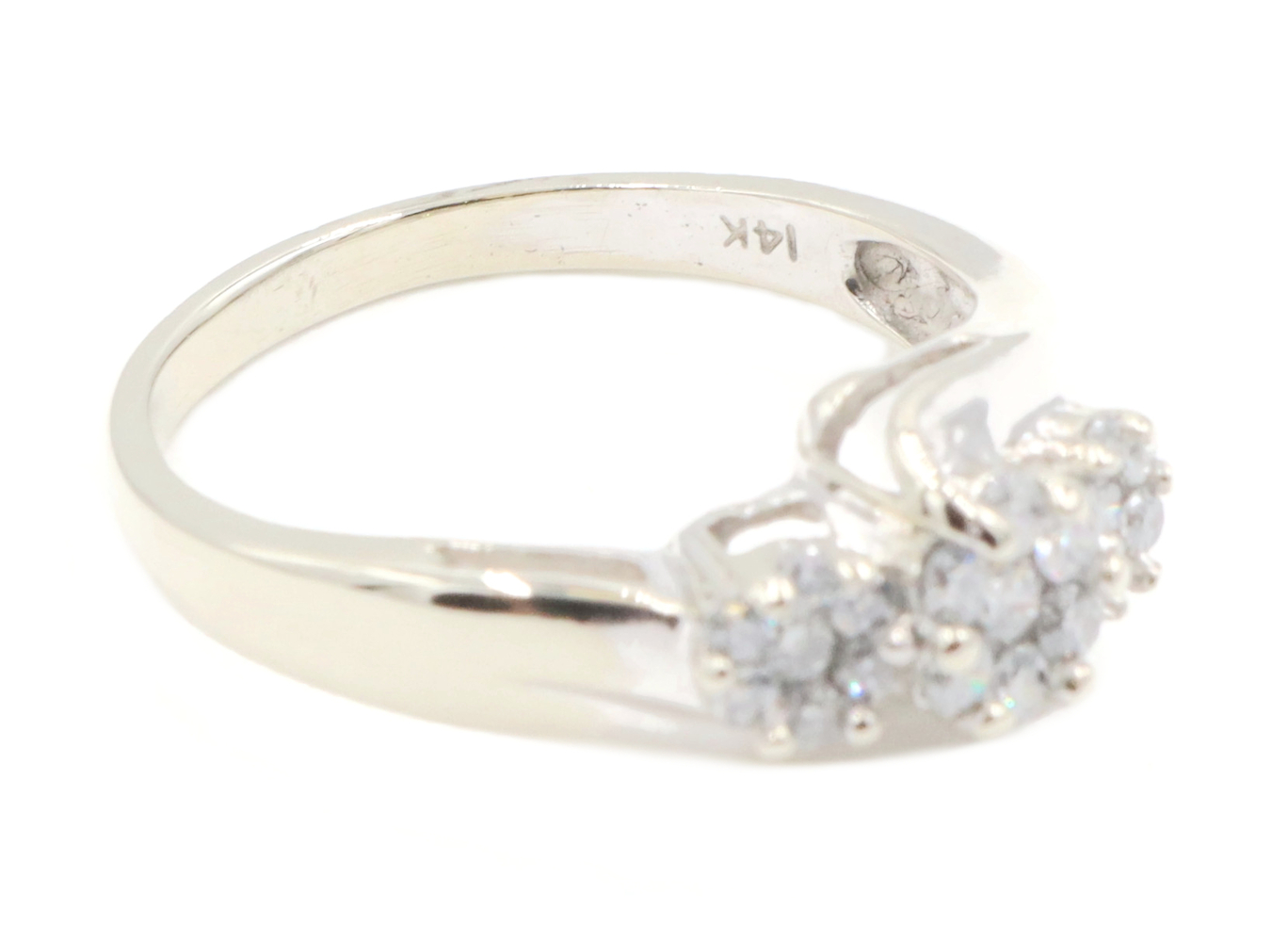 Women's 0.42 Ctw Round Diamond Triple Flower Cluster 14KT White Gold Ring IJDN. This ring is a size 8.
