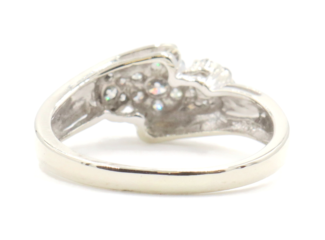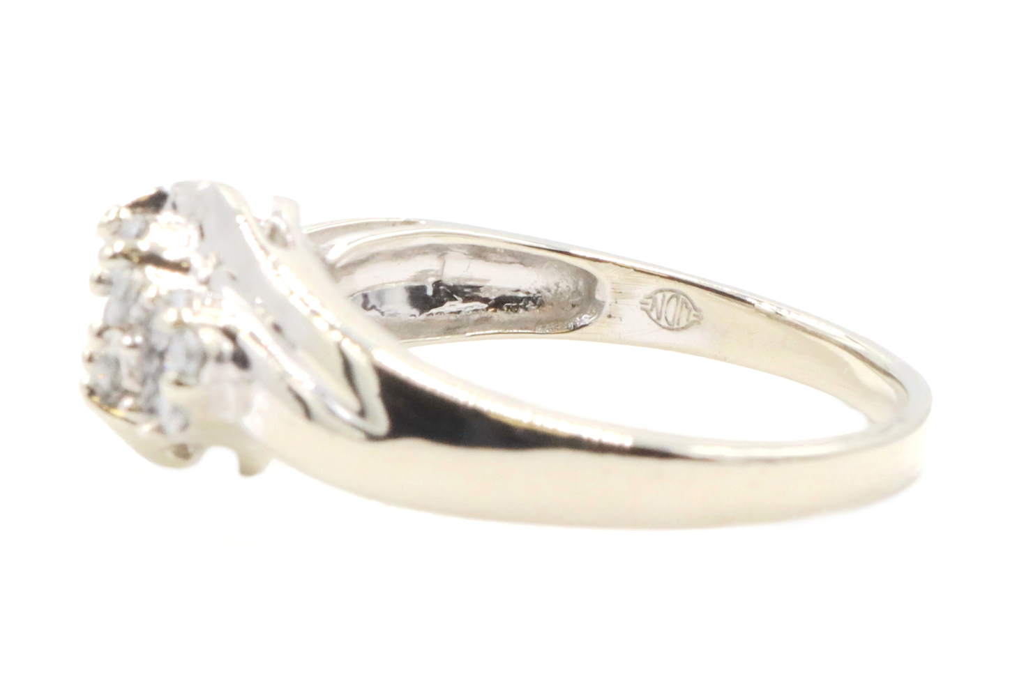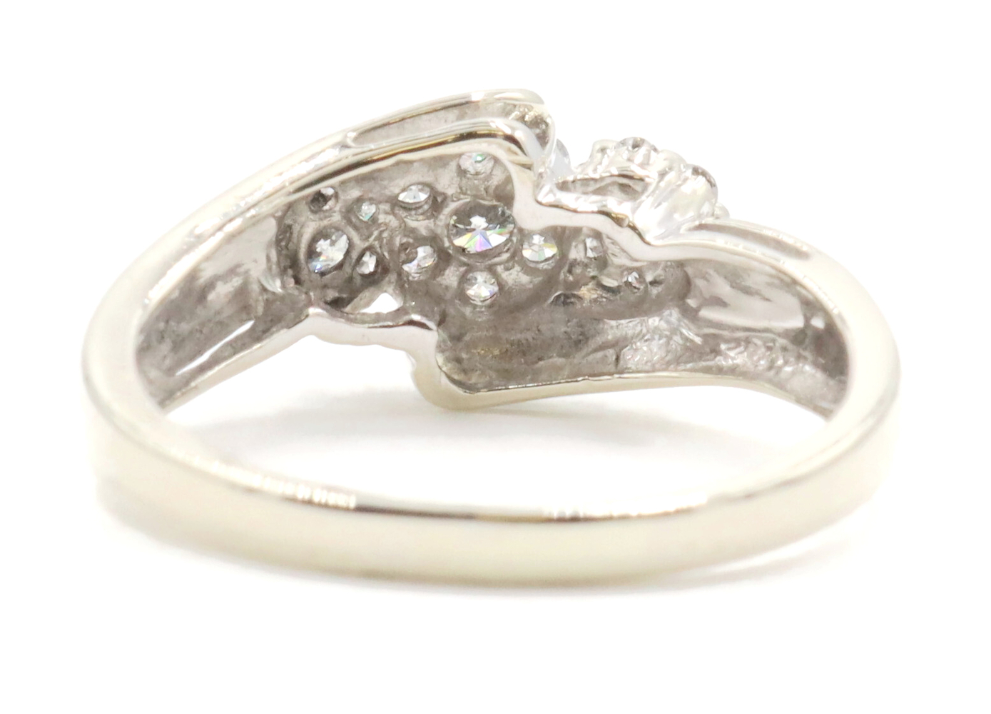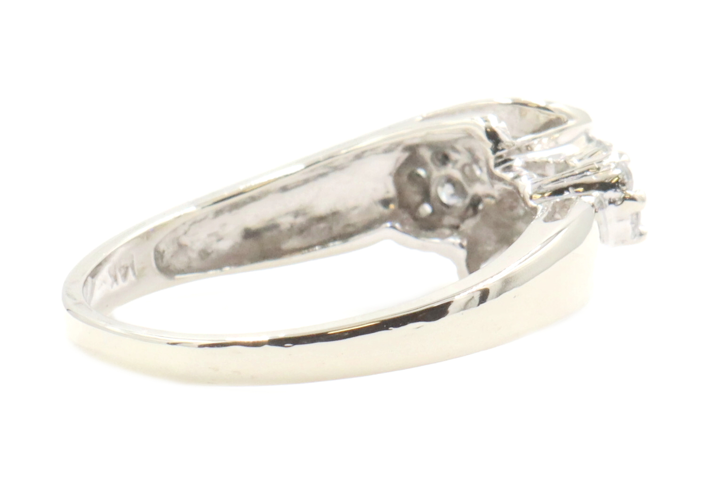 Women's 0.42 Ctw Round Diamond Triple Flower Cluster 14KT White Gold Ring IJDN. This ring is a size 8.