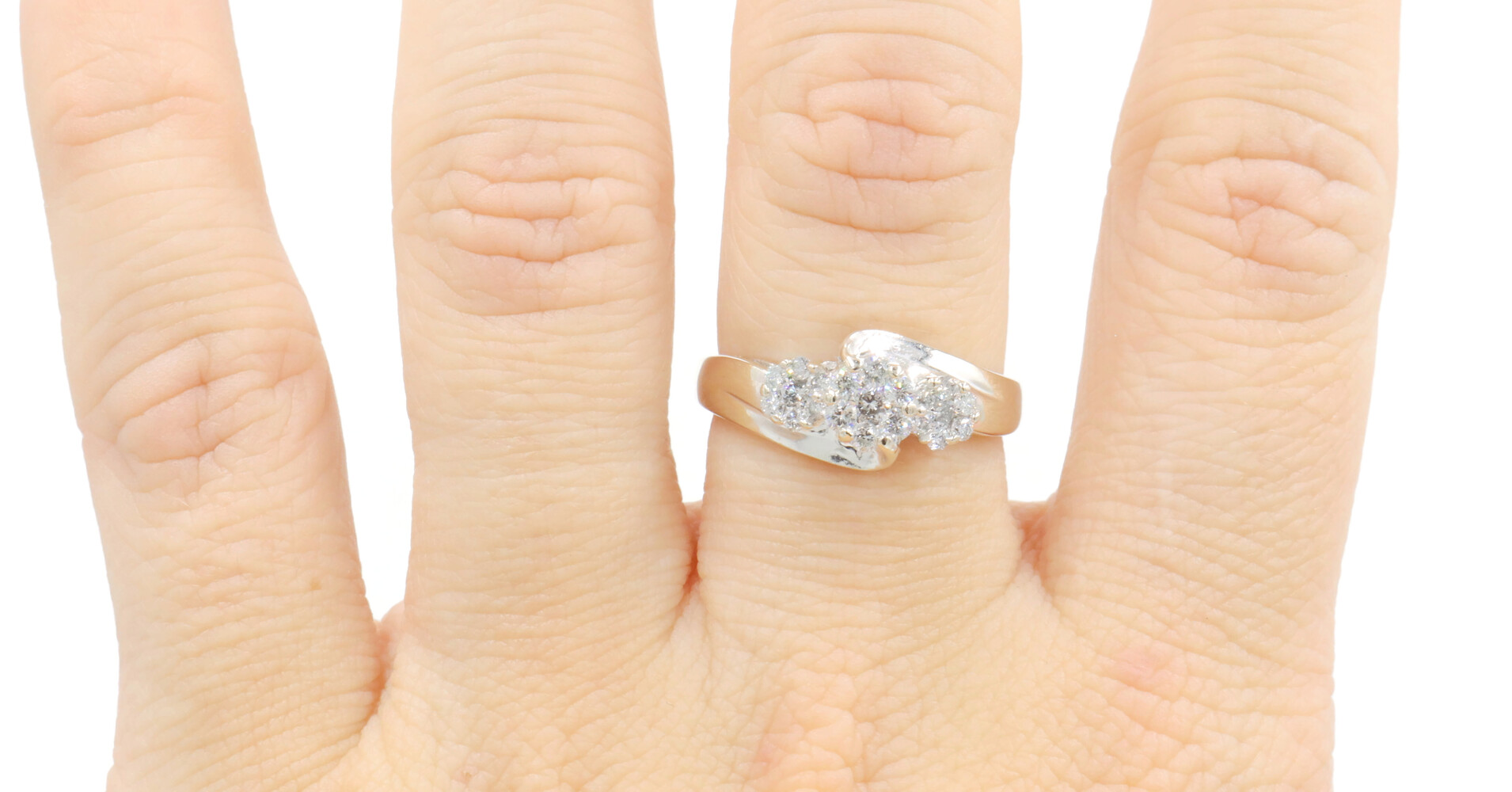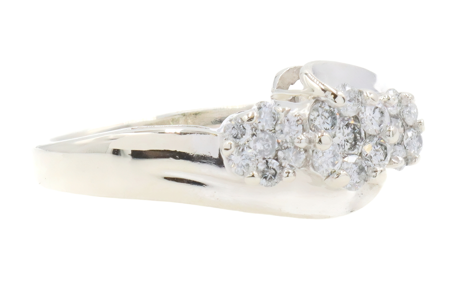 Women's 0.42 Ctw Round Diamond Triple Flower Cluster 14KT White Gold Ring IJDN | USA Pawn