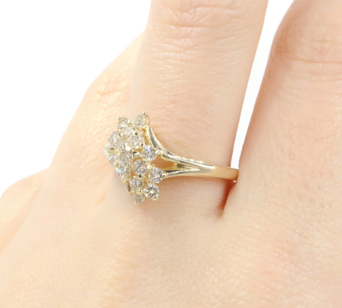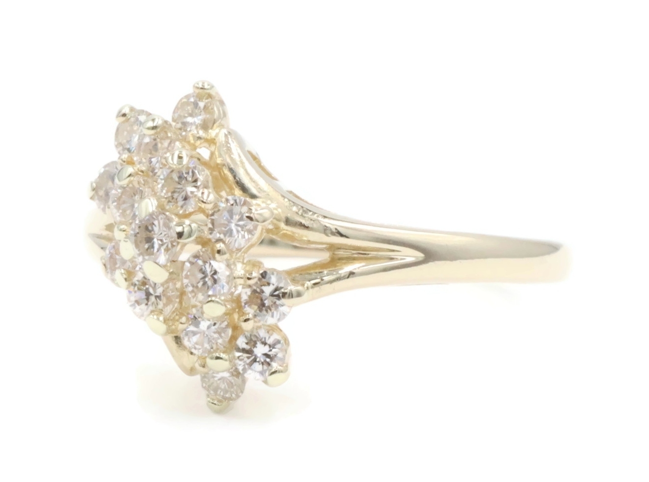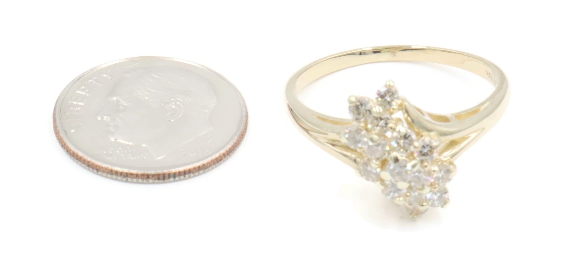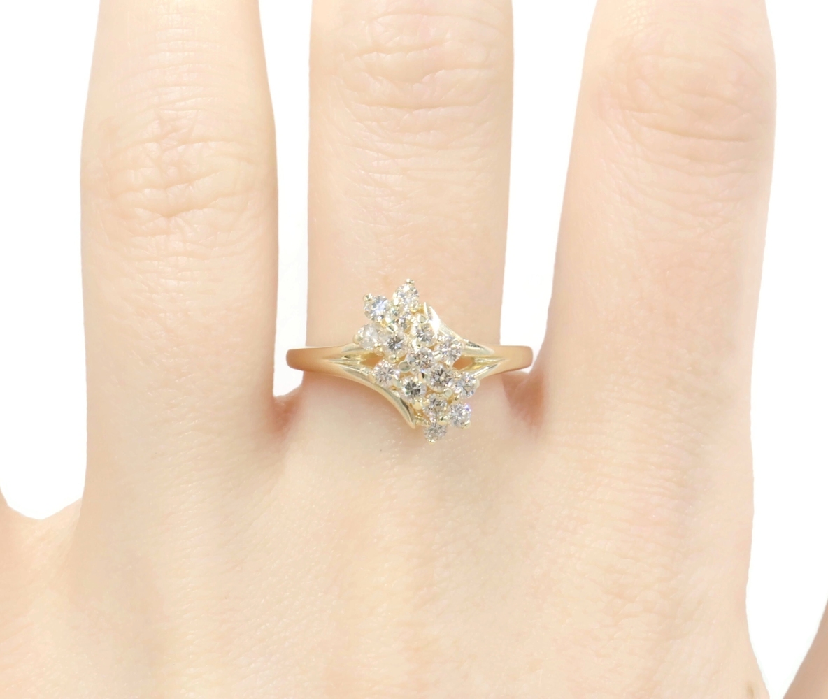 Women's 0.46 Ctw Round Diamond 14KT Yellow Gold Waterfall Cluster Ring JTC 3.13g. This ring is a size 8 1/4.
